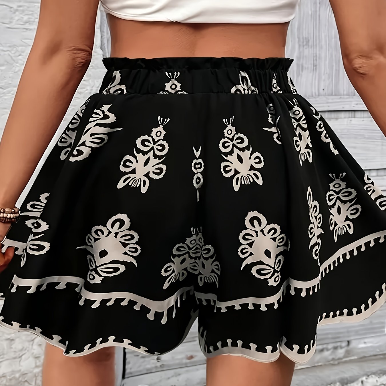 Женские шорты больших размеров с цветочным принтом черный и белый, неэластичные, летние повседневные