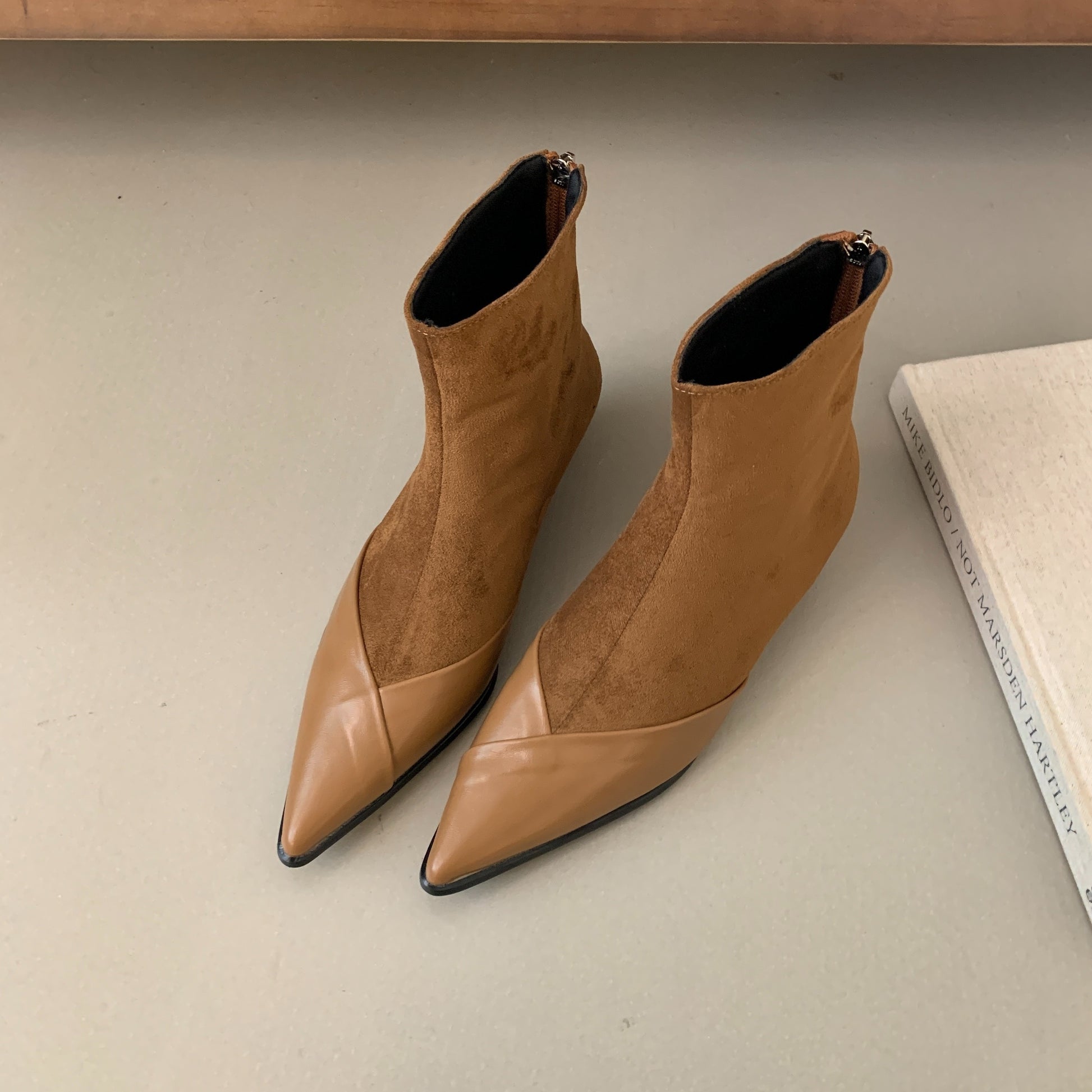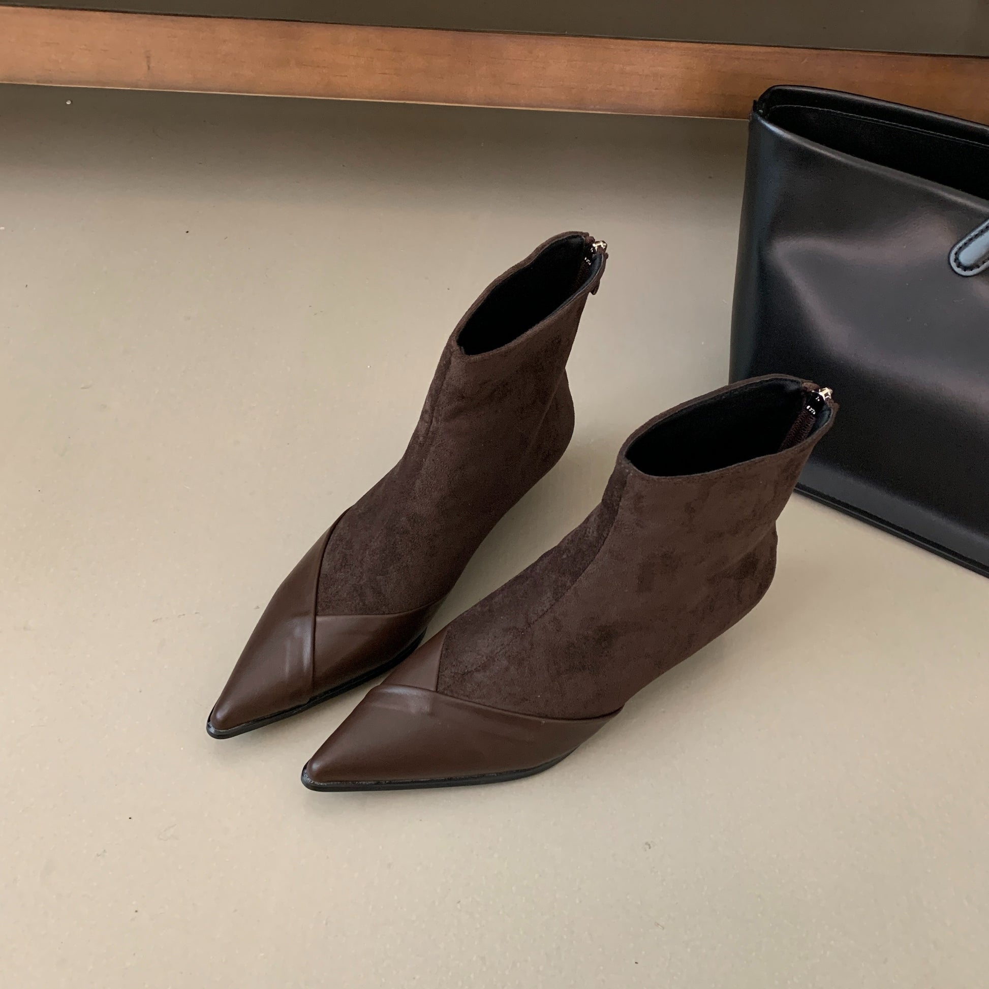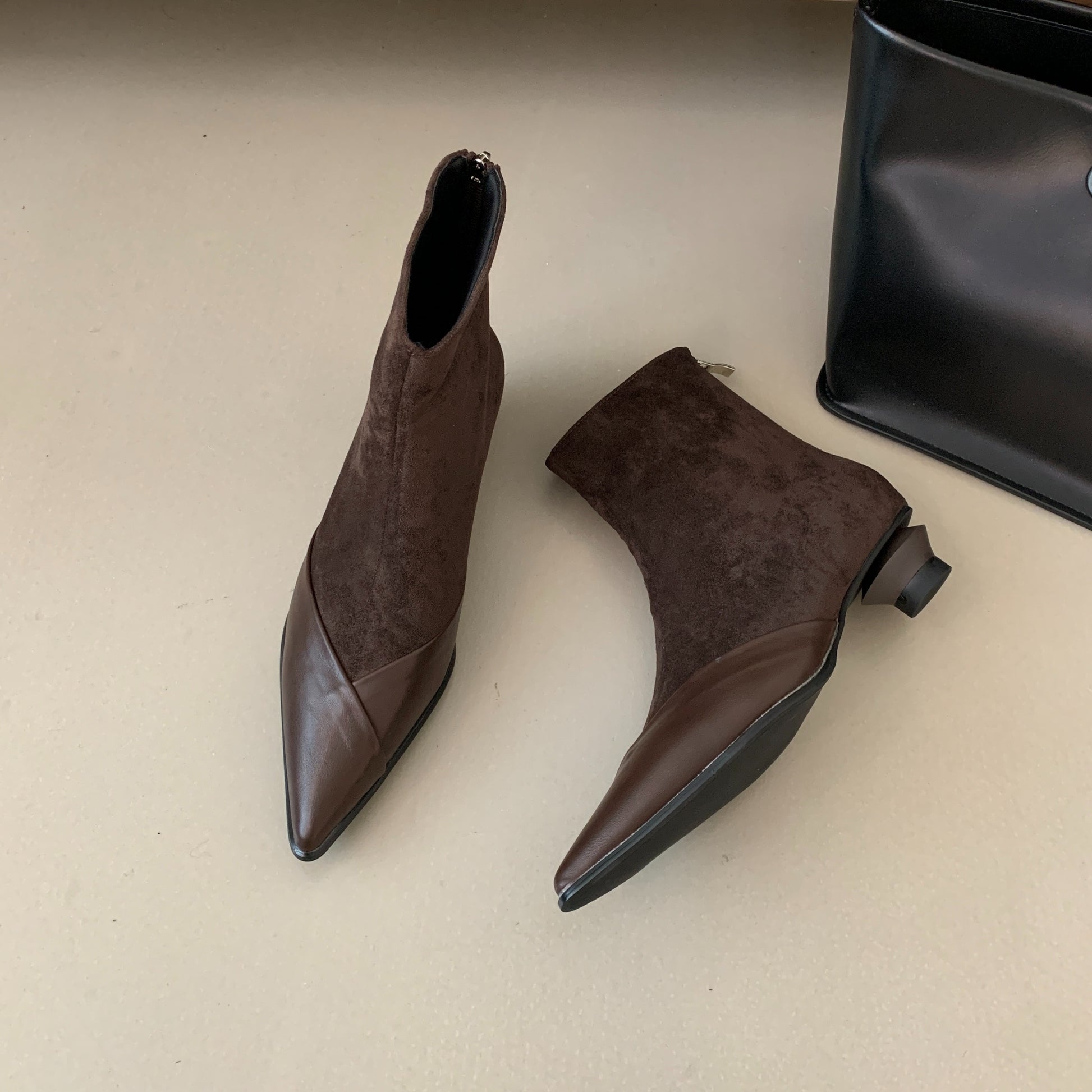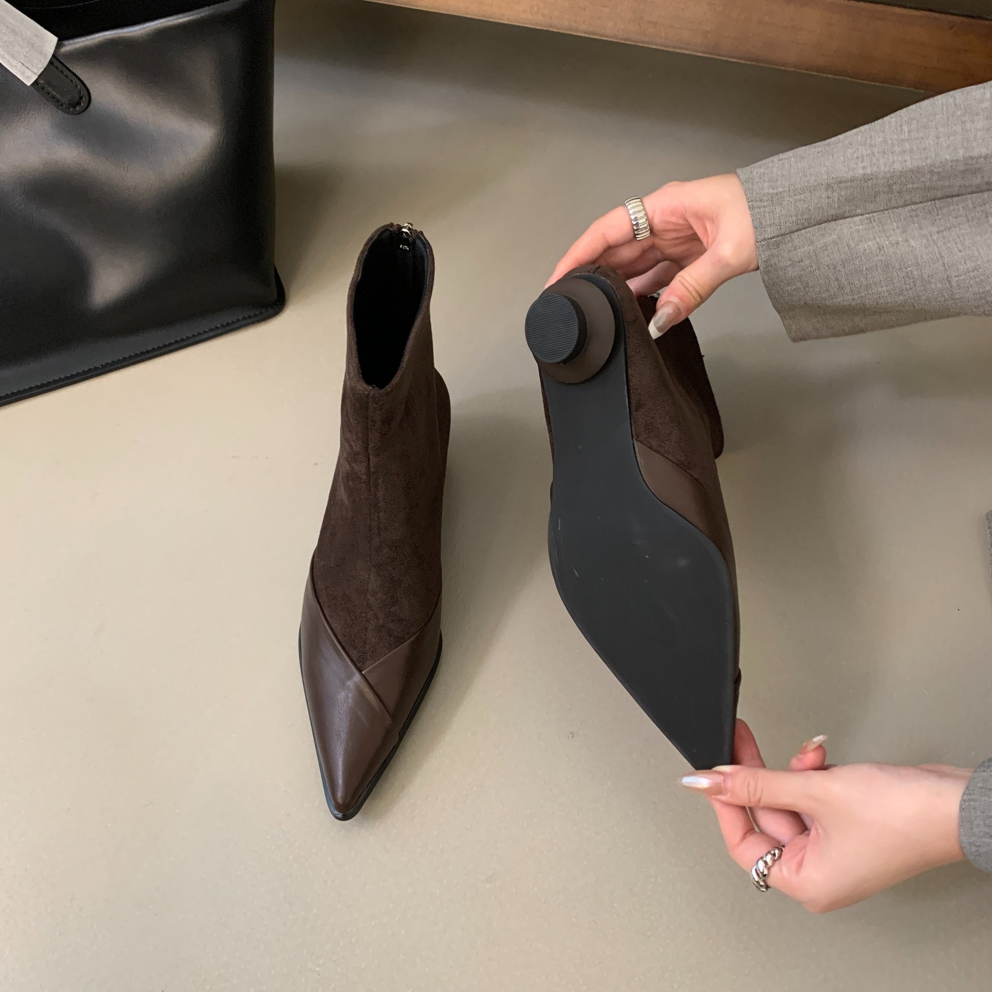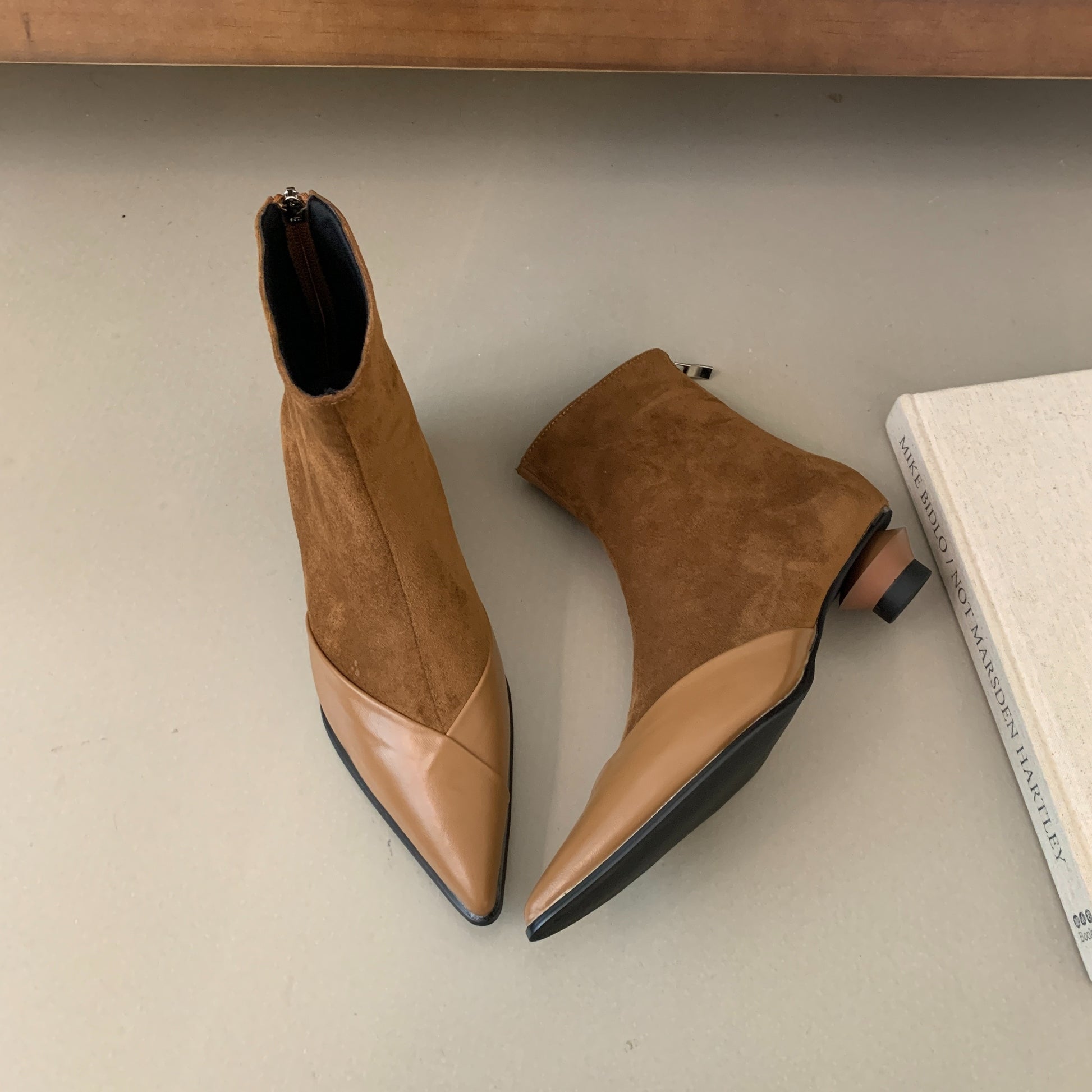 Women's Ankle Booties Flannel Patchwork Pointed Toe Low Heel Winter