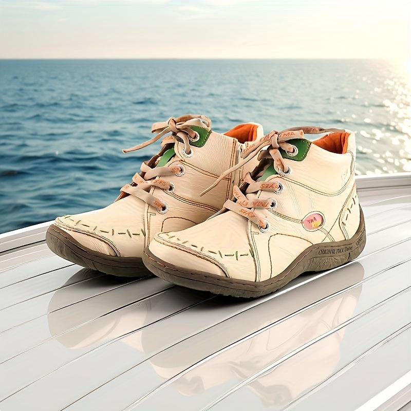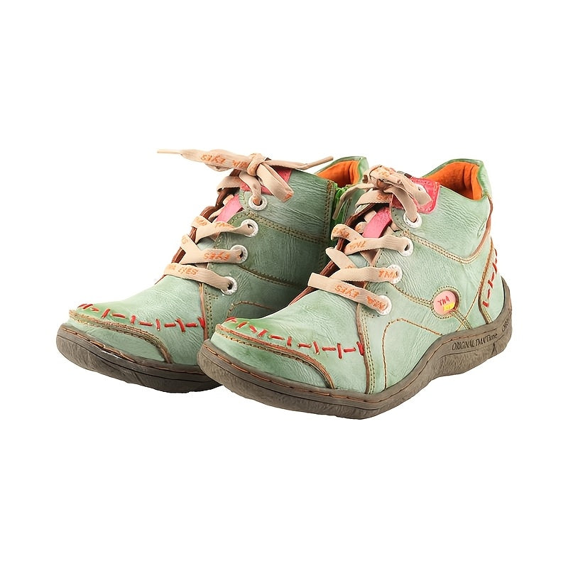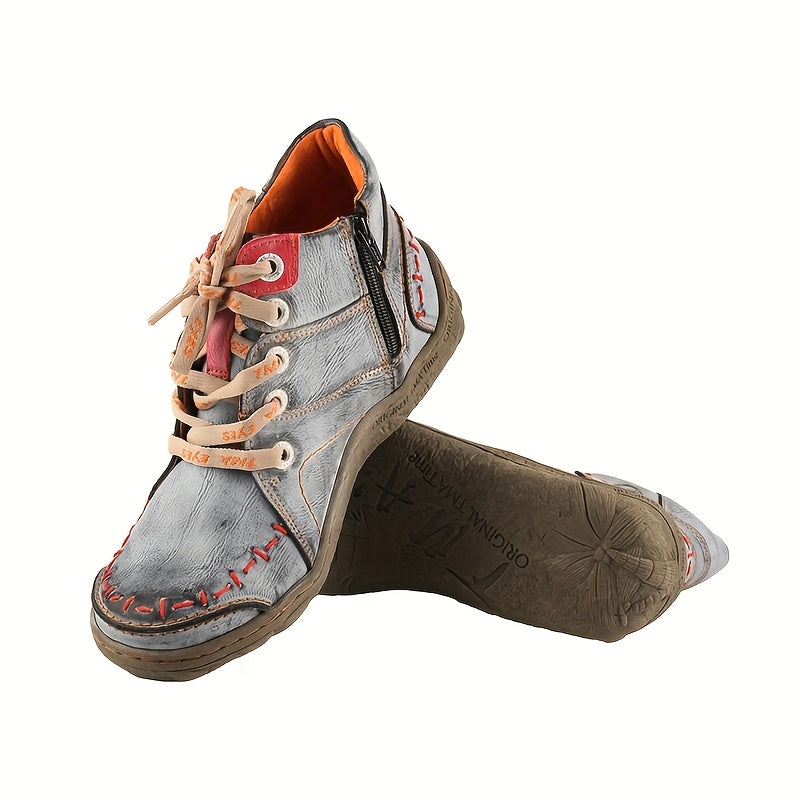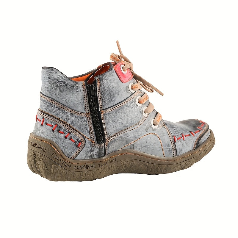 Women's Ankle Boots Leather Casual Flat Heel Zipper Comfort