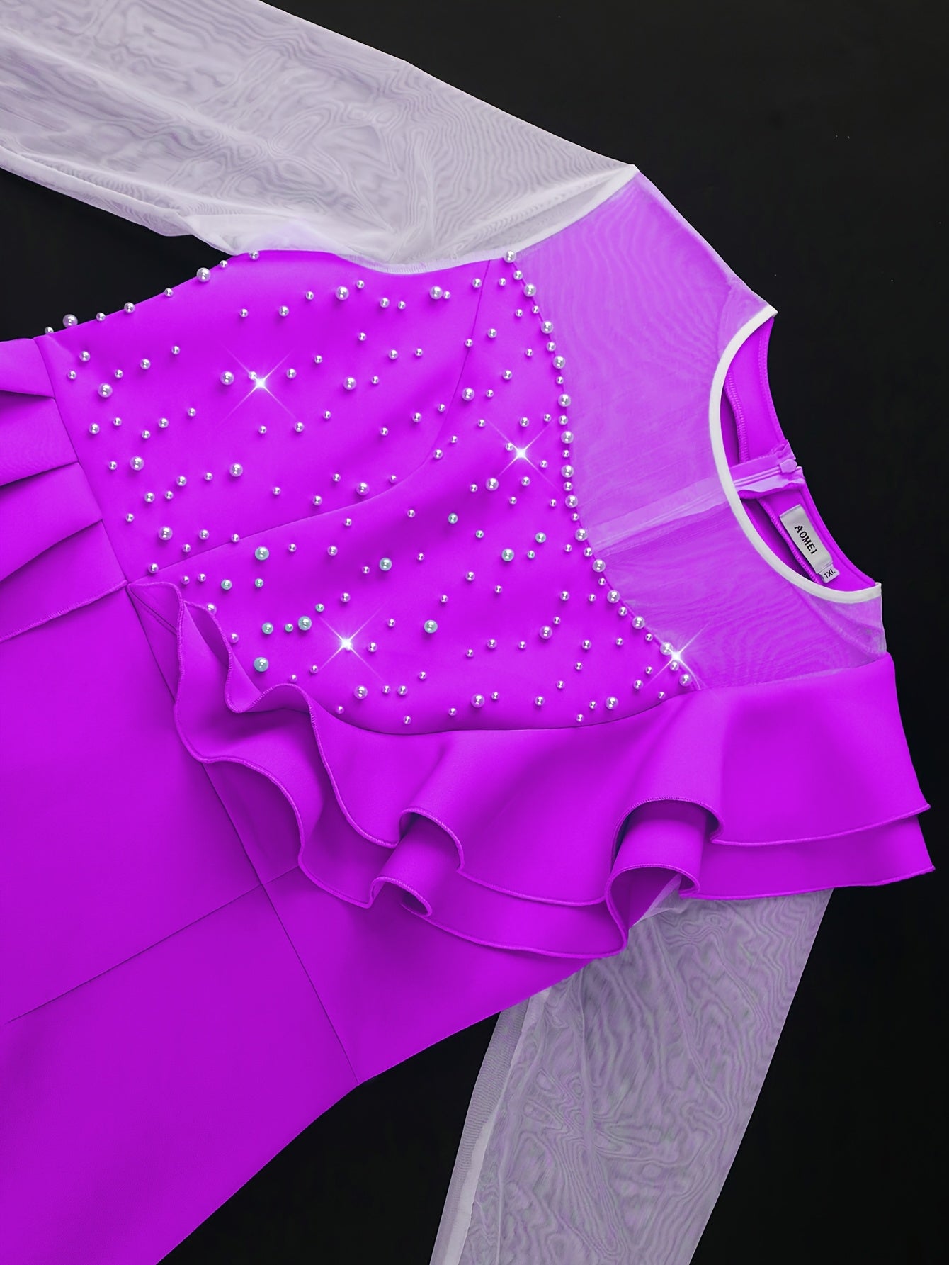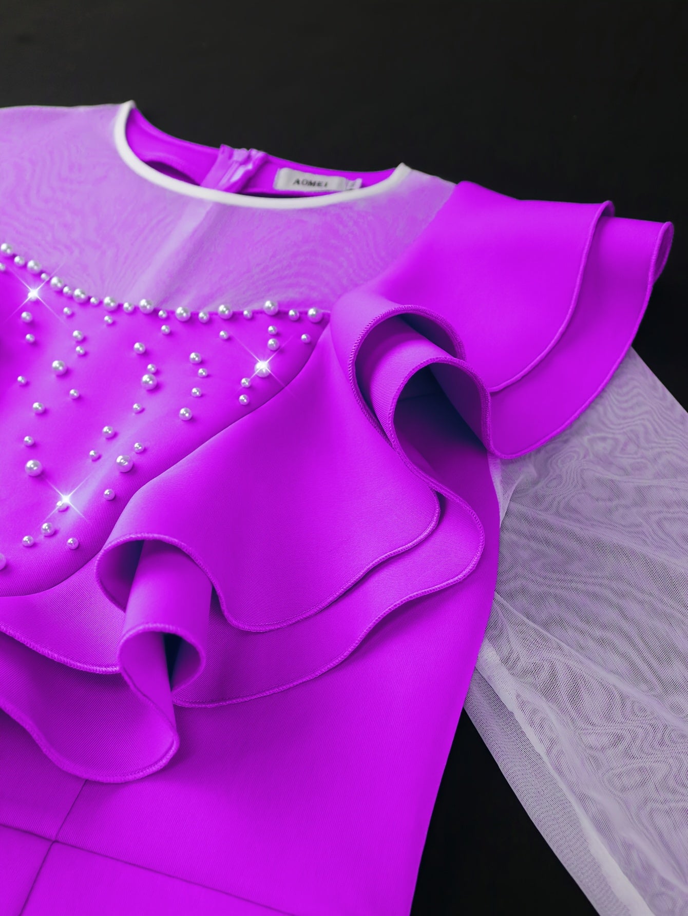 Women's Beaded Ruffle Shoulder Gauze Bodycon Evening Dress Long Sleeve
