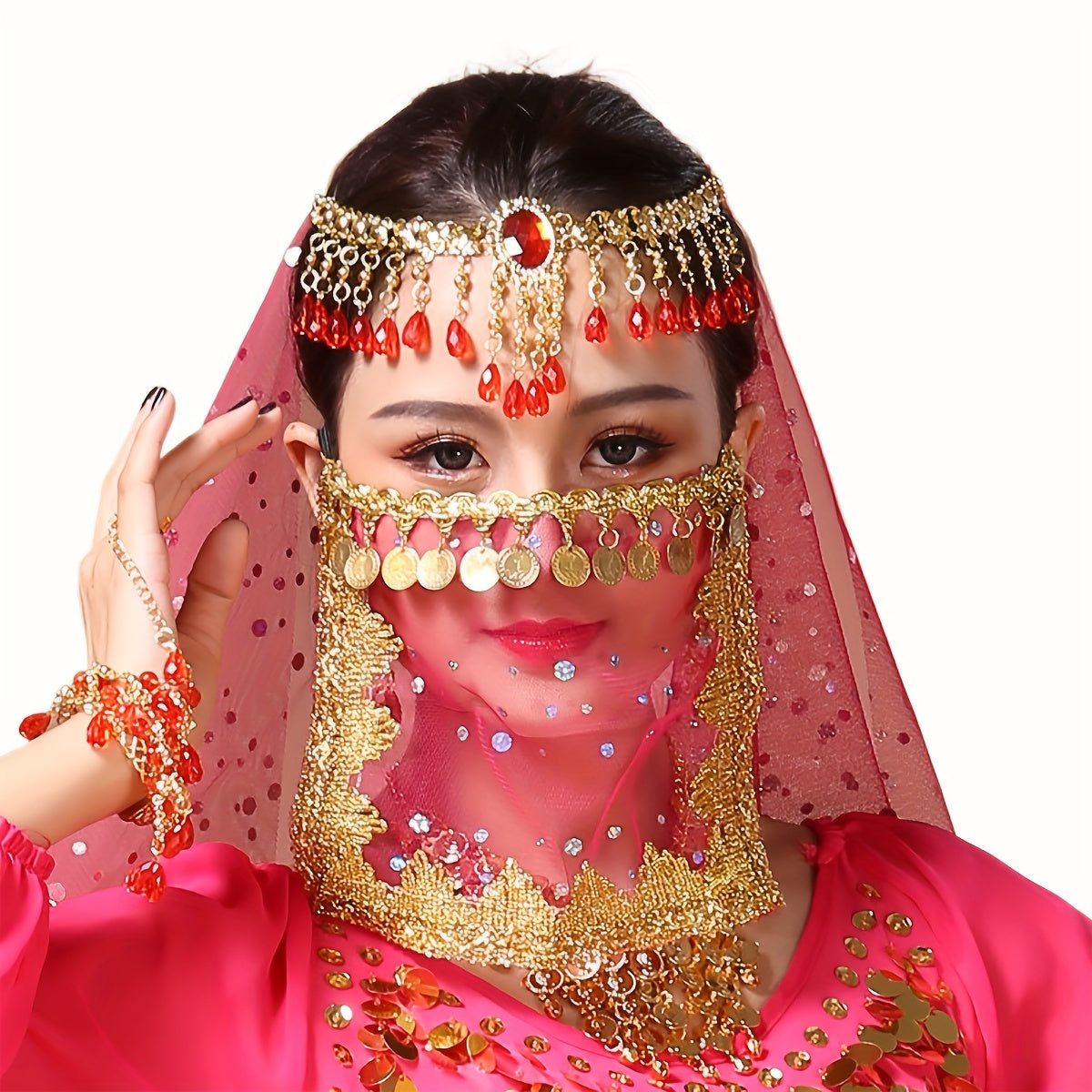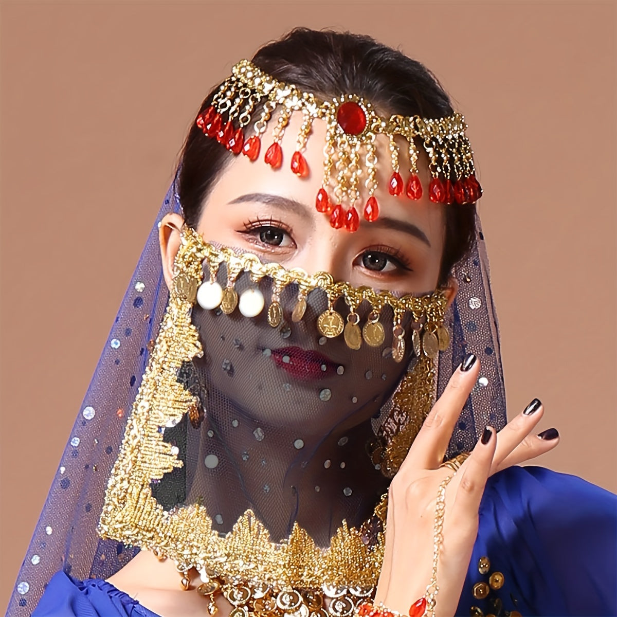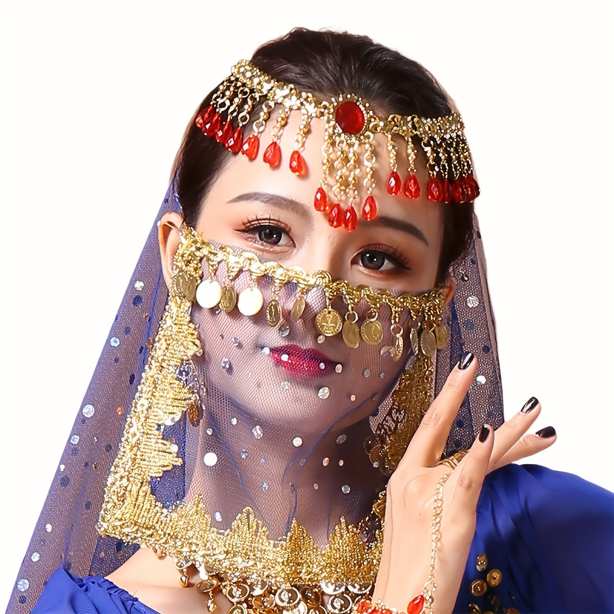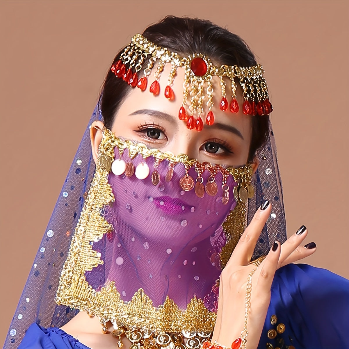 "Вуаль для лица с монетами для женского танца живота для экзотического западного косплея и танцевальных выступлений"