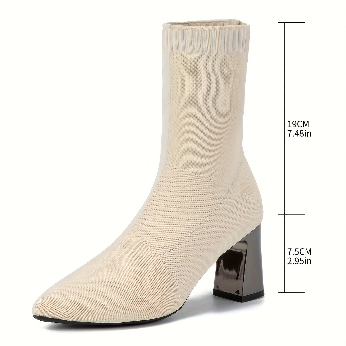 Women's Black Pointed Toe Ankle Boots with Chunky Heel Slip-On All-Season