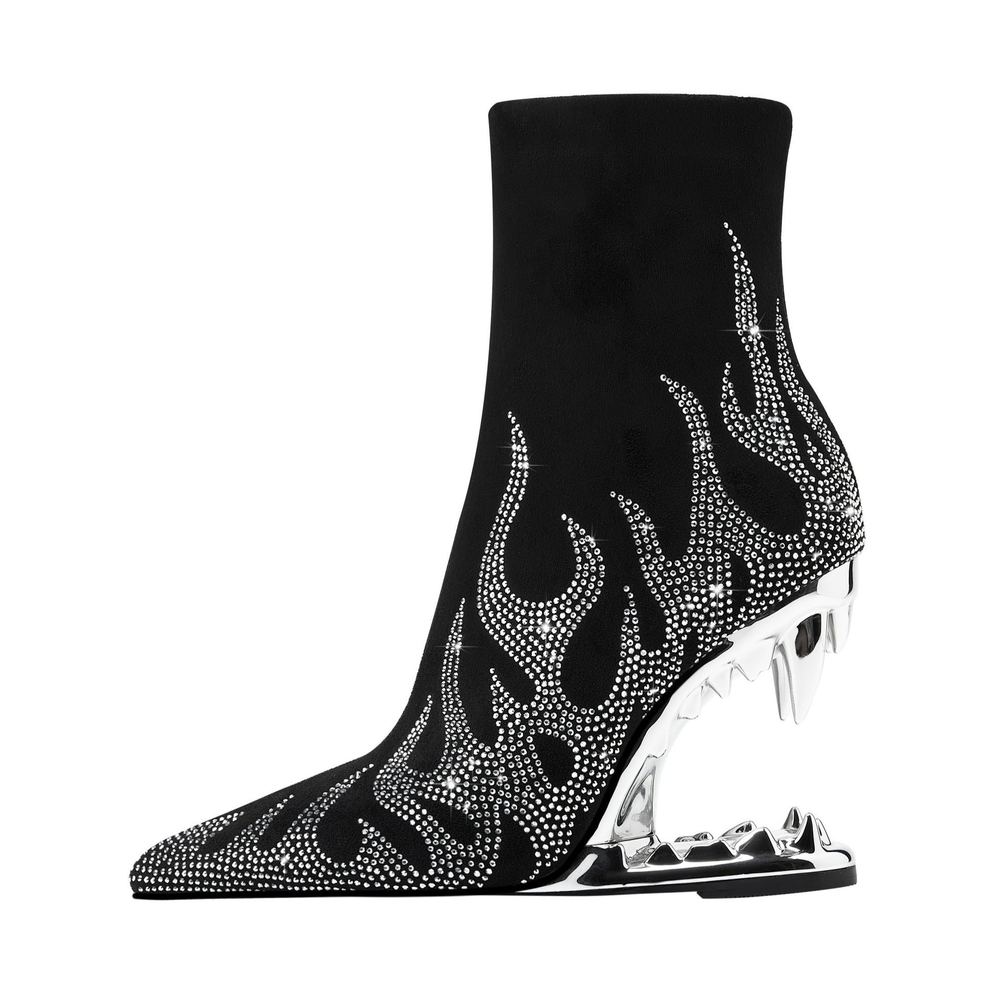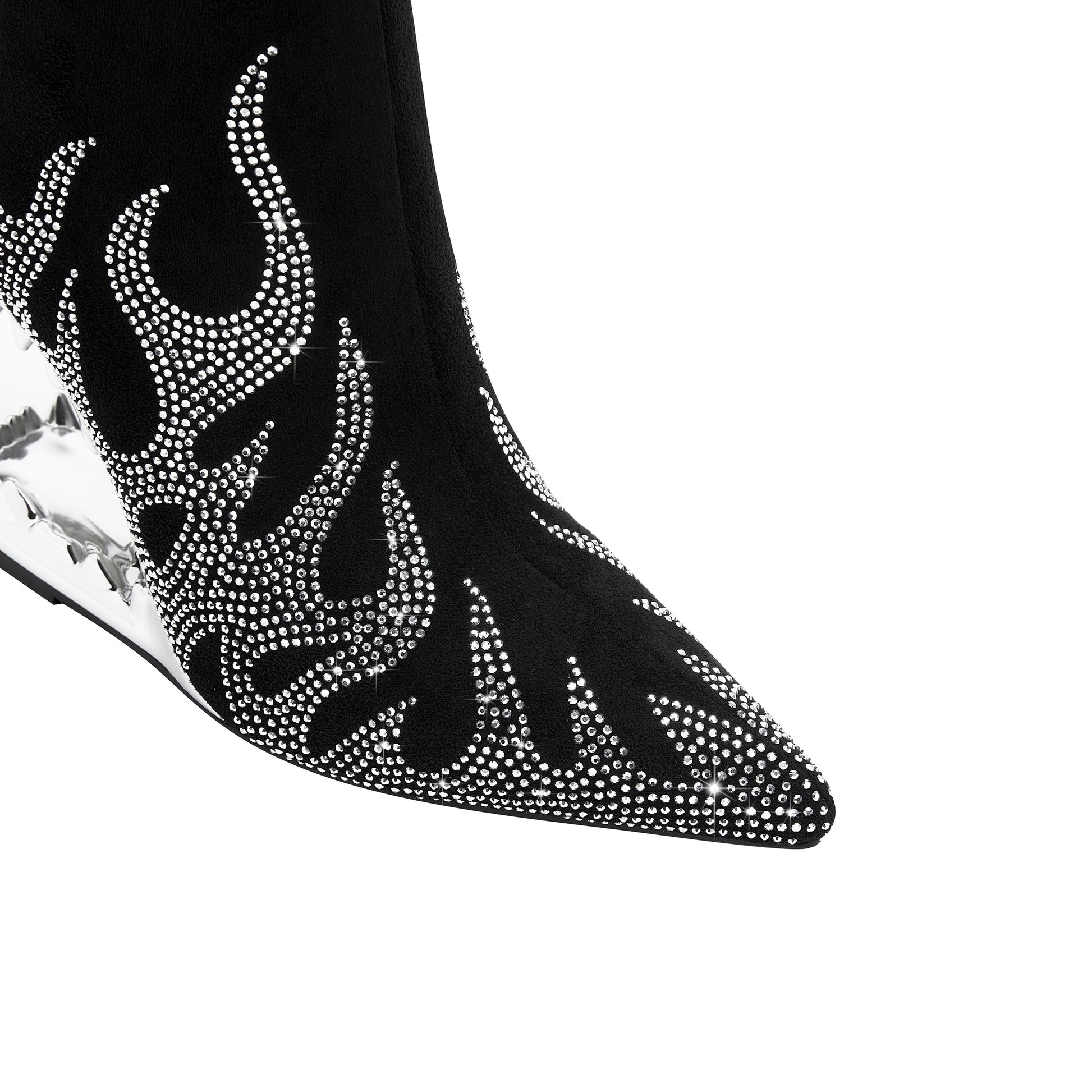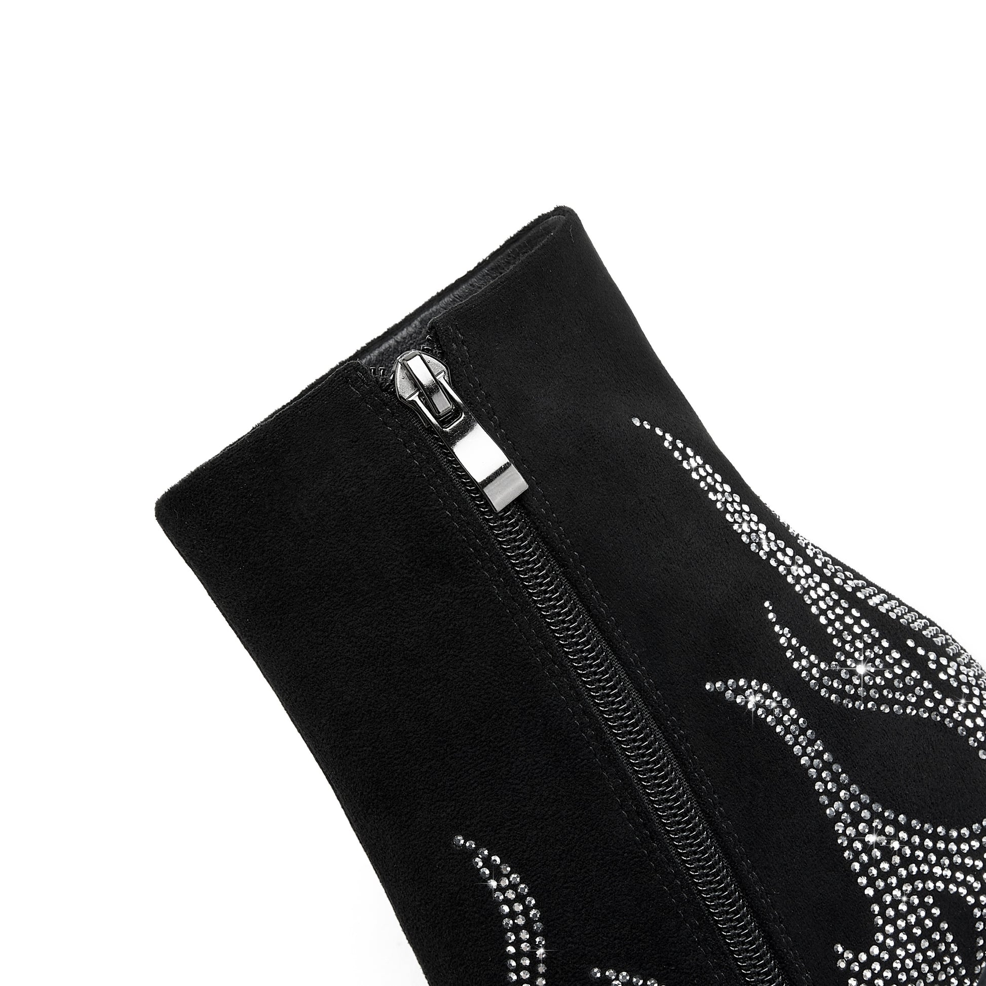 Women's Black Pointed Toe Ankle Boots with Rhinestones and Zipper