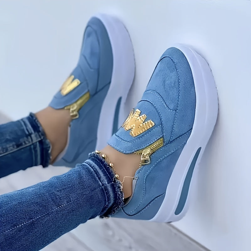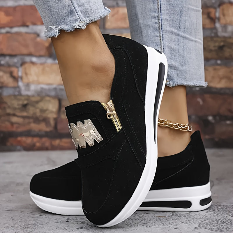 Женские дышащие низкие кроссовки с платформой, молнией, черные и белые