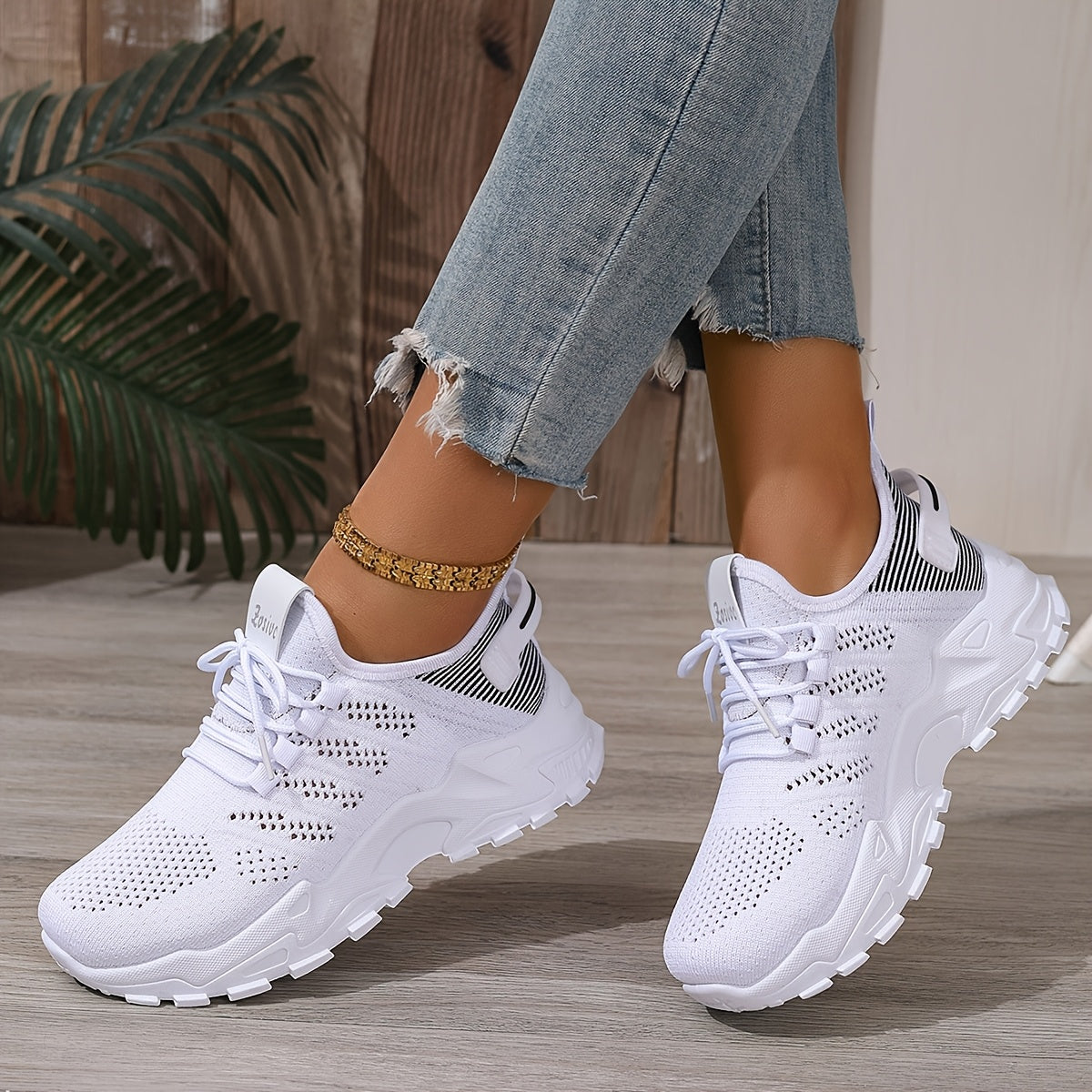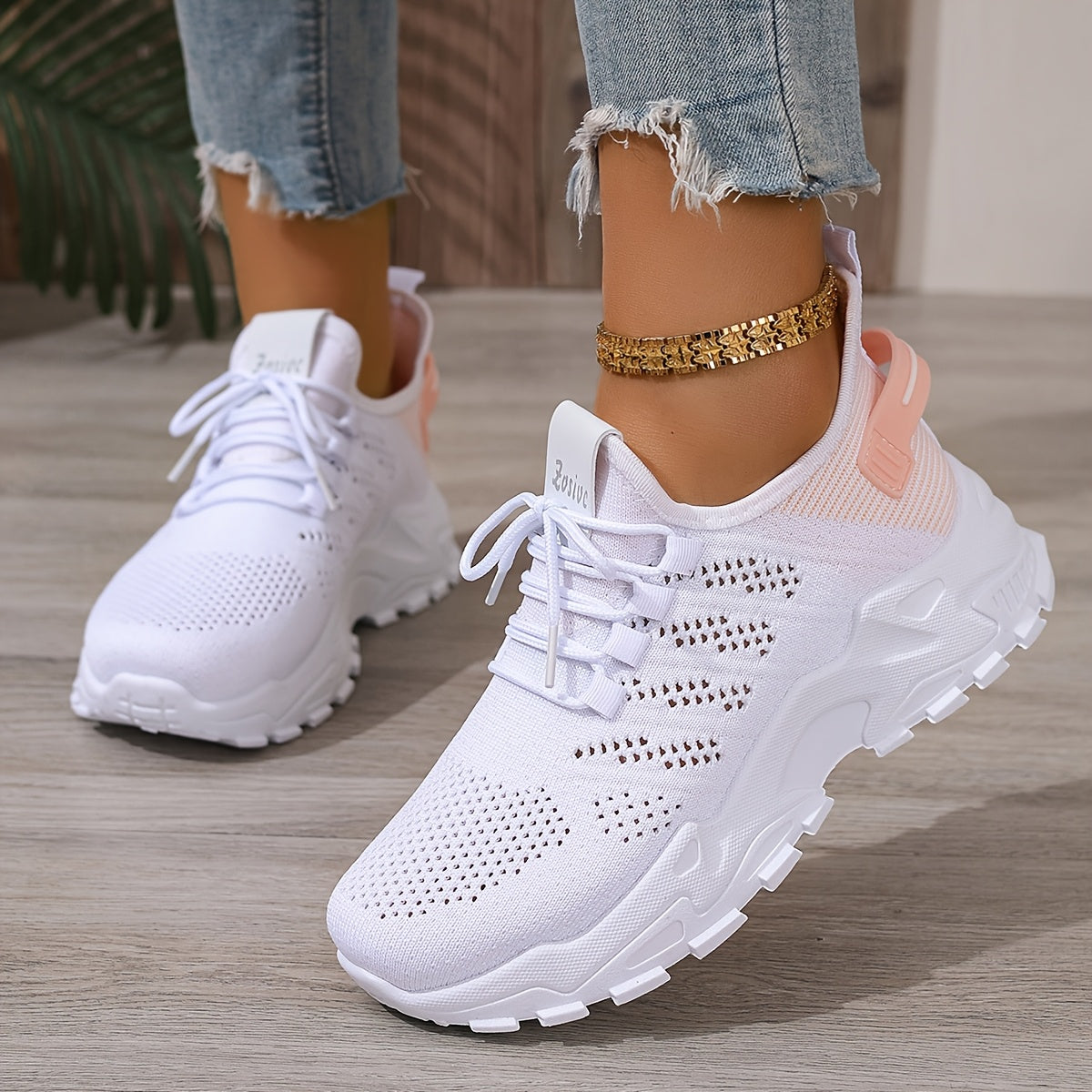 Женские дышащие сетчатые кроссовки повседневные легкие беговые обувь белые низкие