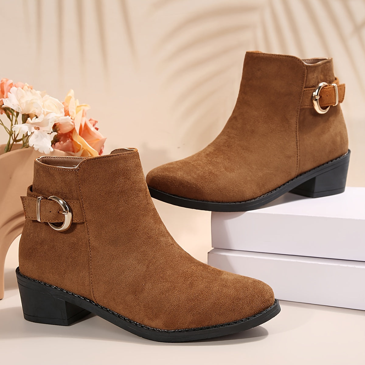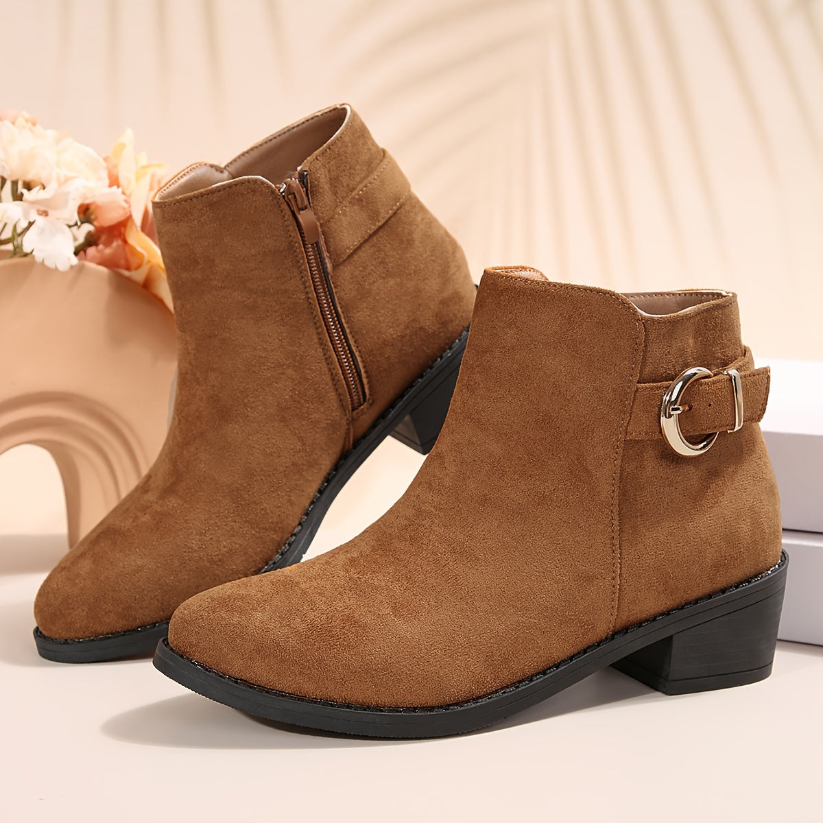 Женские коричневые ботинки из вельвета на щиколотке с массивным каблуком и боковой молнией