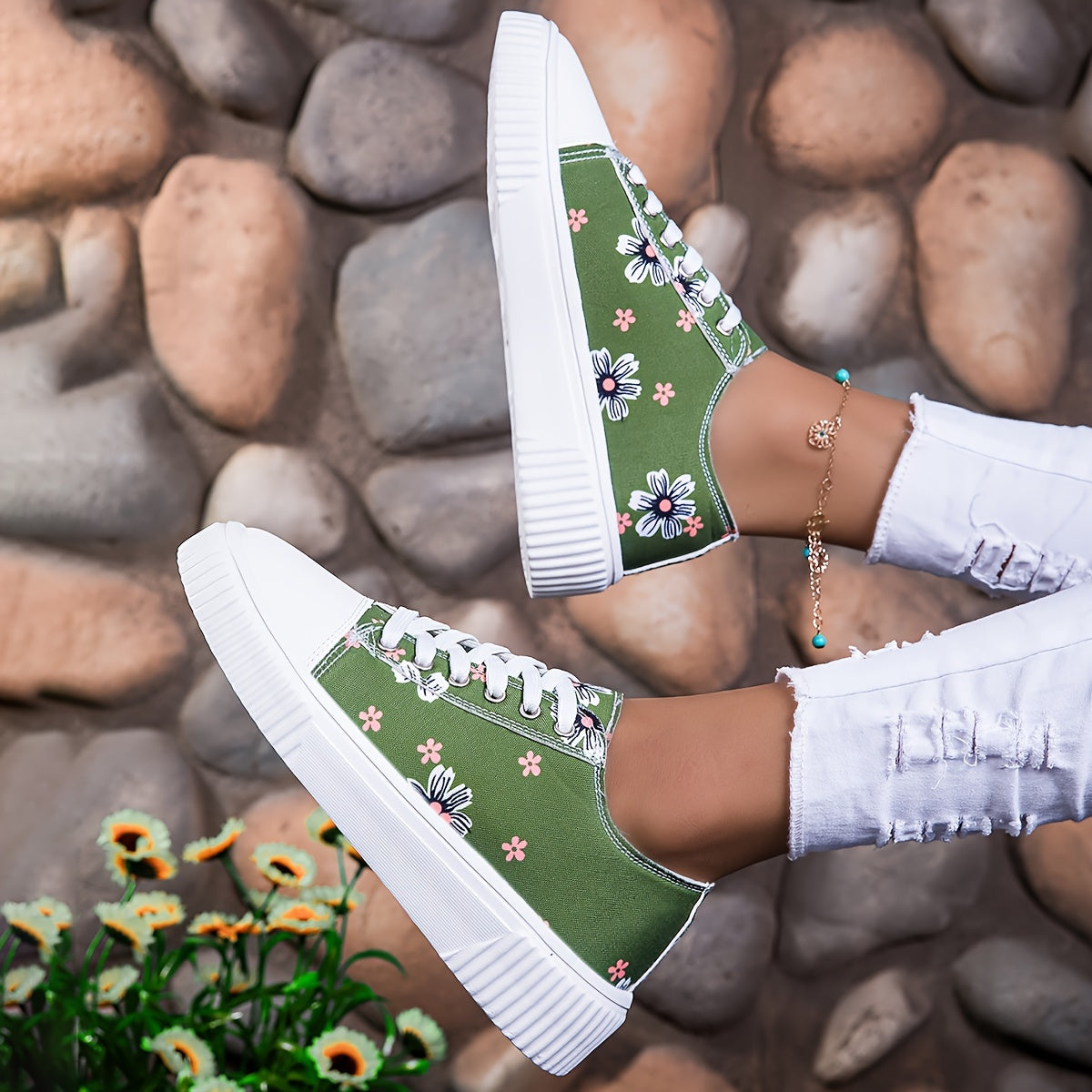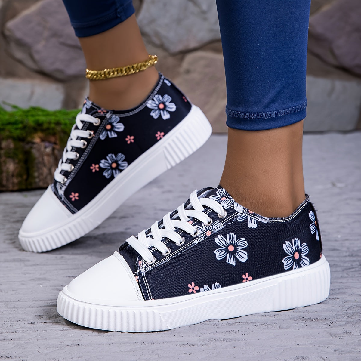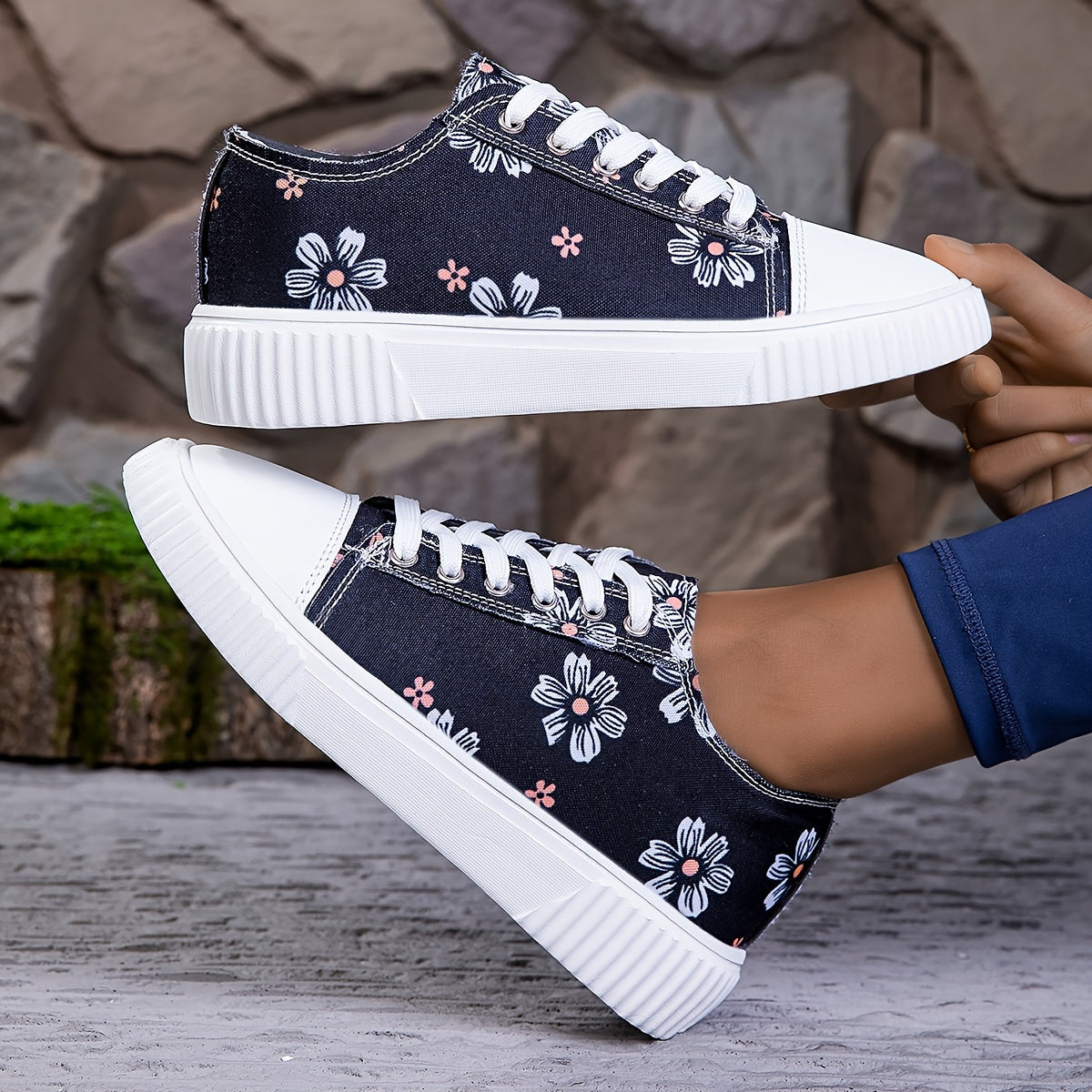 Женские кроссовки из холста на шнуровке, повседневные балетки с цветочным принтом