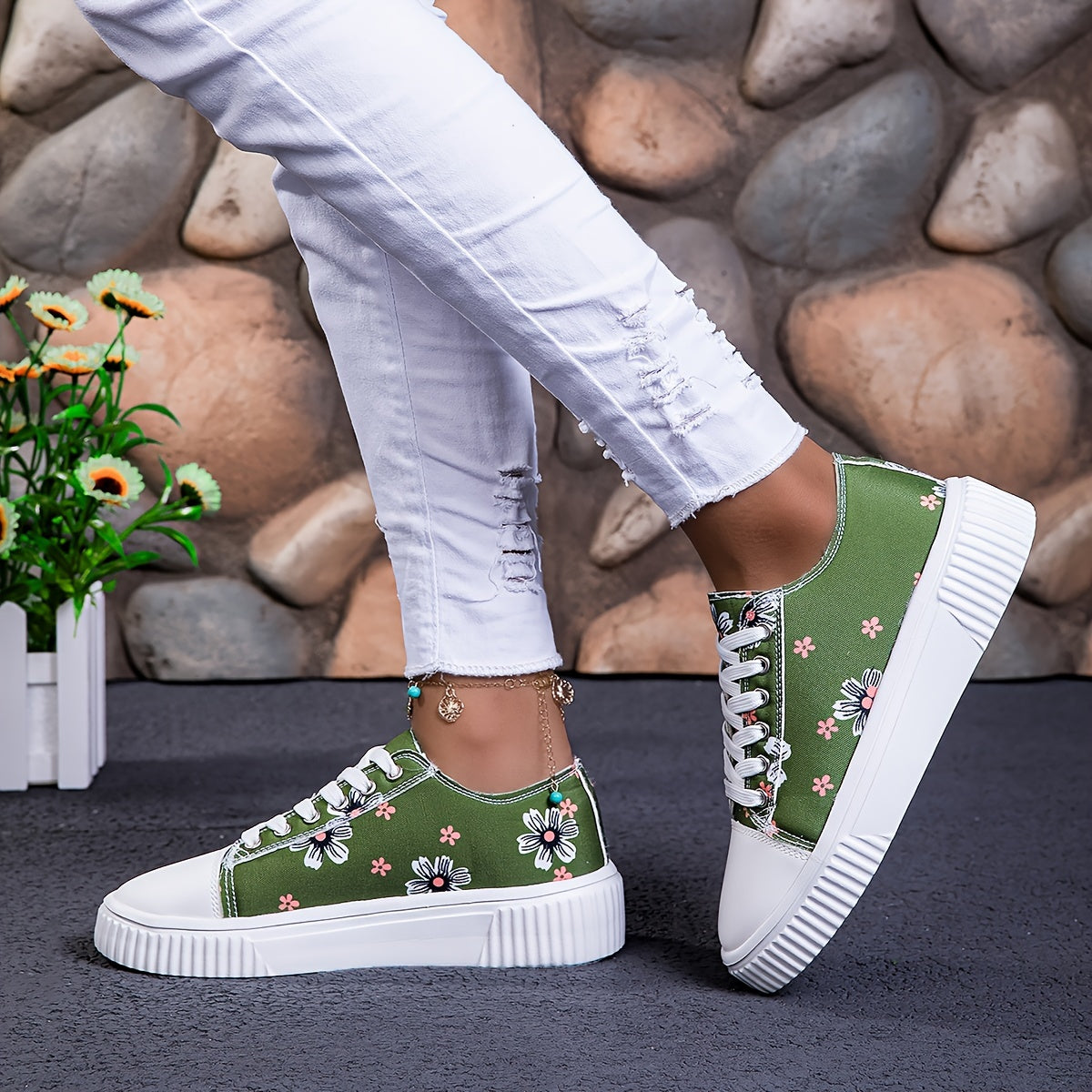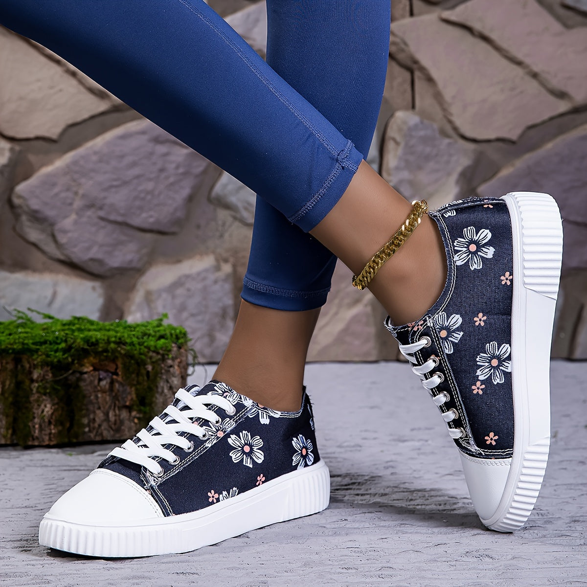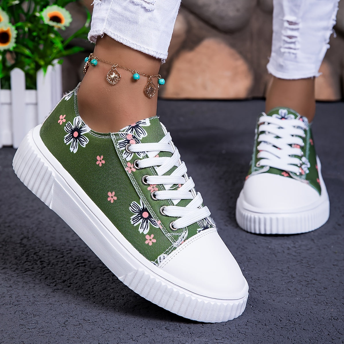 Женские кроссовки из холста на шнуровке, повседневные балетки с цветочным принтом