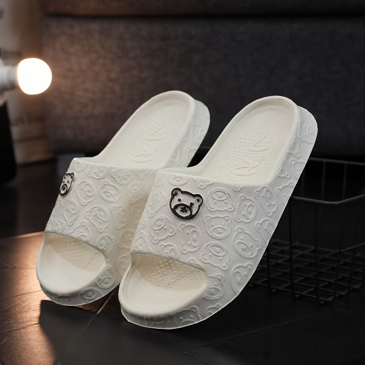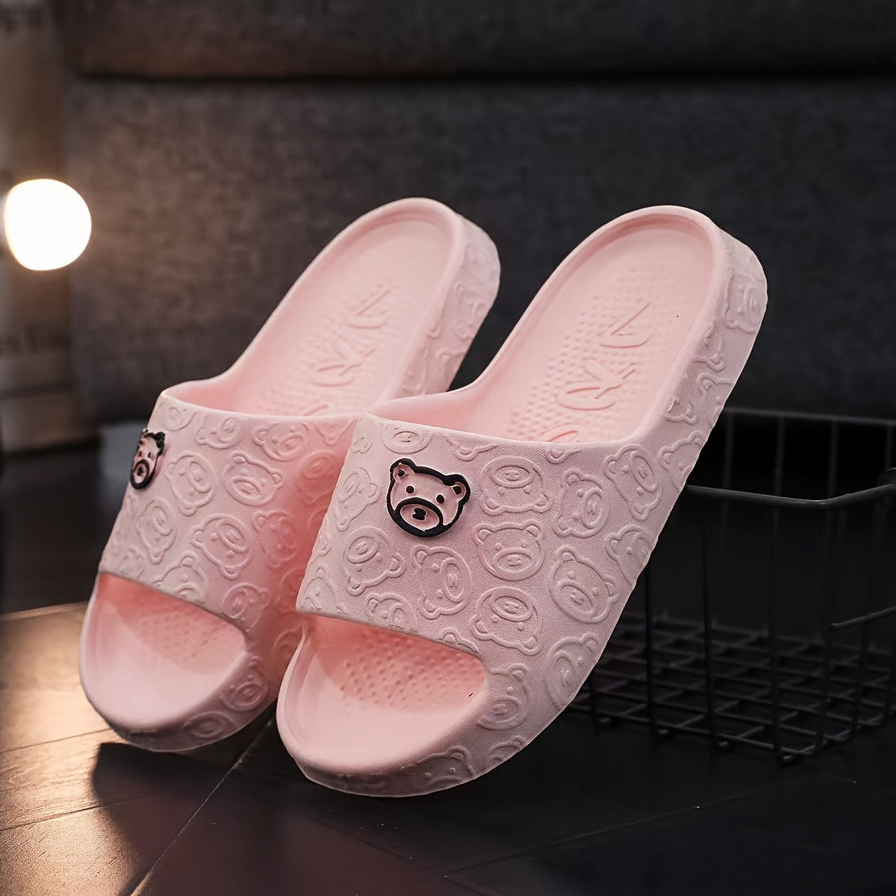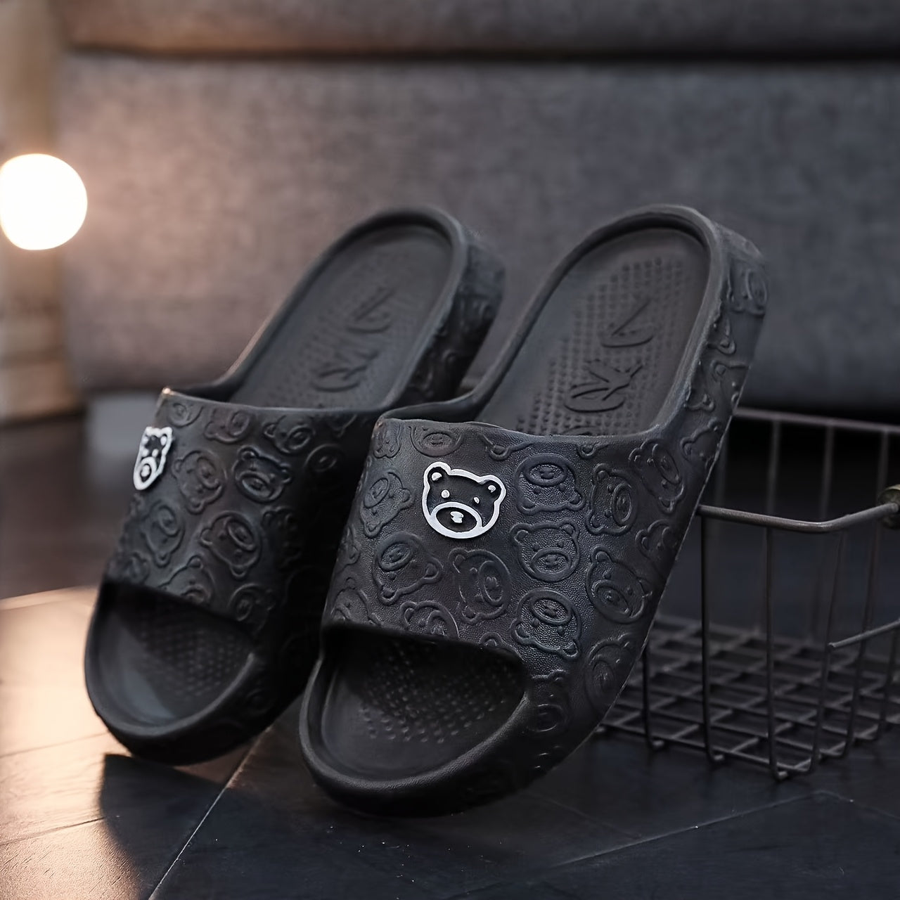 Женские шлепанцы с мультяшным медведем EVA с мягкой подошвой, нескользящие, для ванной, черные