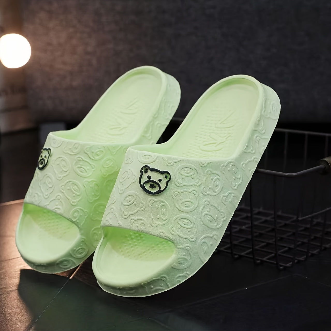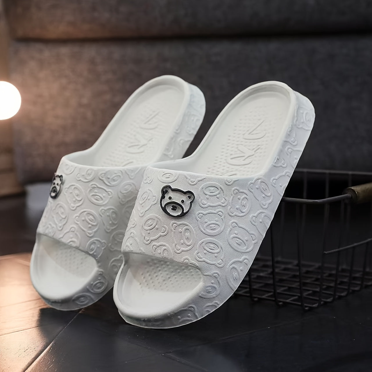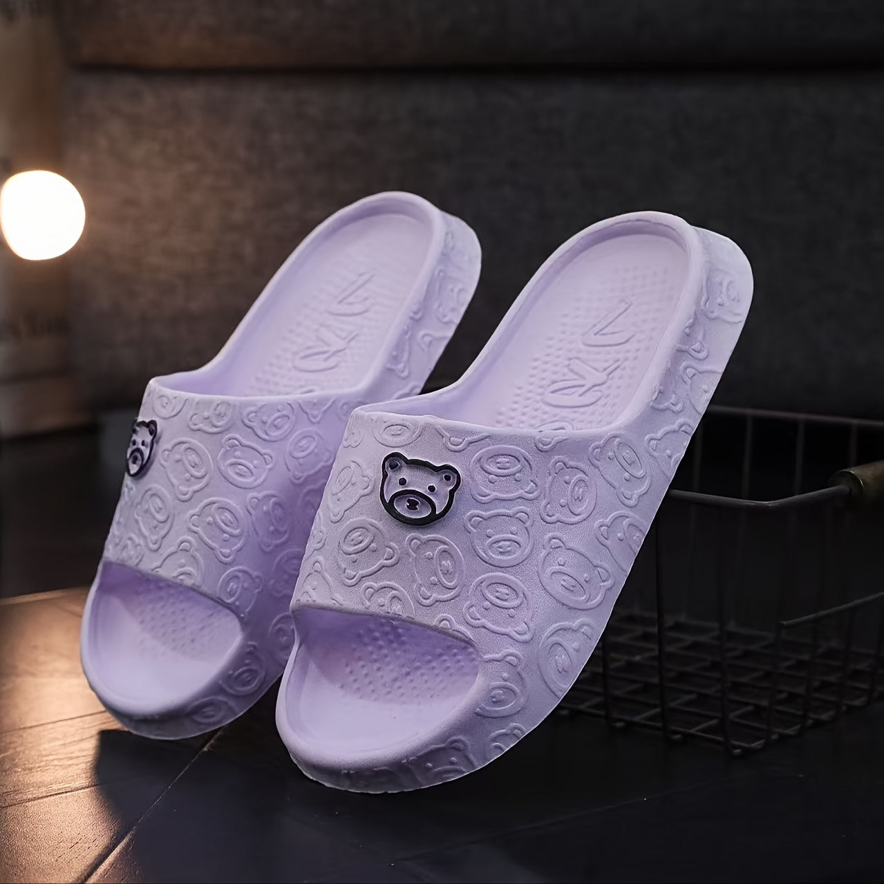 Женские шлепанцы с мультяшным медведем EVA с мягкой подошвой, нескользящие, для ванной, черные