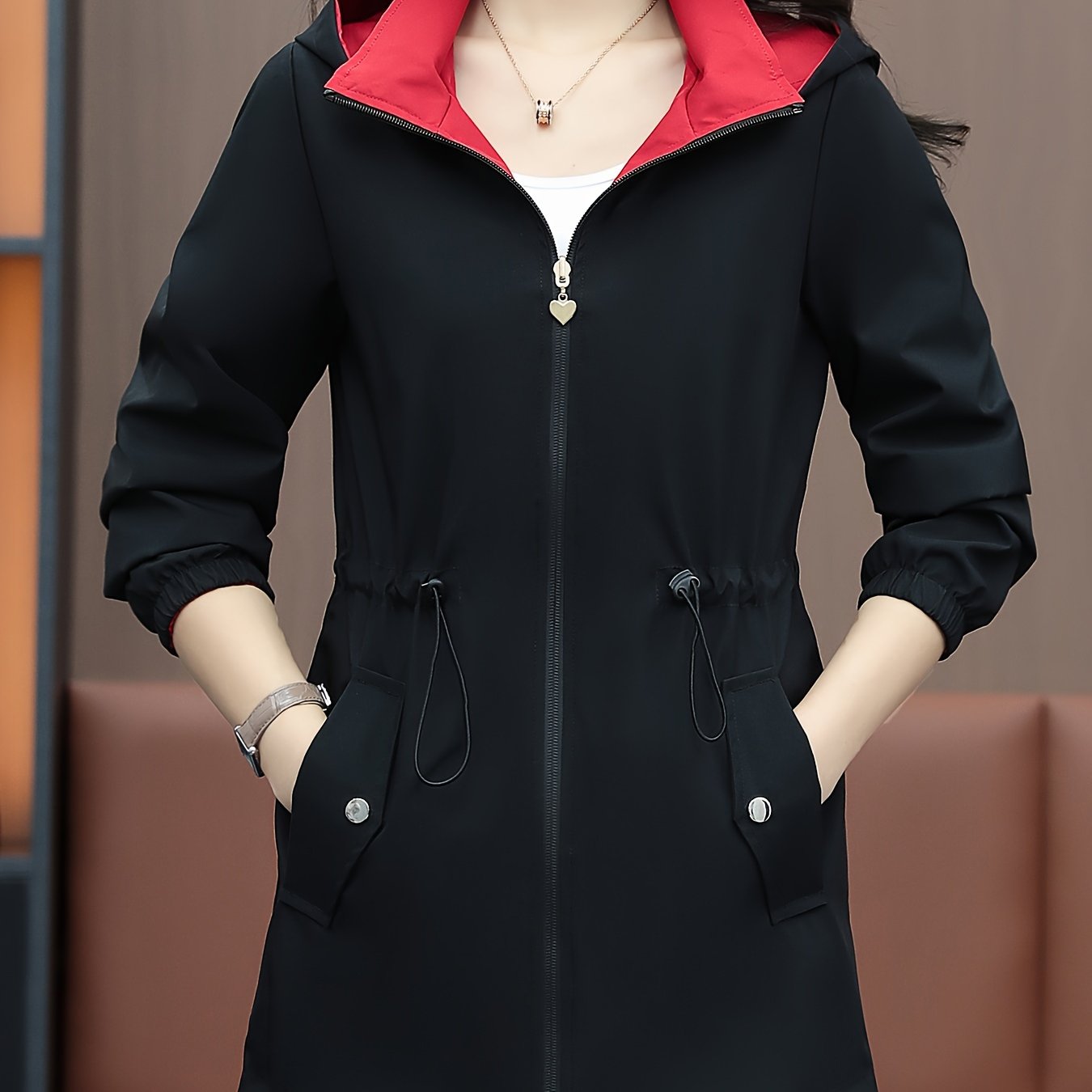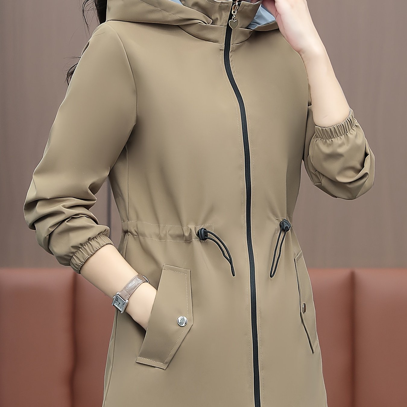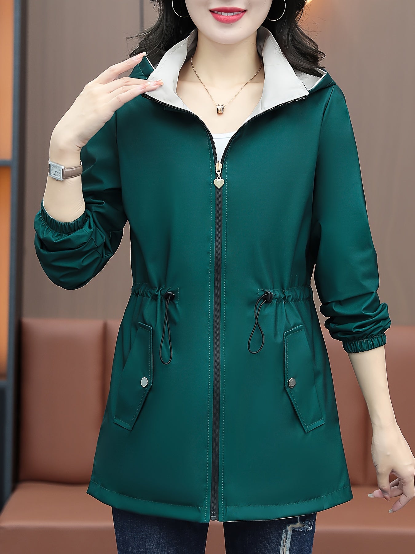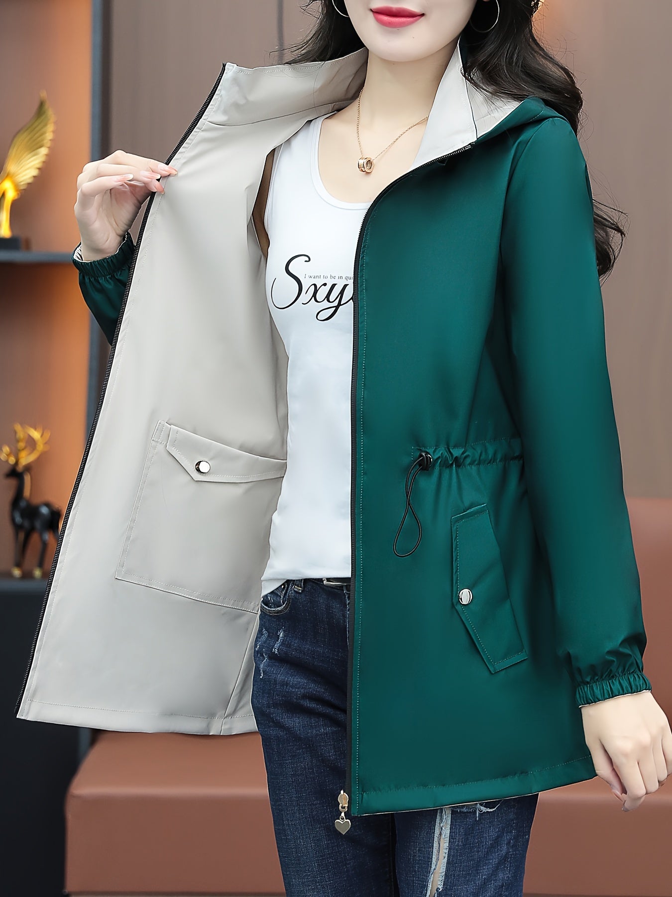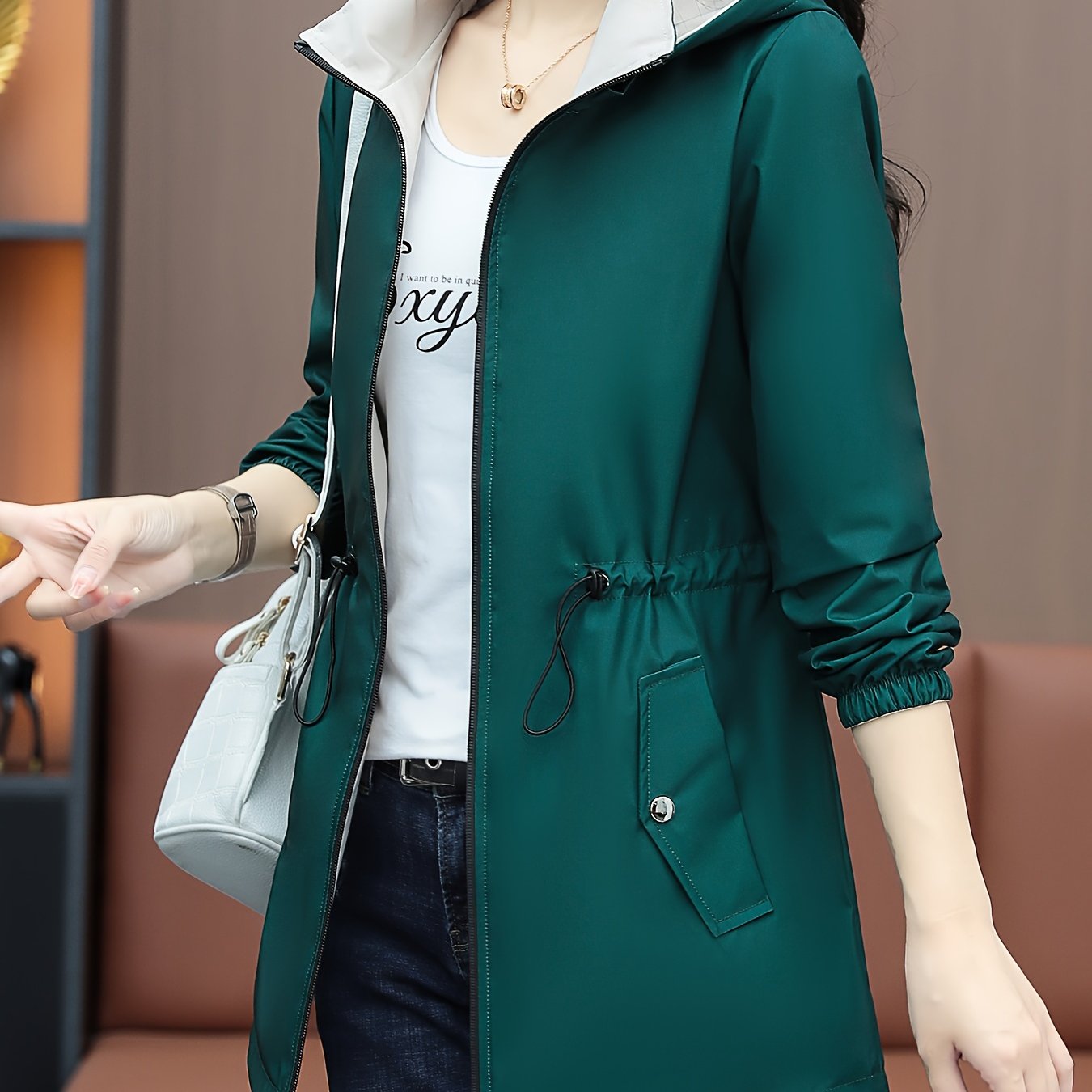 Женская повседневная ветровка с молнией и шнурком на талии, идеально подходит для весны и осени.