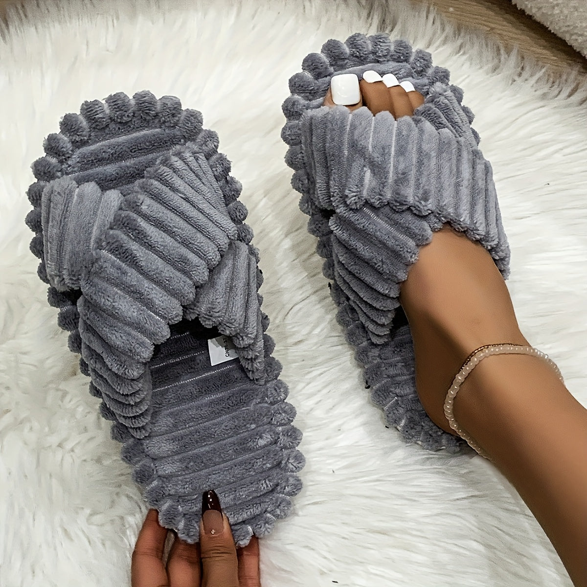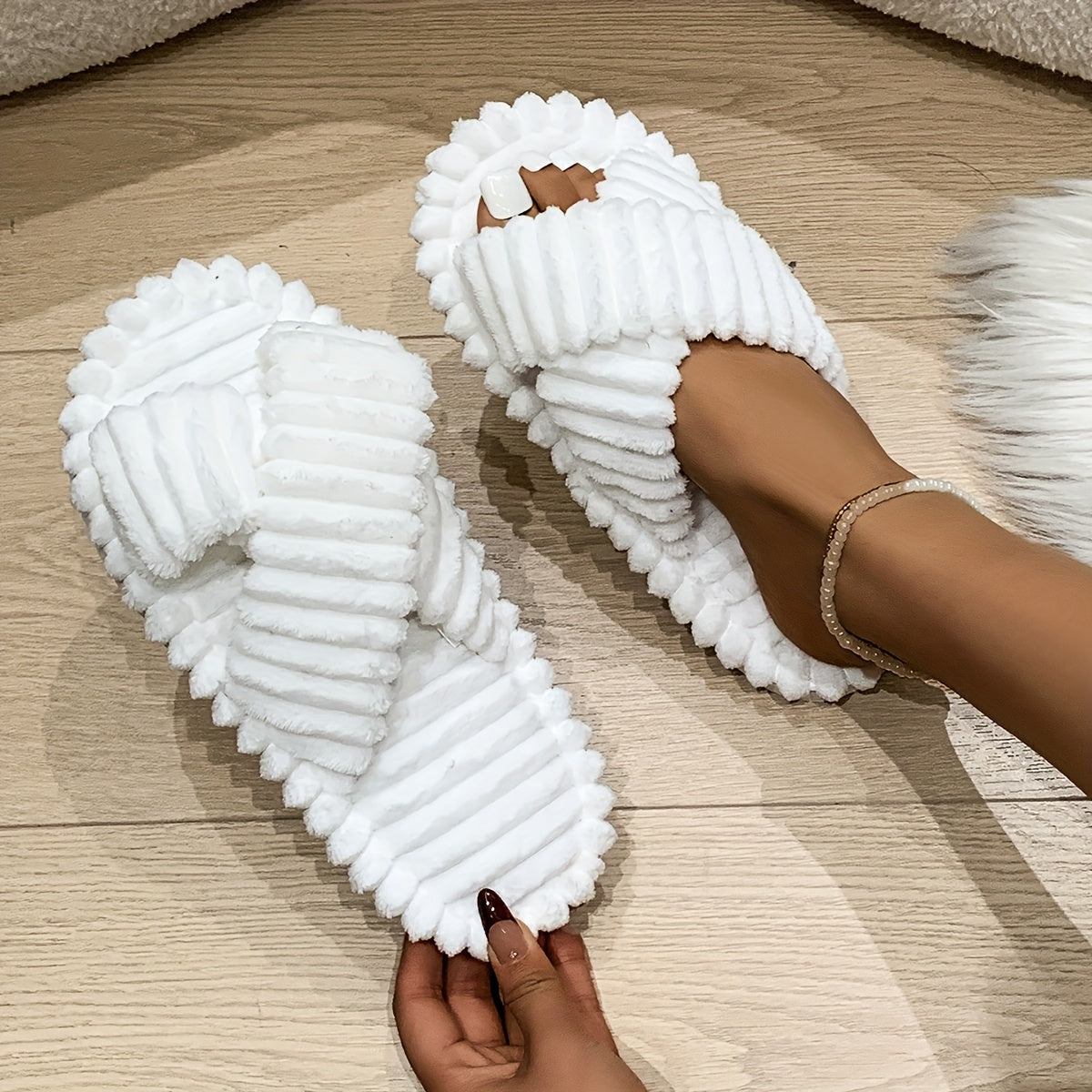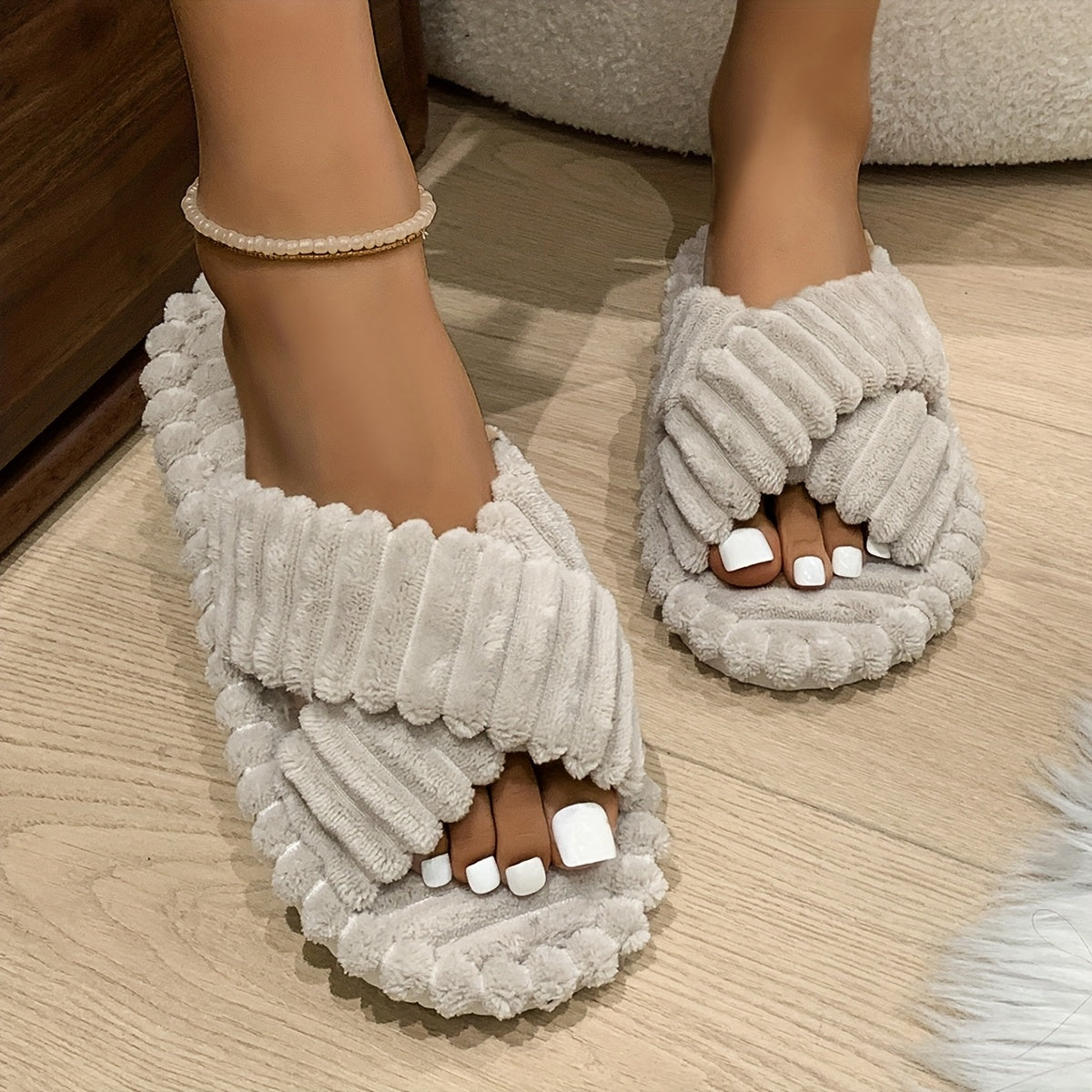 Женские тапочки на перекрестных ремешках с мягкой плюшевой подкладкой для дома и улицы, повседневные бежевые, черные, белые, серые, зеленые