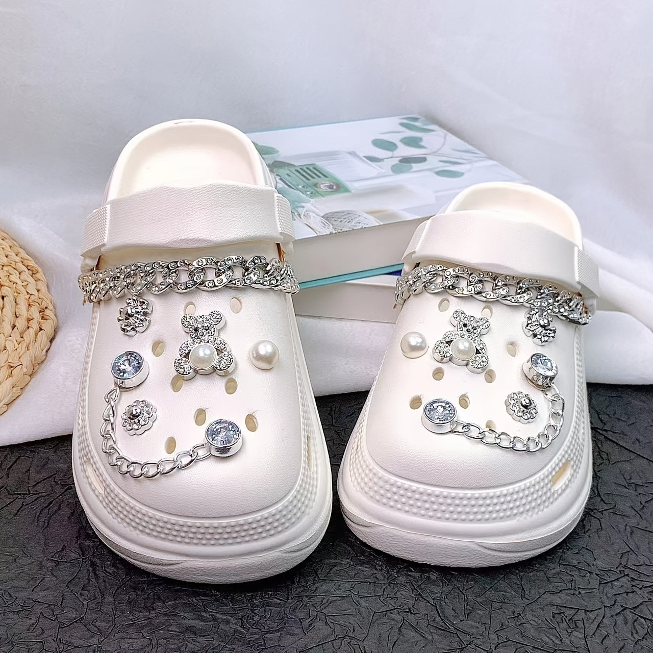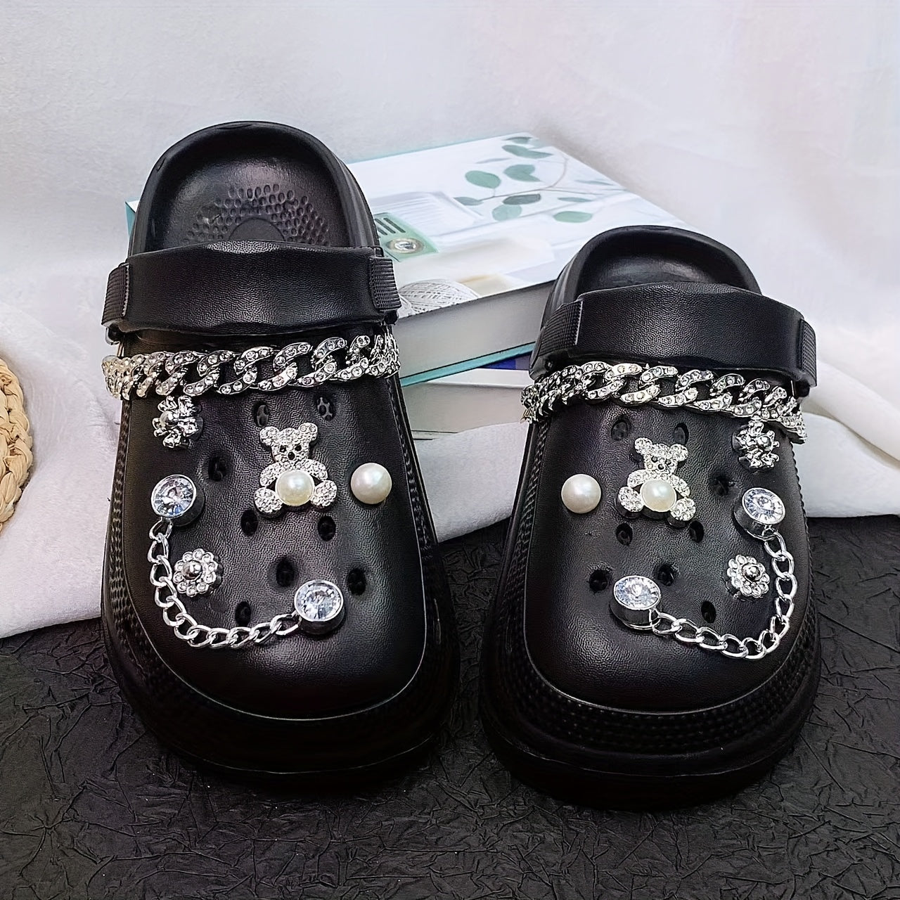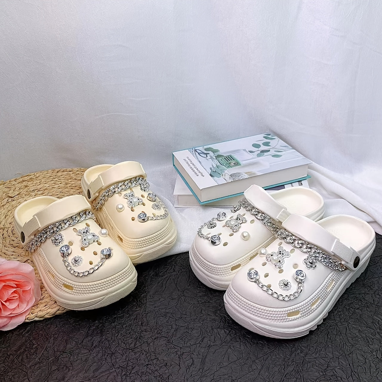 Women's EVA Hole Shoes Versatile Sandals with Rhinestone Chains and Sunflowers