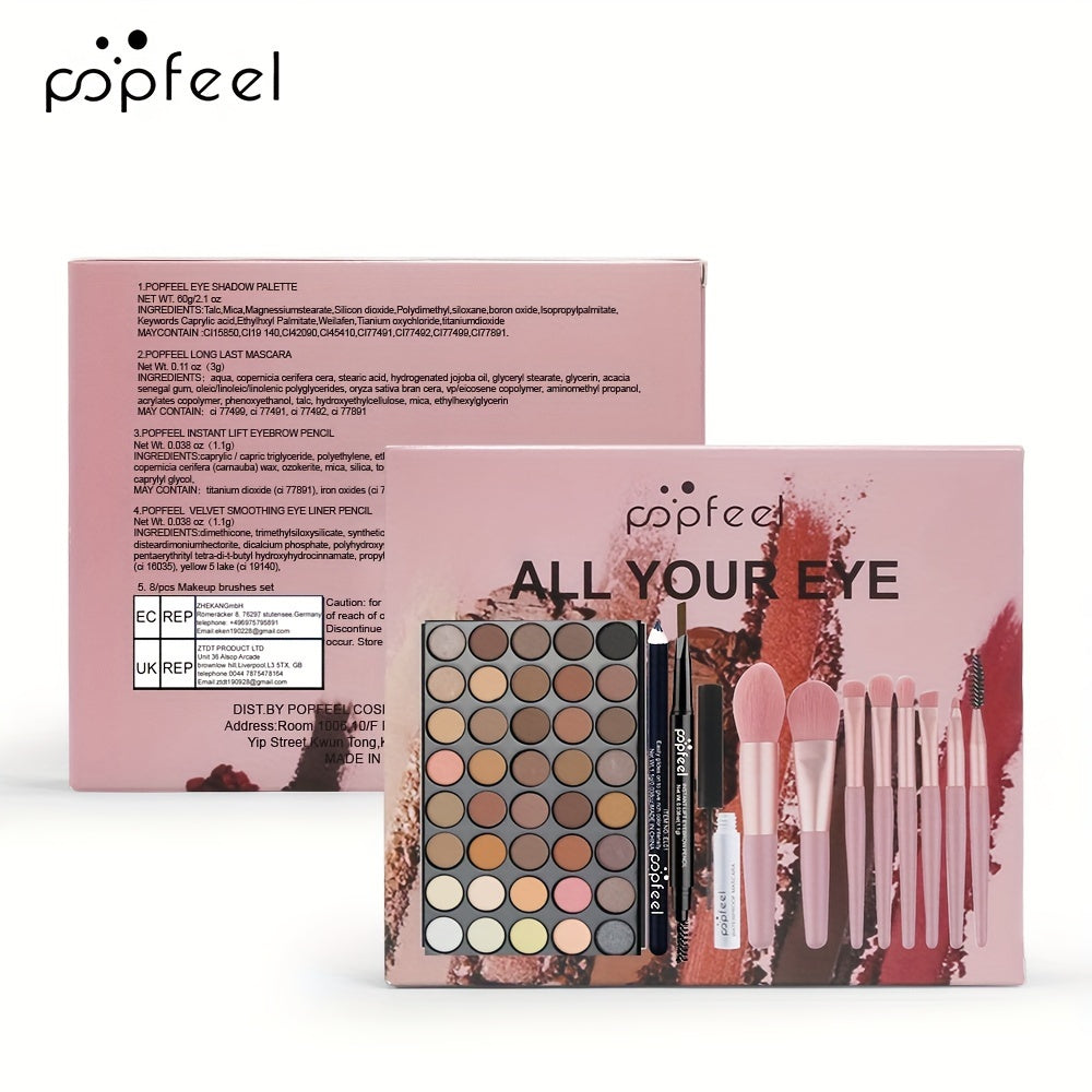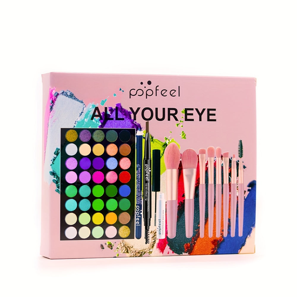 женский набор для макияжа глаз с тенями, подводкой, тушью и кистями