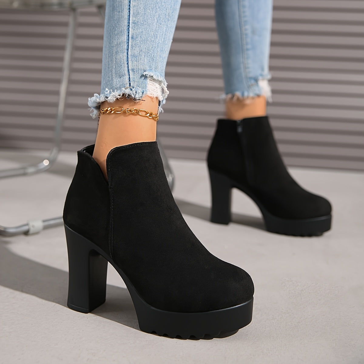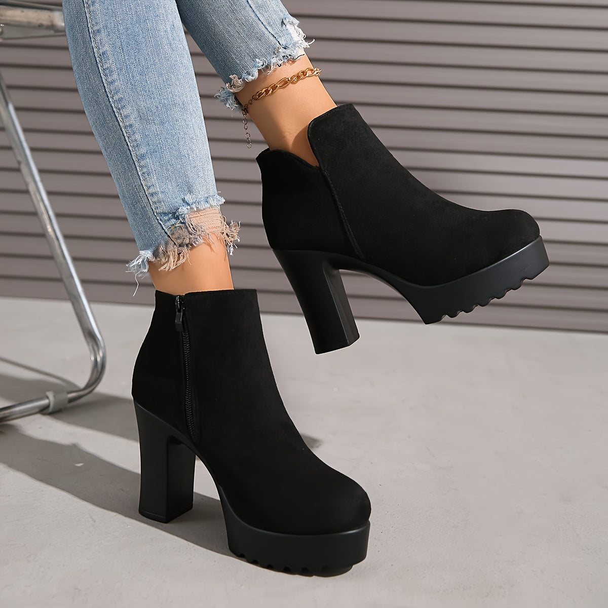 Женские ботинки из искусственной кожи на каблуке с массивной подошвой и боковой молнией