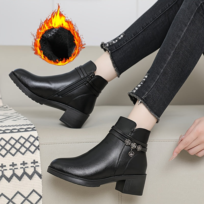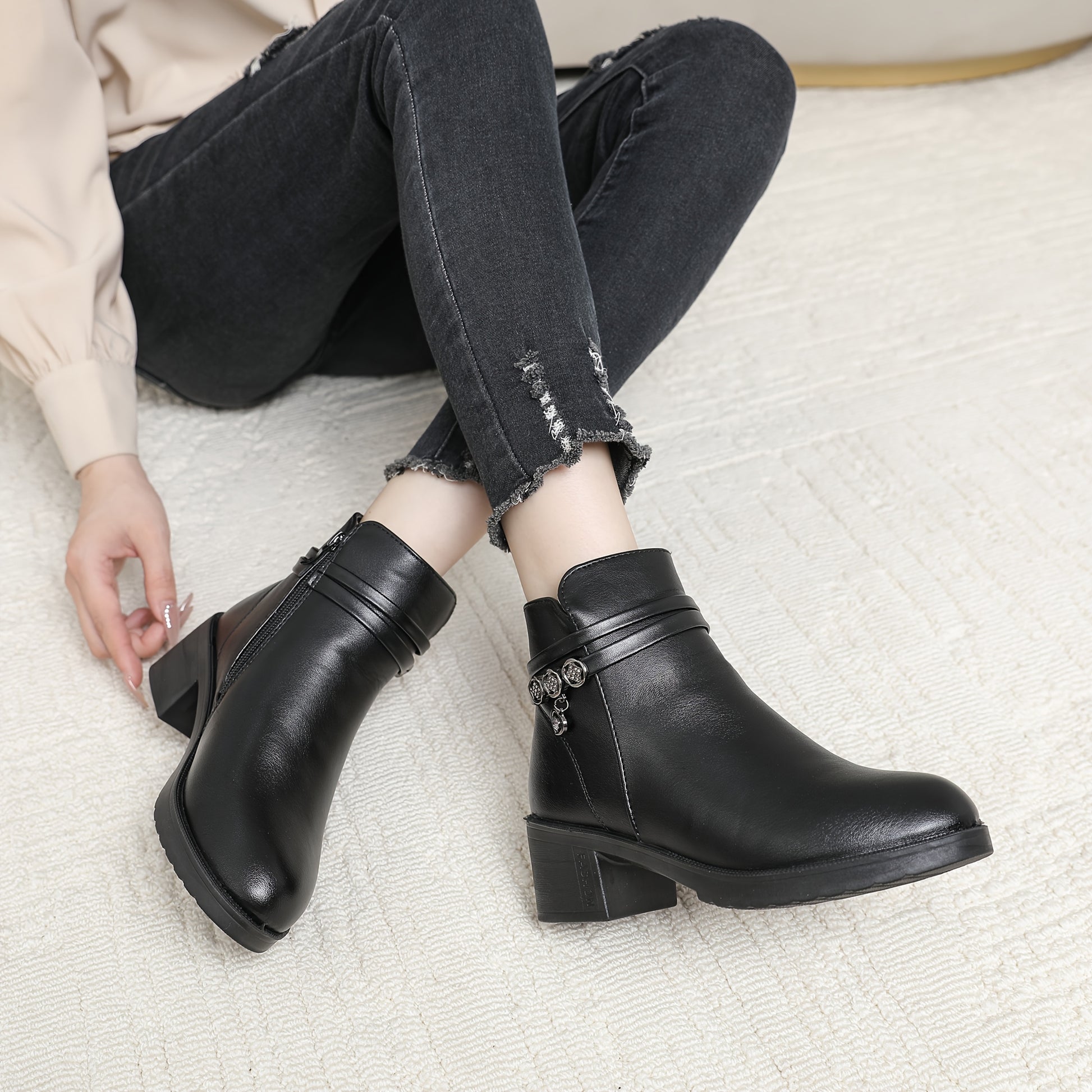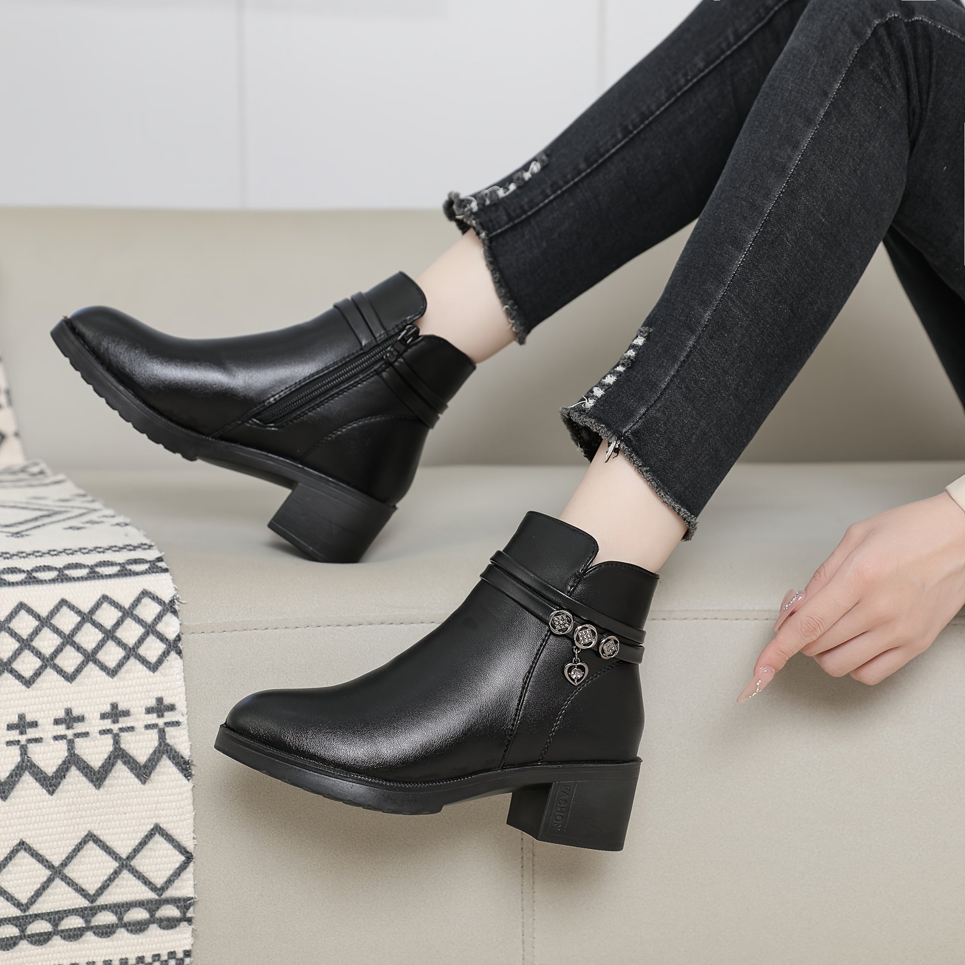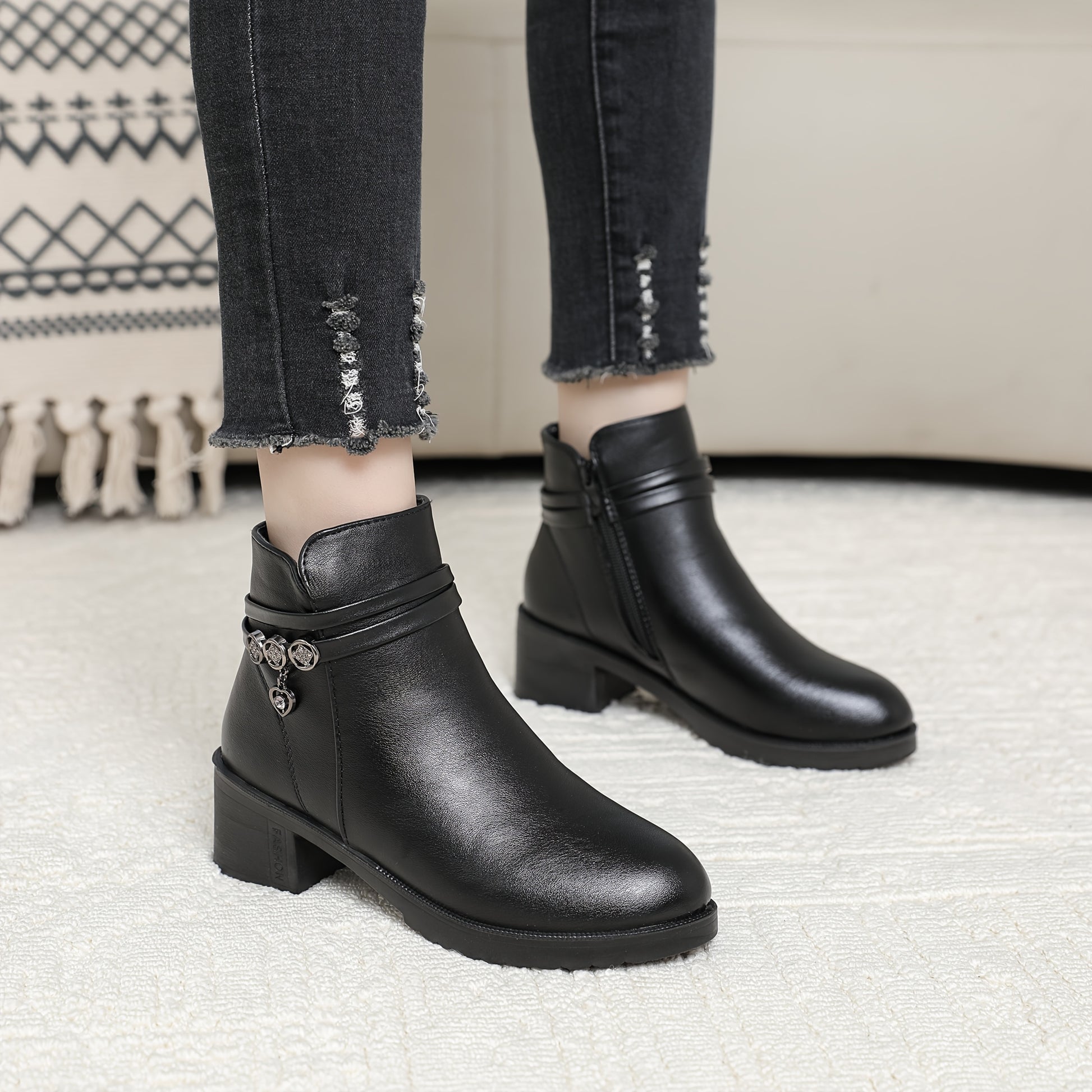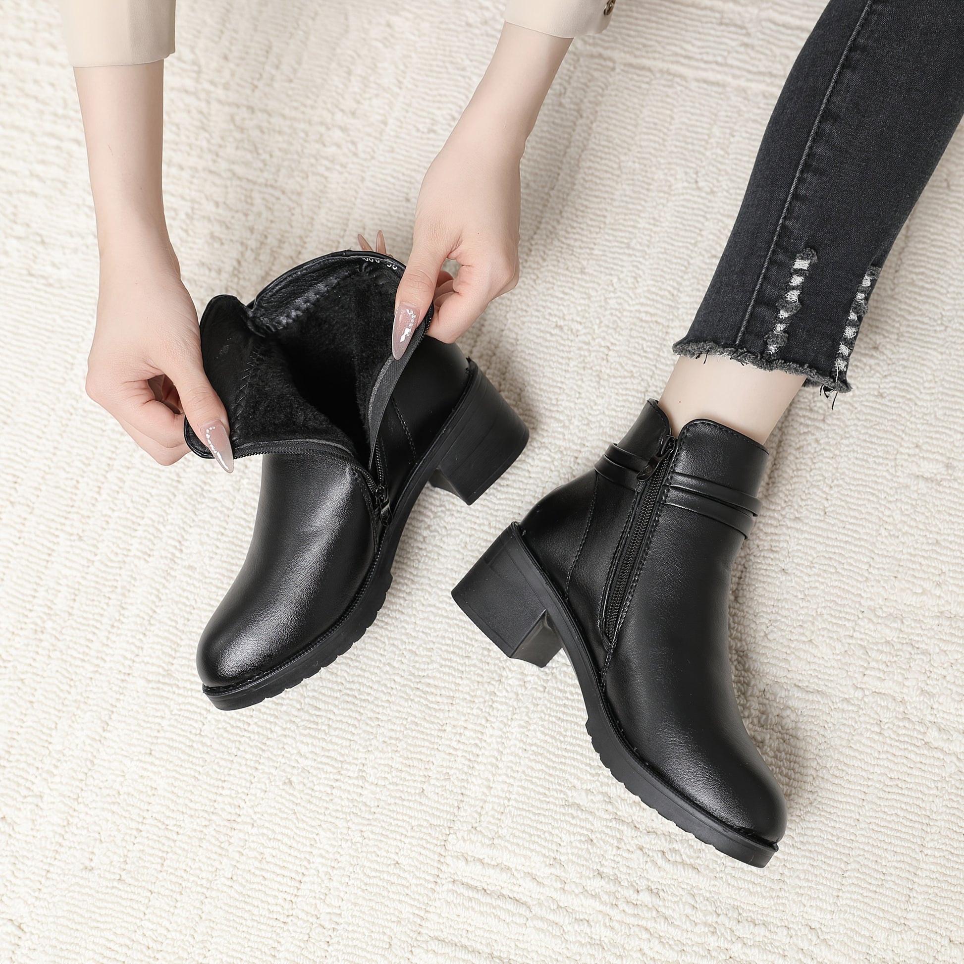 Женские ботинки из искусственной кожи на каблуке с платформой, боковой молнией, противоскользящей подошвой
