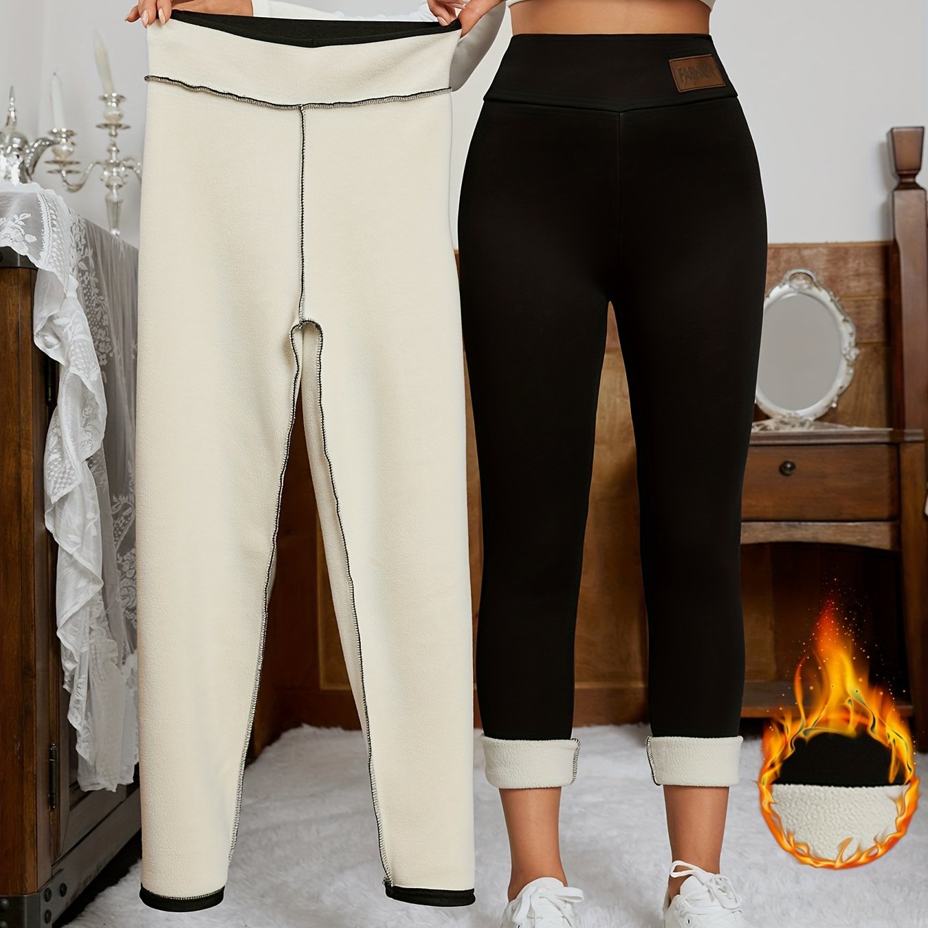 Леггинсы для женщин с флисовой подкладкой и дизайном букв в бело-голубом градиенте. Уютная термальная одежда для осени и зимы.