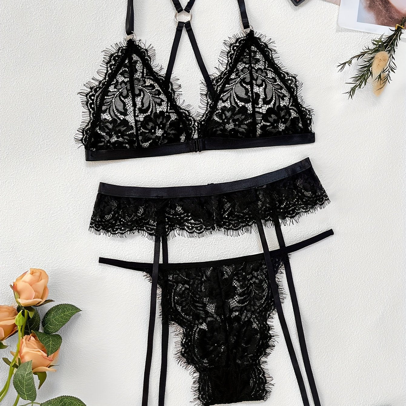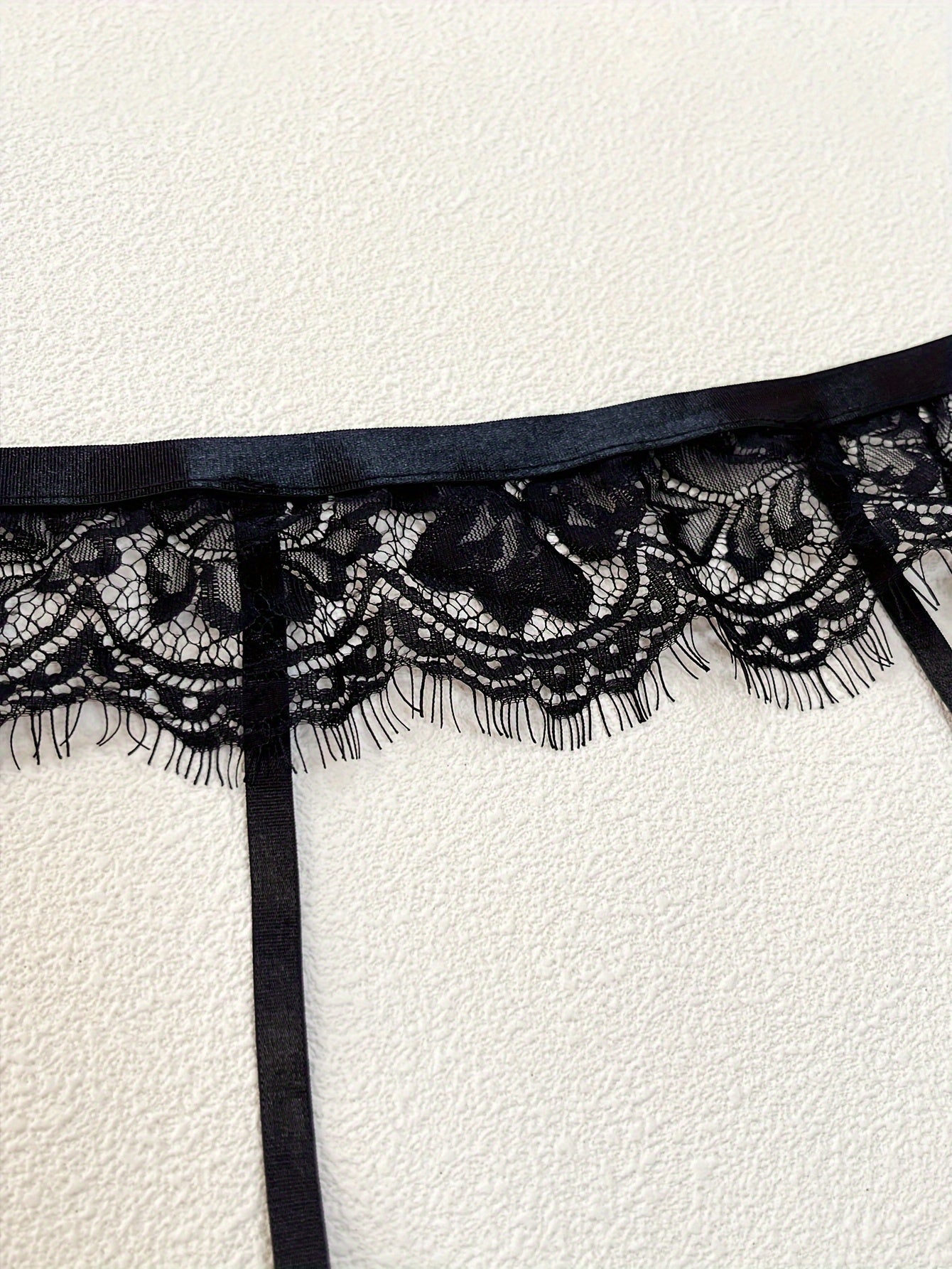 Женский комплект кружевного нижнего белья с бюстгальтером, поясом для чулок и стрингами