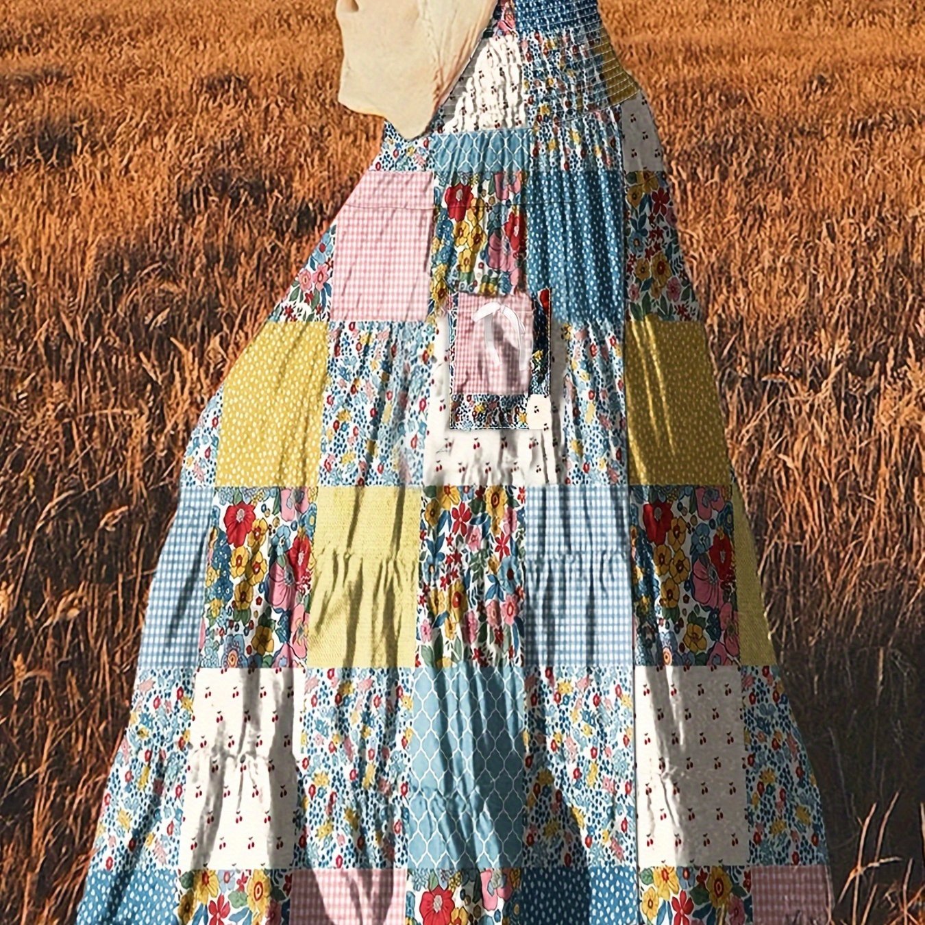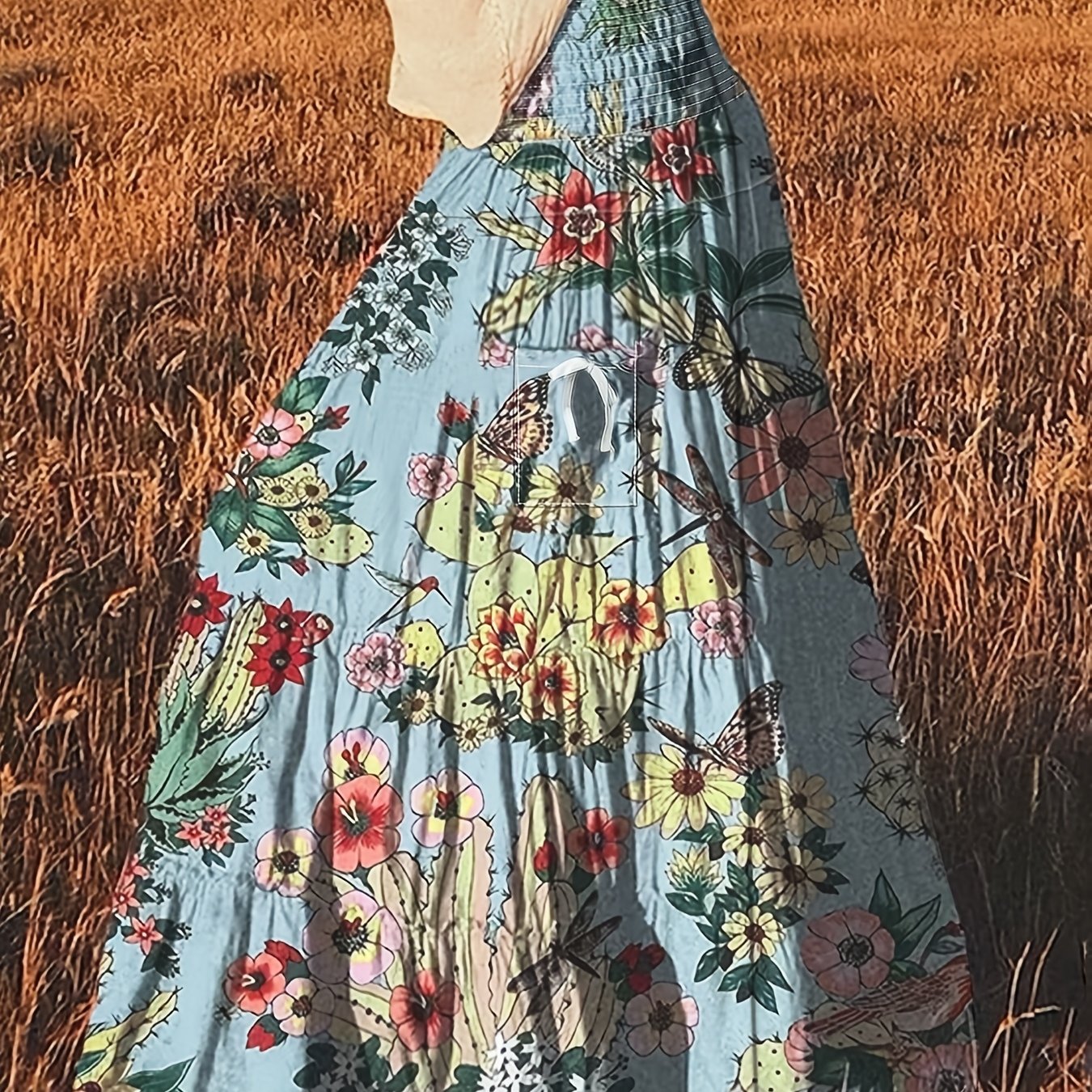 Женская цветочная юбка из полиэстера прямого кроя с сборчатой талией и карманами