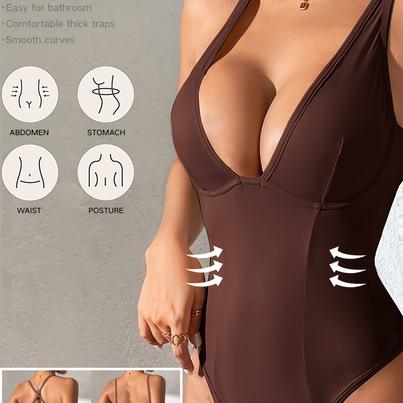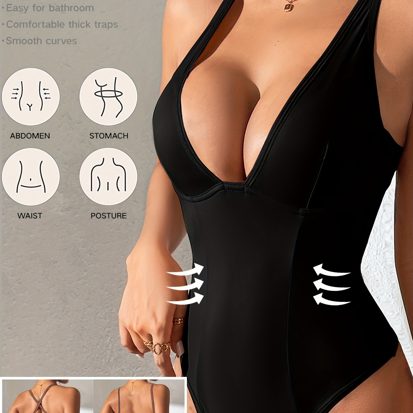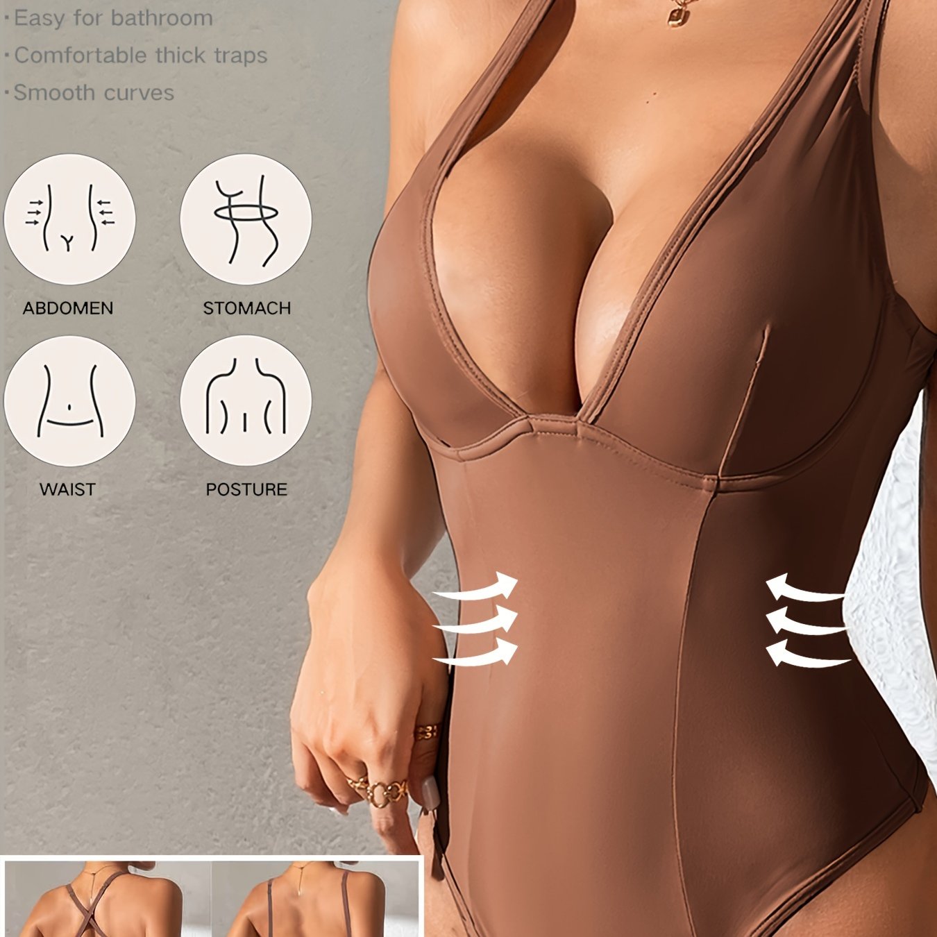 Бодис с высокой поддержкой для женщин, изготовленный из трикотажной ткани, состоящей на 82% из полиамида и на 18% из эластана. Имеет однотонный цвет с перекрестными бретелями и без подкладки, разработан для создания эффекта стройности.