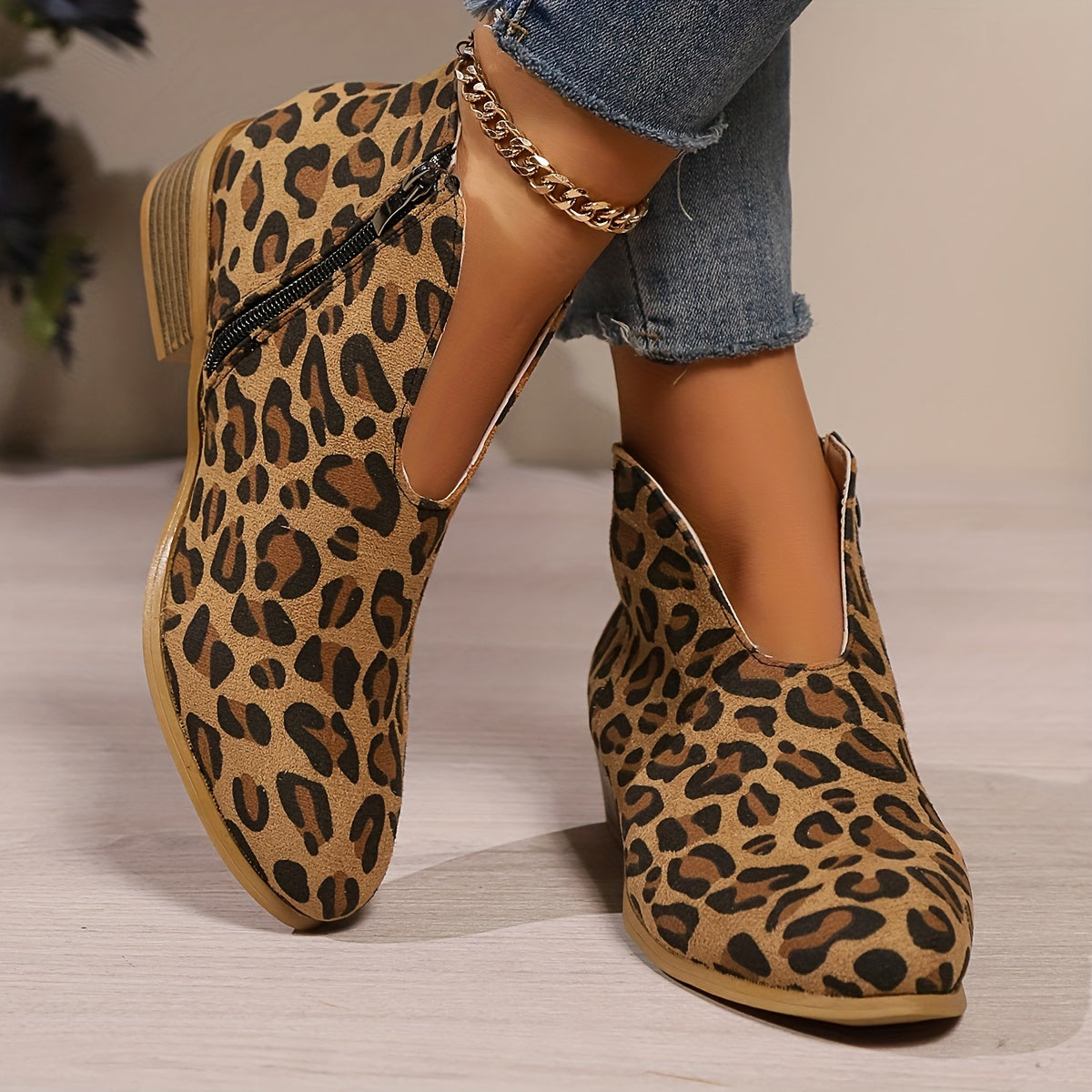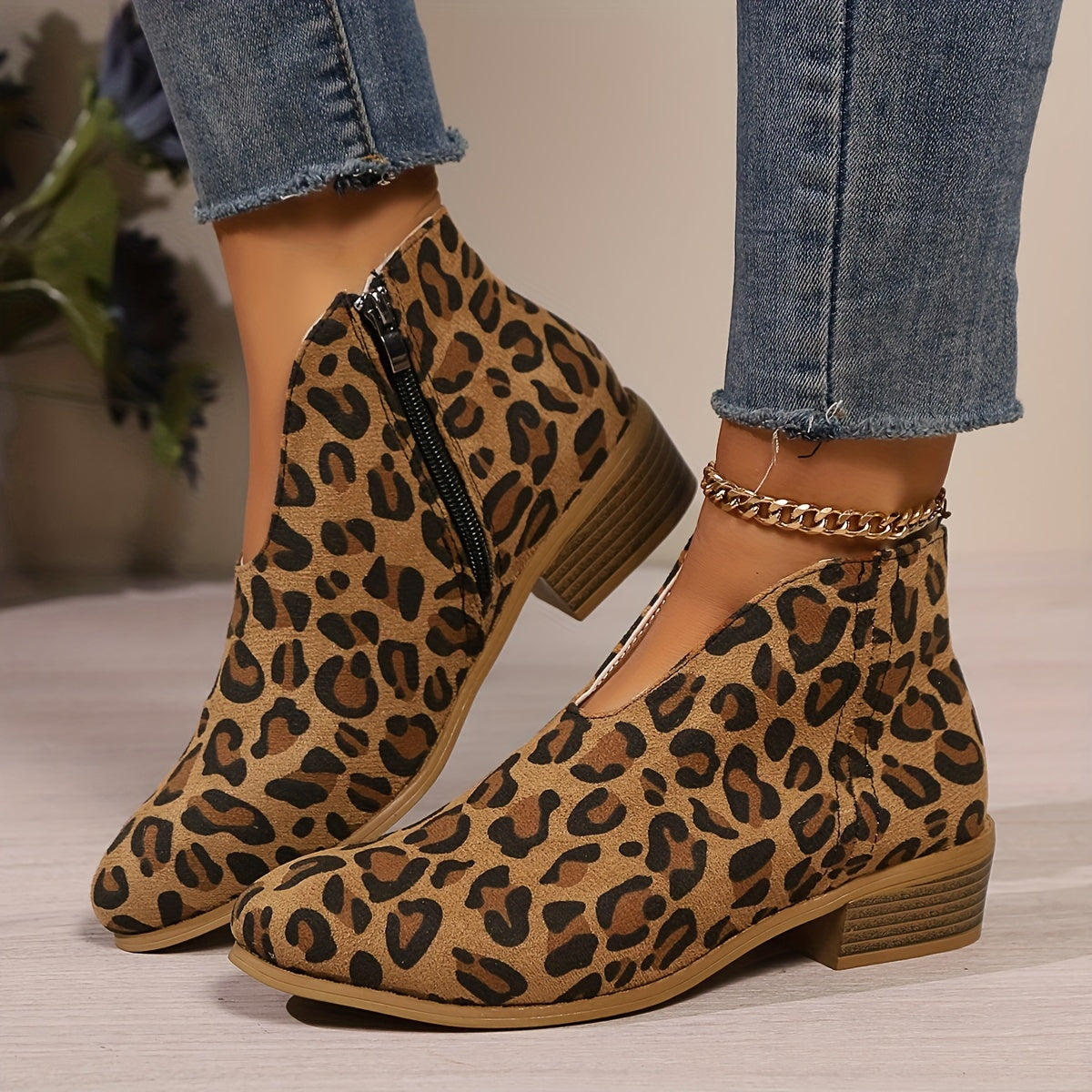 Женские ботинки на щиколотке с леопардовым принтом, массивная подошва, средний каблук, молния, кожа