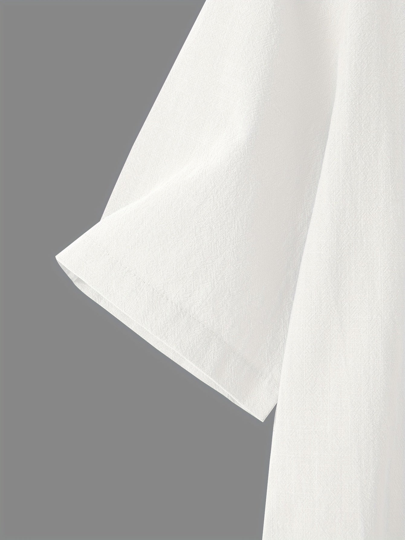 Блузка женская свободного кроя с V-образным вырезом и коротким рукавом, выполненная из дышащего хлопка с кнопочной деталью. Машинная стирка, идеально подходит для повседневной одежды.