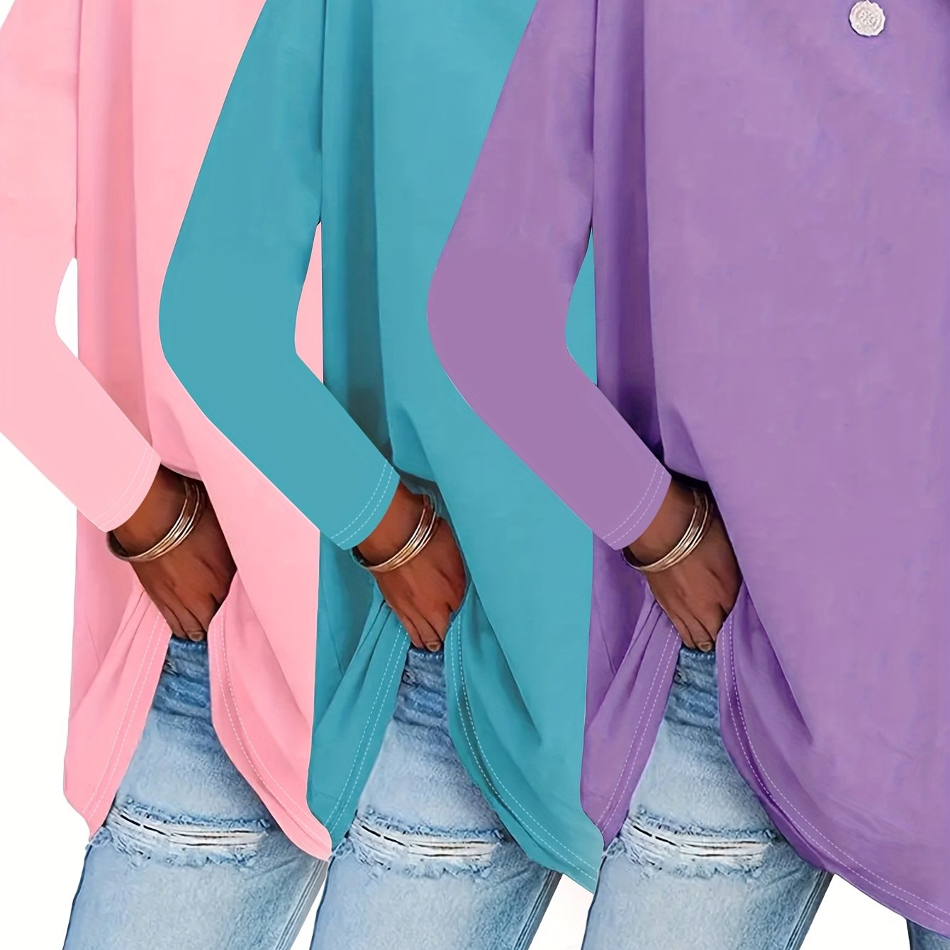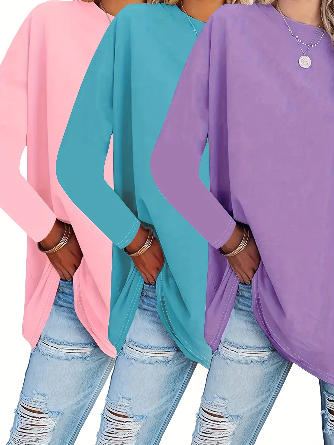 Женские свободные топы с длинным рукавом и круглым вырезом, 3 шт. в наборе, весна-лето, цветовые комплекты