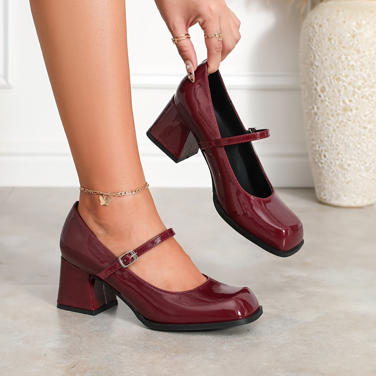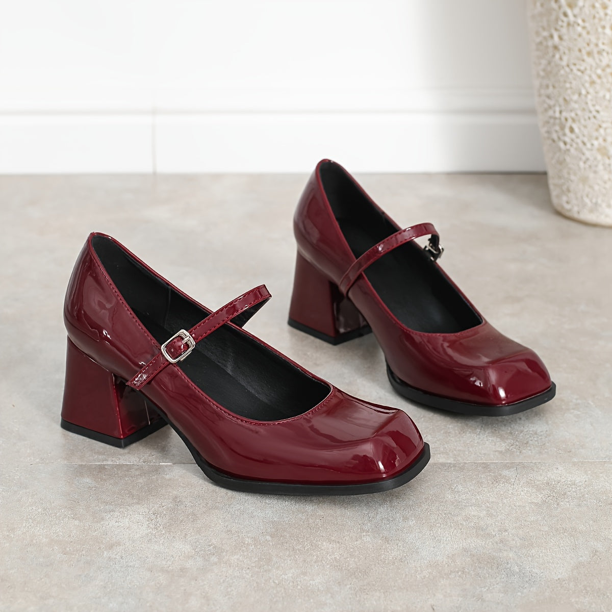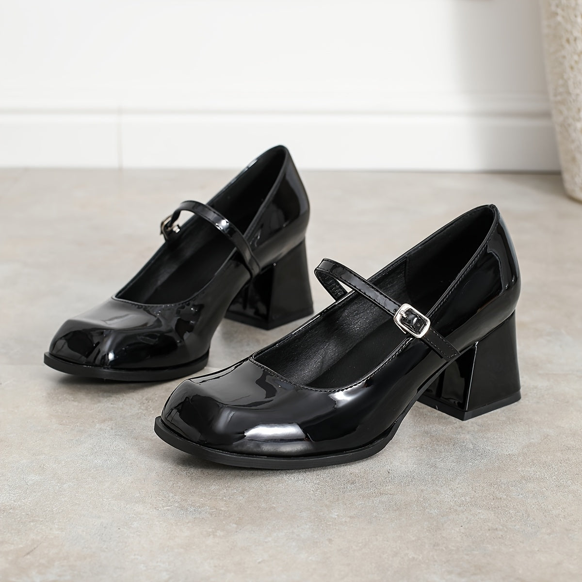 Женские туфли Мэри Джейн с квадратным носком и квадратным каблуком, элегантный и универсальный стиль для всех сезонов. Изготовлены из синтетических материалов.