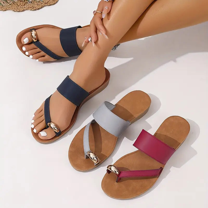 Women's Metallic Ankle Strap Slide Sandals Open-Toe Summer Beach Shoes