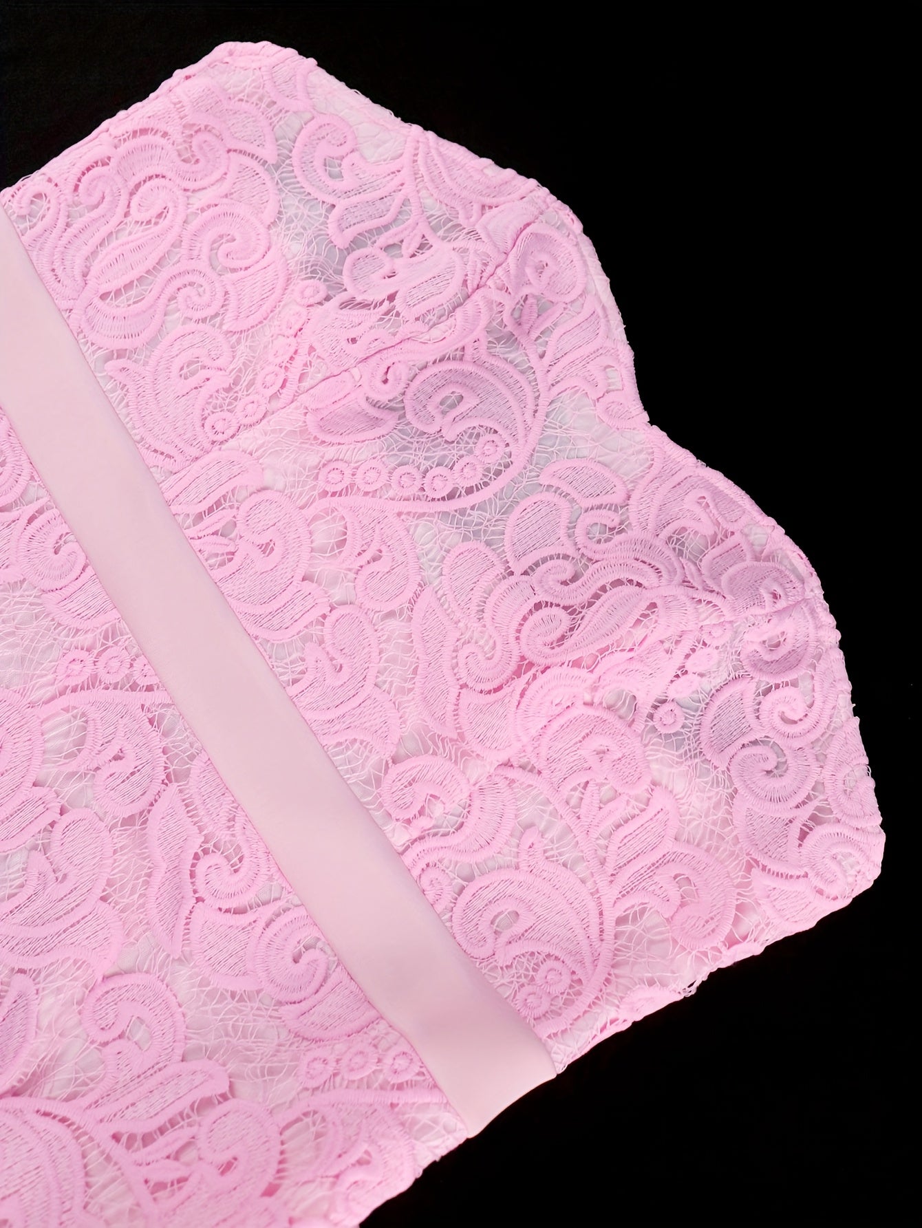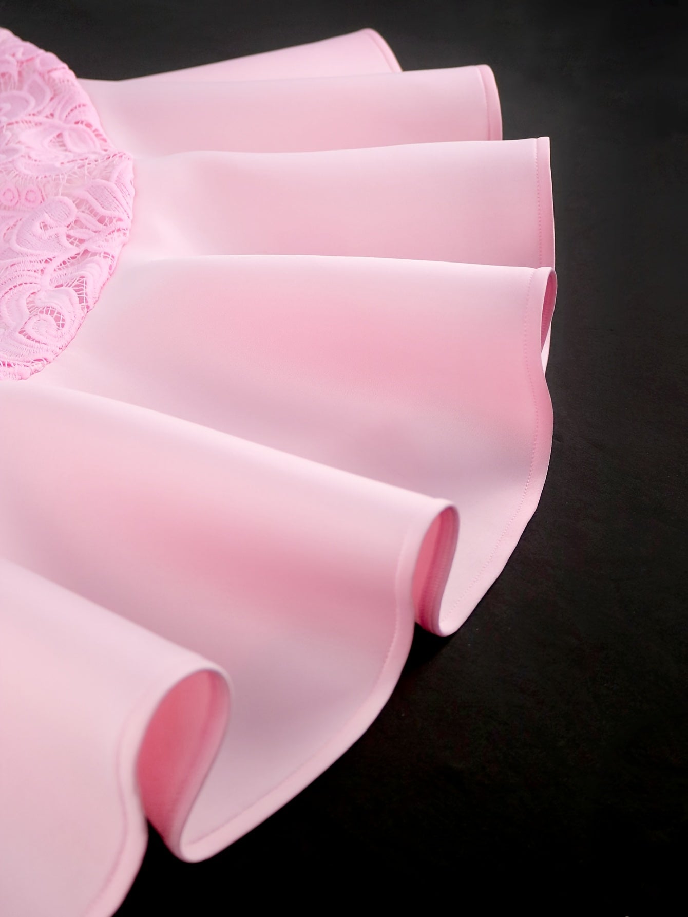 Women's Pink Lace Off-Shoulder Dress Ruffled Hem for Weddings and Parties