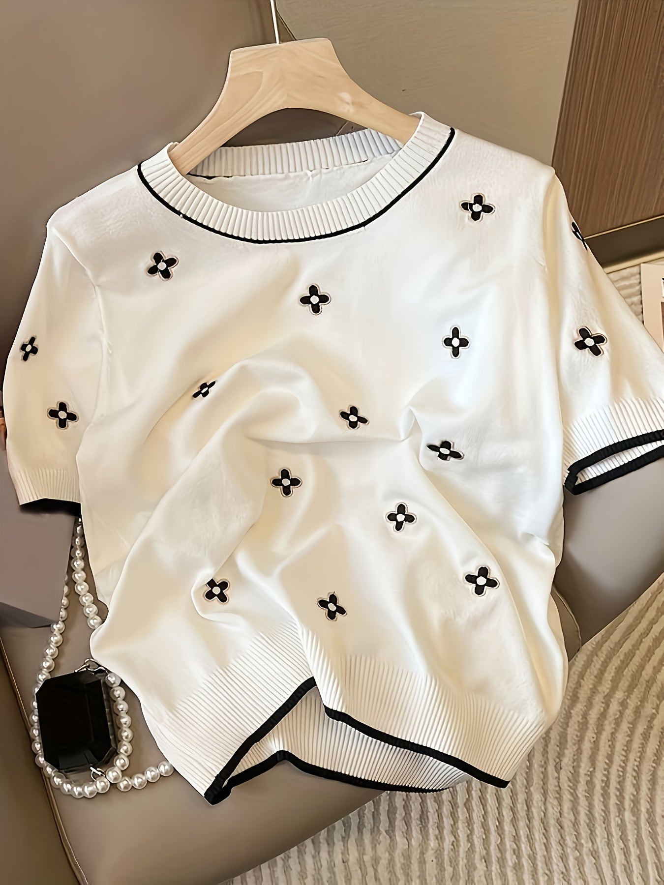 Женская футболка большого размера из трикотажа с короткими рукавами, круглым вырезом, вышивкой, легкая, дышащая, универсальная, свободного кроя.