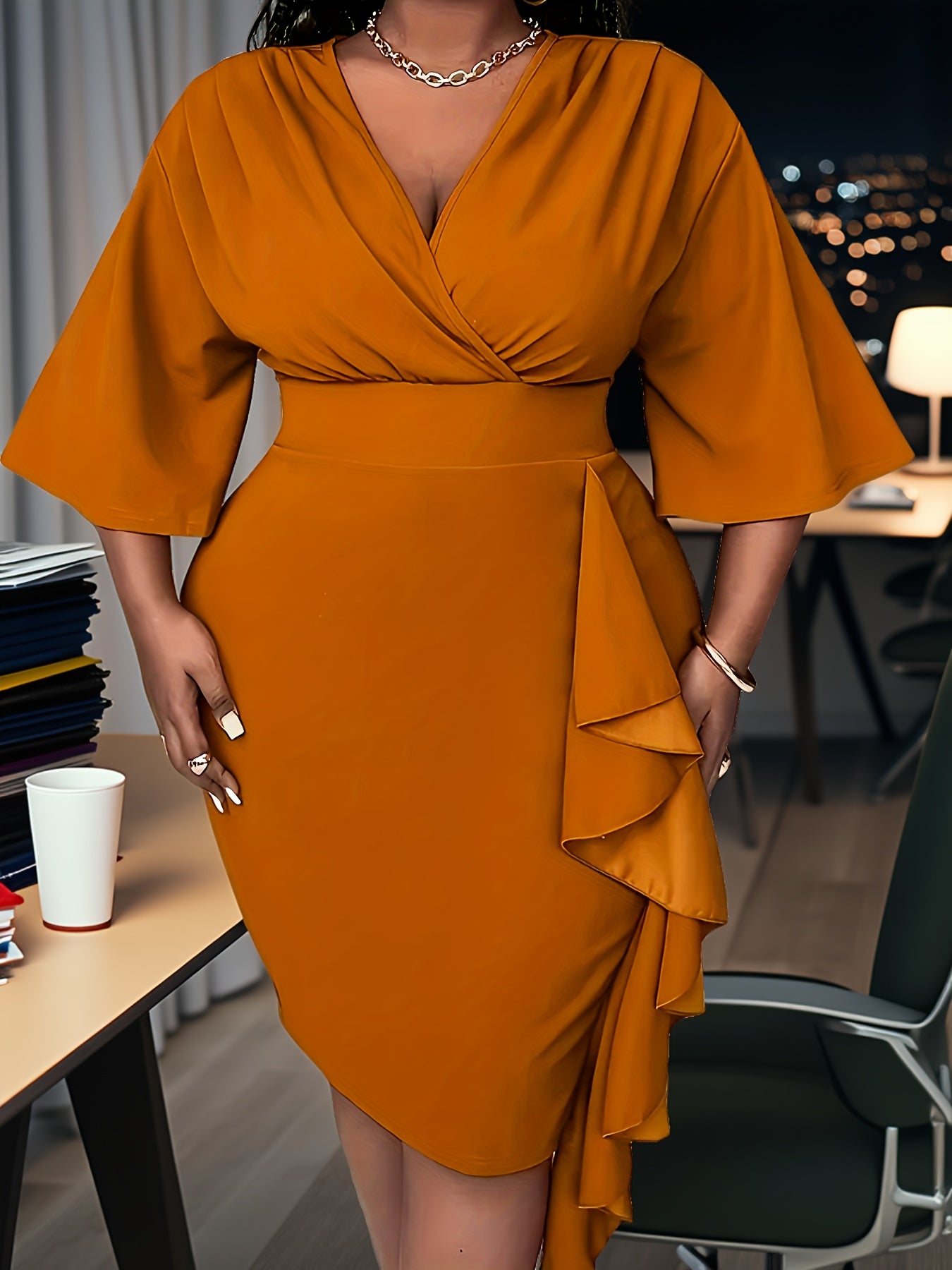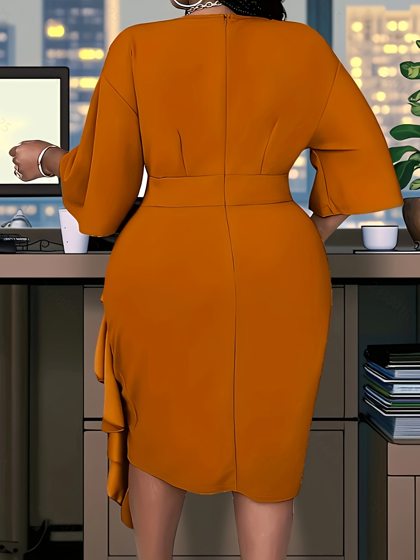 Women's Plus Size Fitted Dress with Ruffled Hem and Waist Cinching