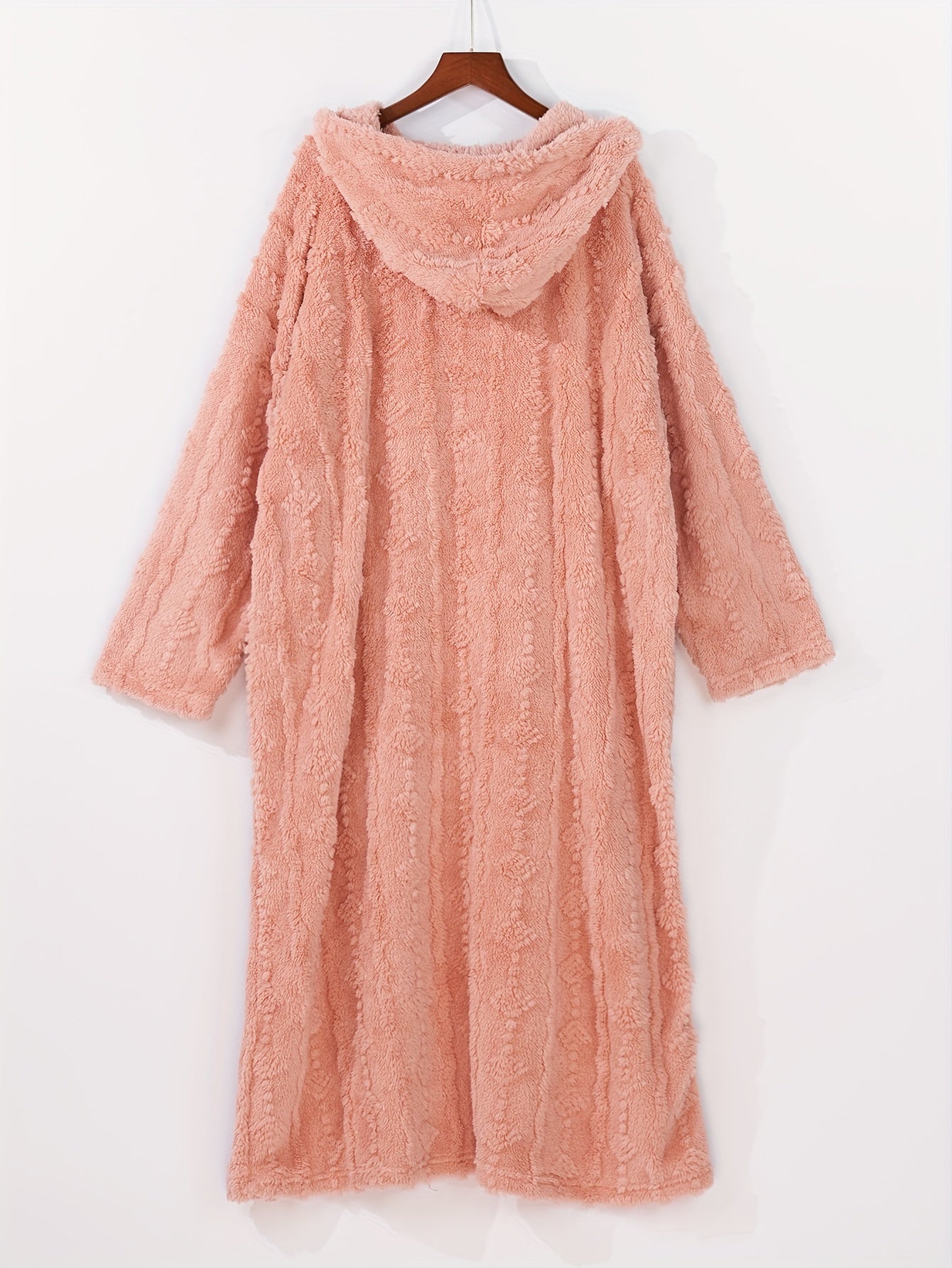 Женский халат с капюшоном и флисовой подкладкой для полных женщин с карманами