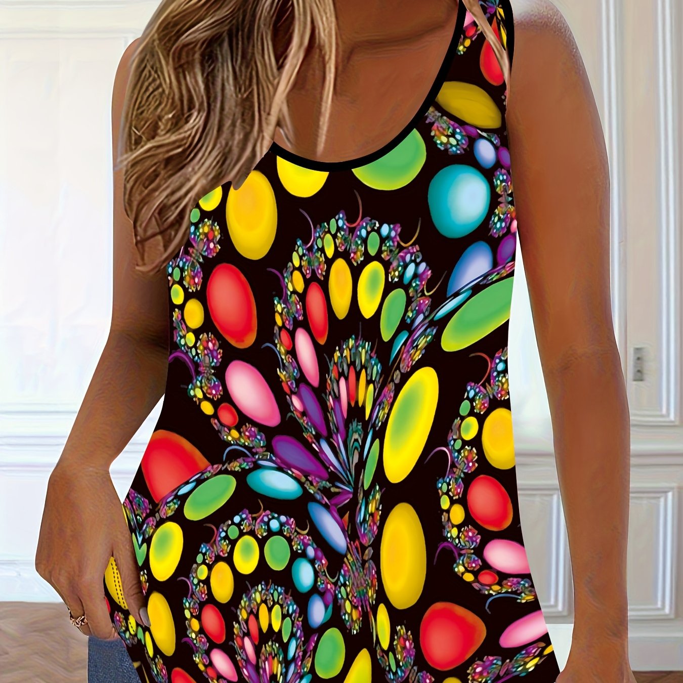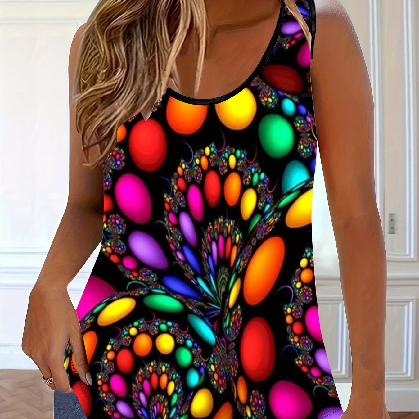 Женская майка без рукавов с цветочным принтом plus size черная летняя повседневная блузка