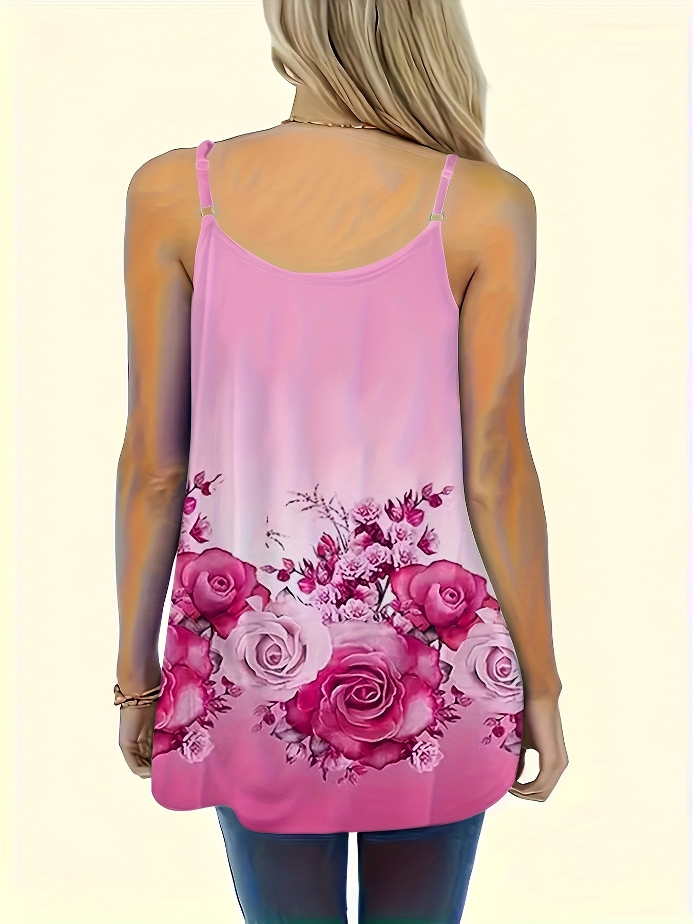 Женская майка без рукавов с цветочным принтом, V-образный вырез, большой размер