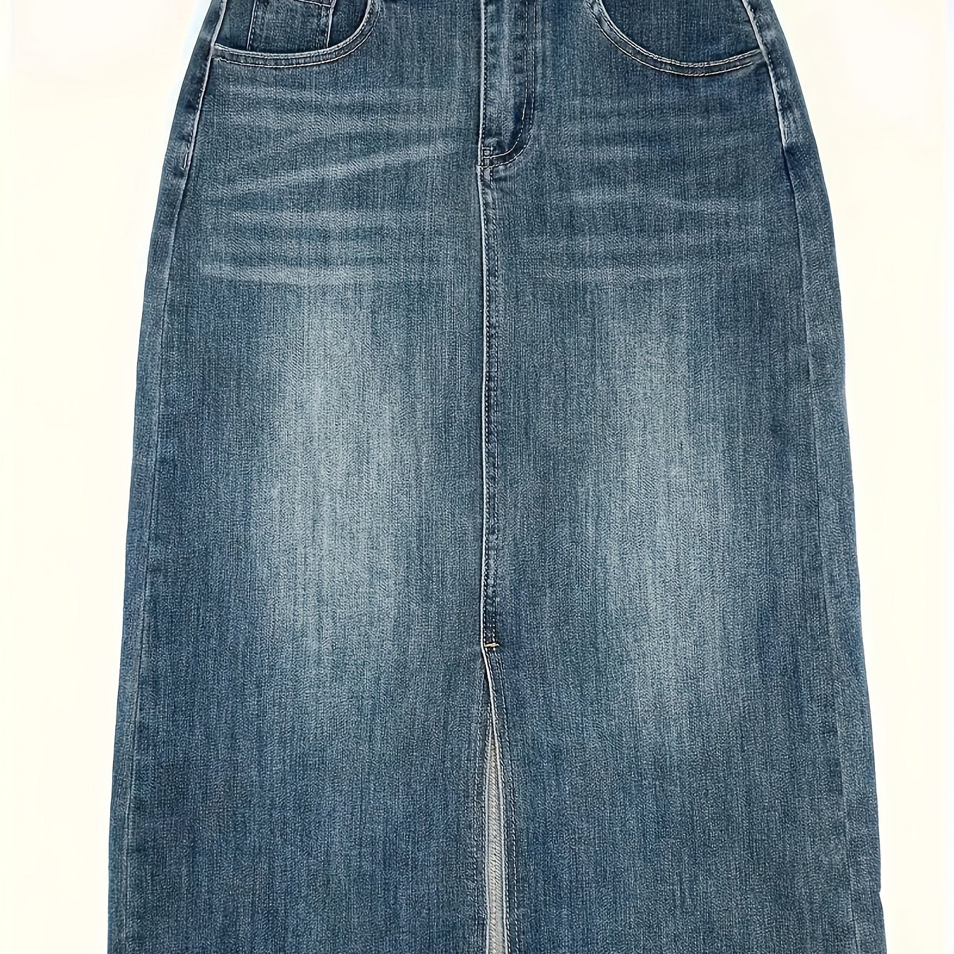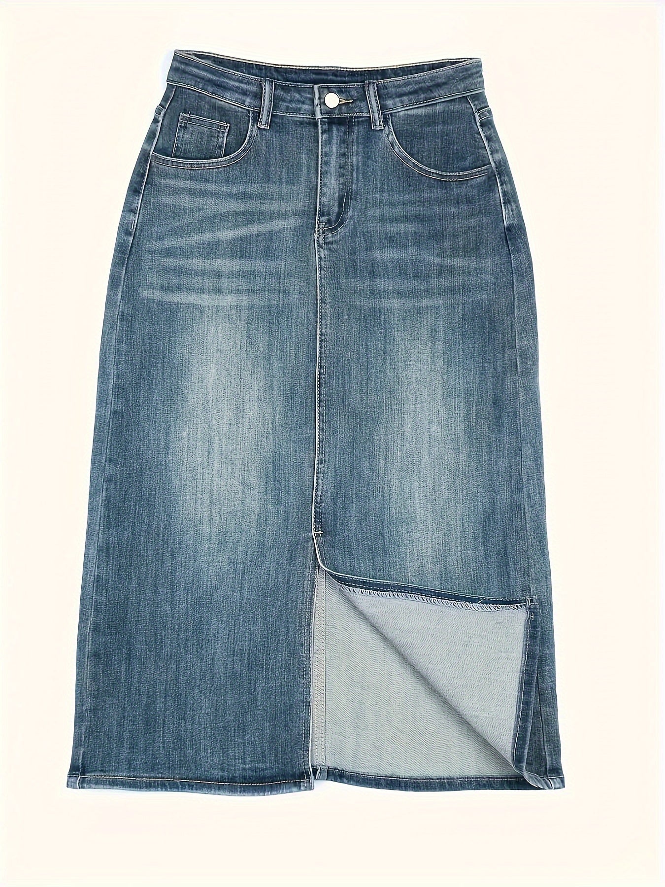 Женская юбка-миди из денима с высокой талией для полных, эластичная, с разрезом и необработанным краем