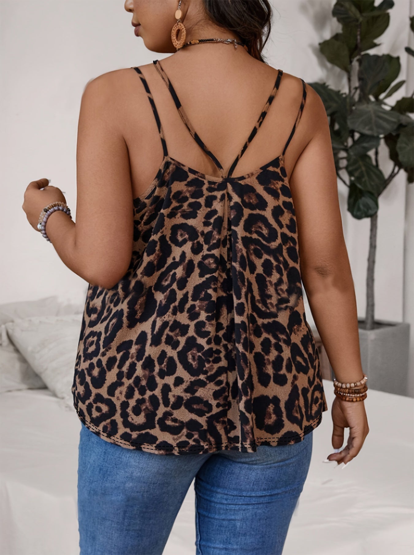 Женская майка без рукавов с леопардовым принтом, V-образный вырез, большой размер, зеленый