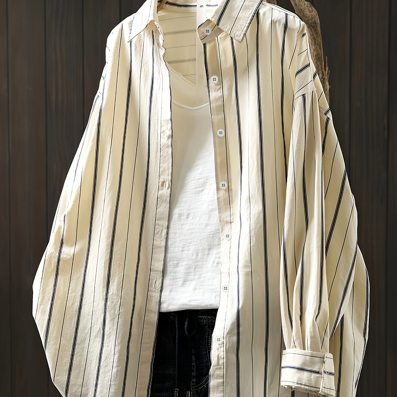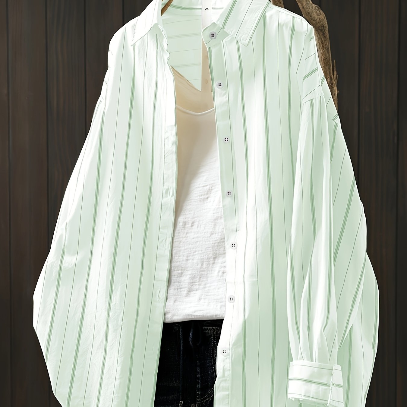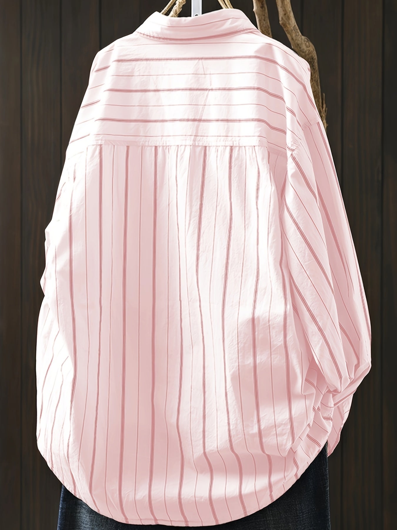 Женская блузка большого размера с длинным рукавом, повседневная в полоску, с лацканом и фруктовым принтом