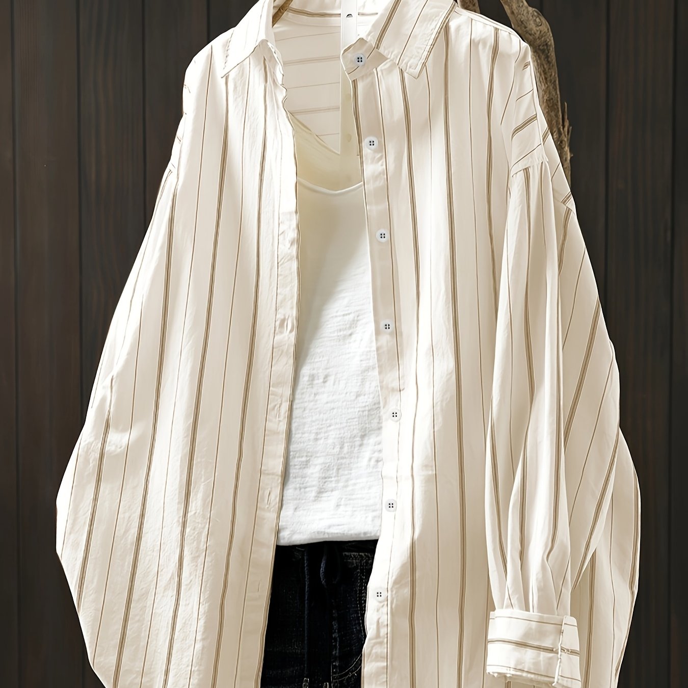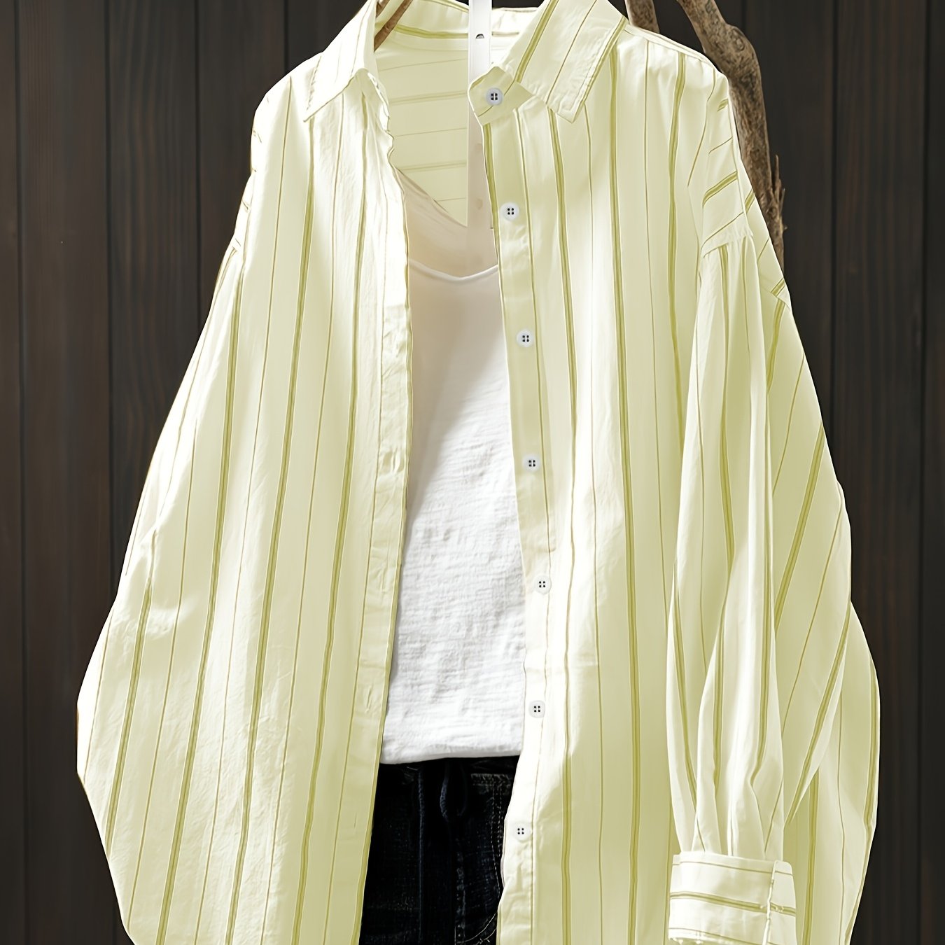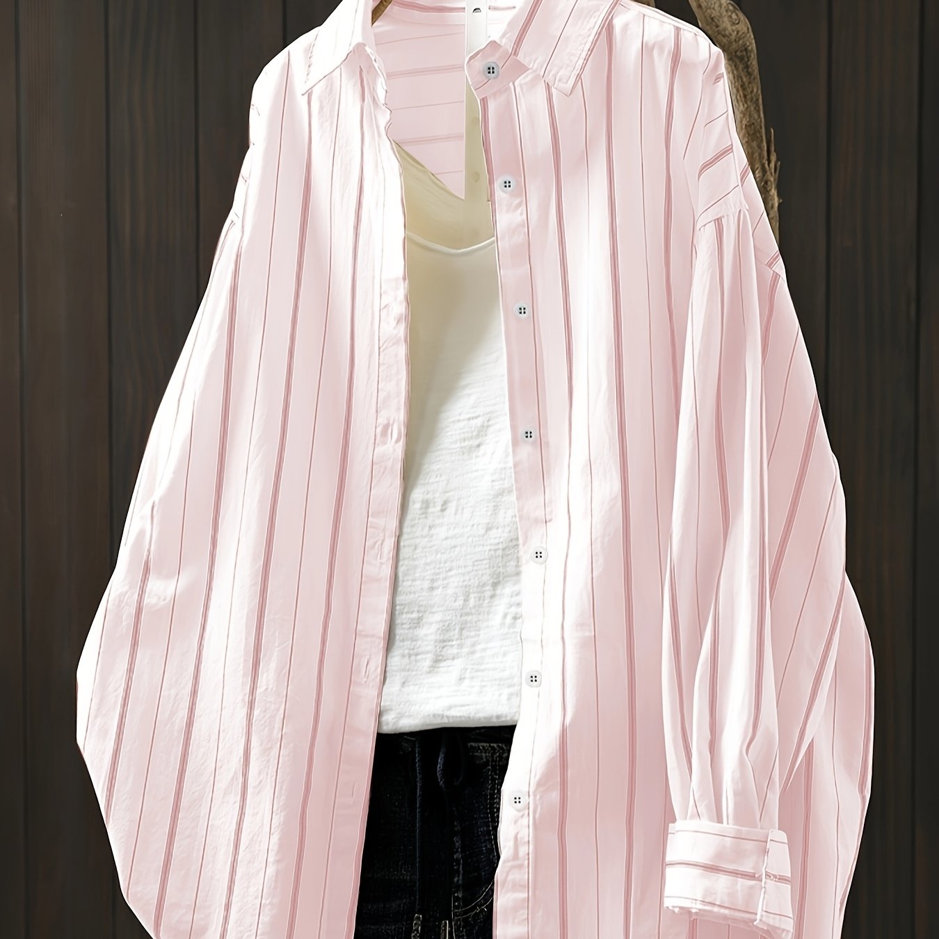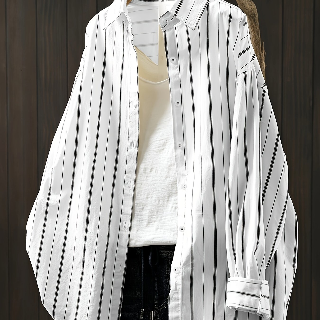 Женская блузка большого размера с длинным рукавом, повседневная в полоску, с лацканом и фруктовым принтом