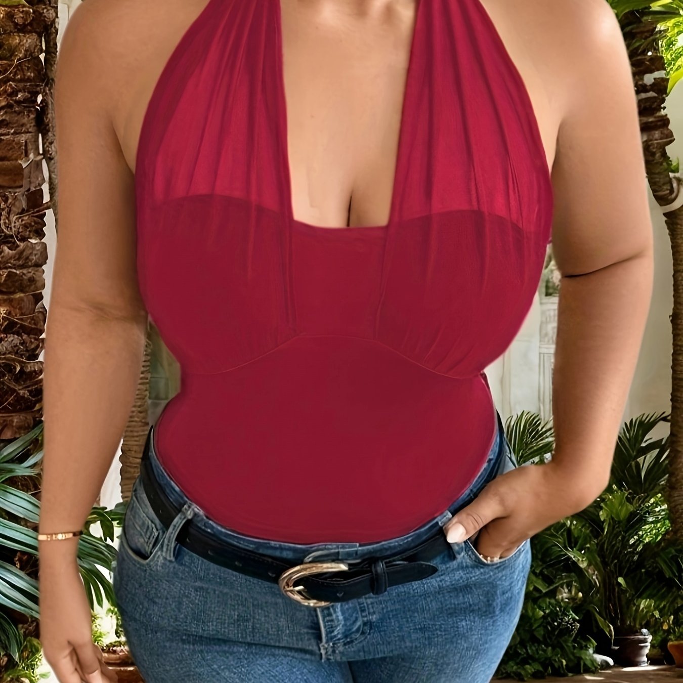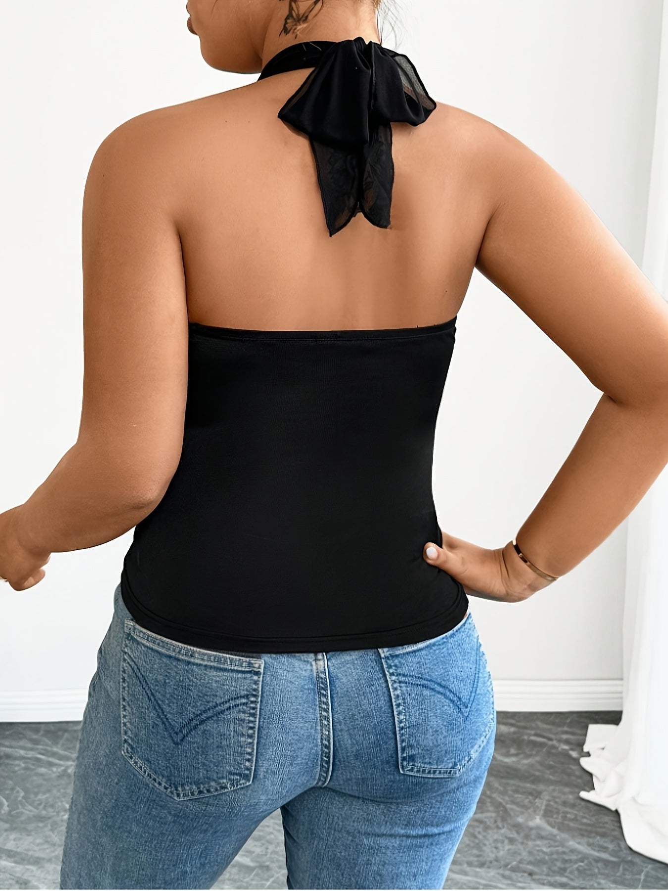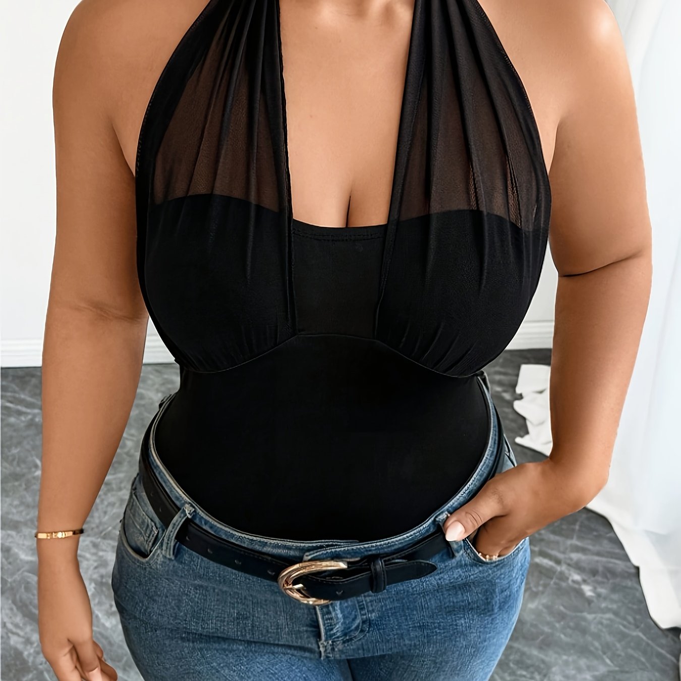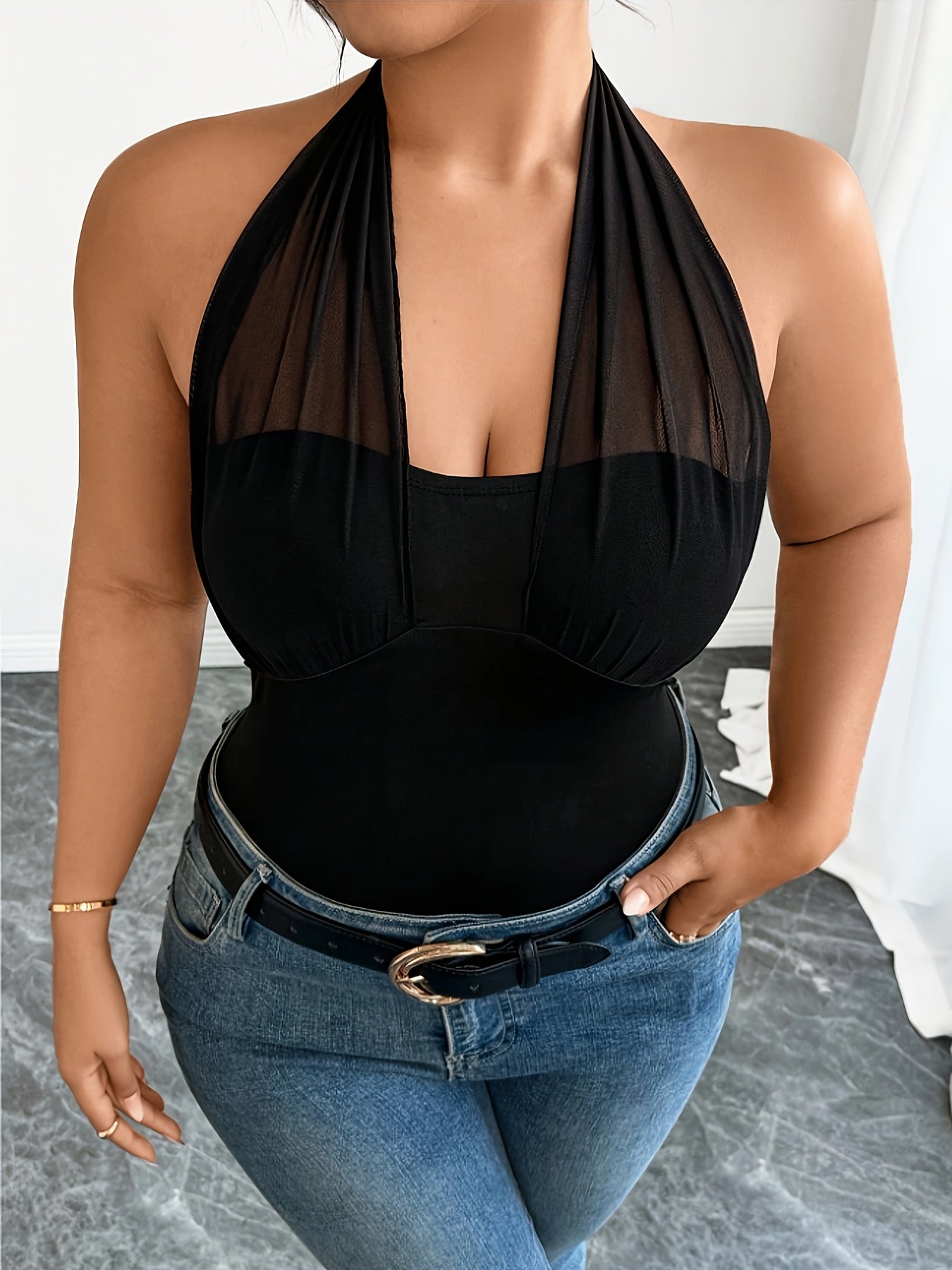 Женская блузка большого размера из сетки с халтером, черная, с переплетающимся узлом спереди, стильная вечерняя