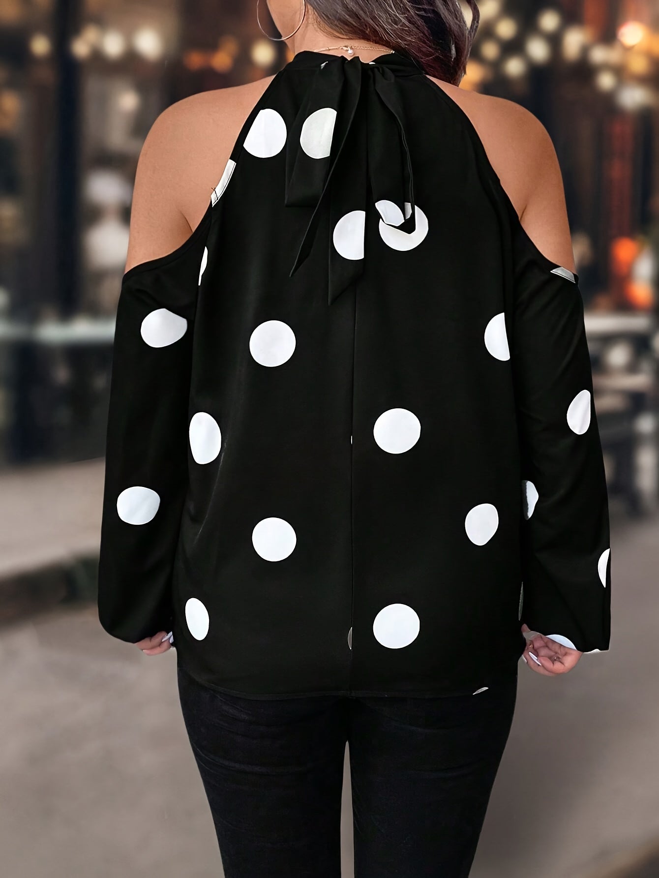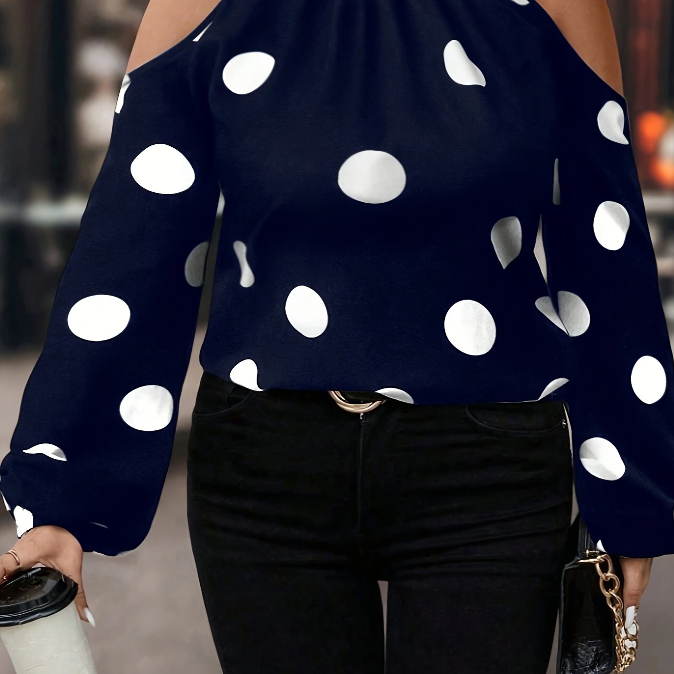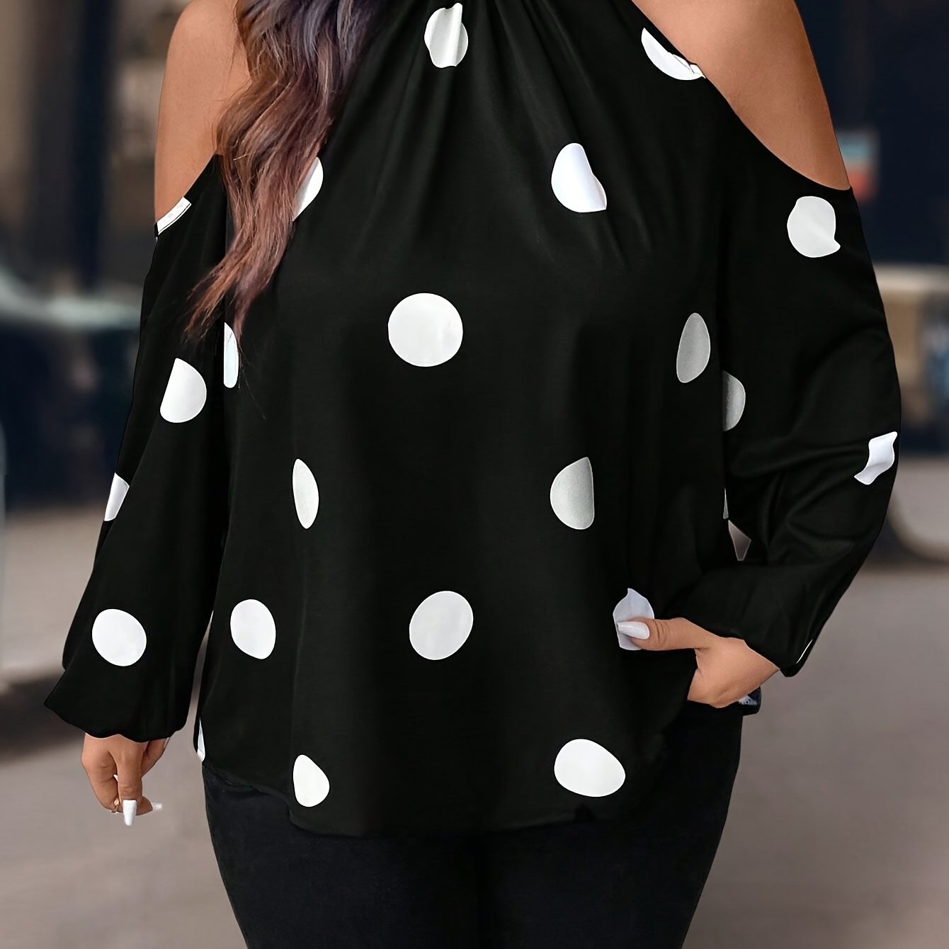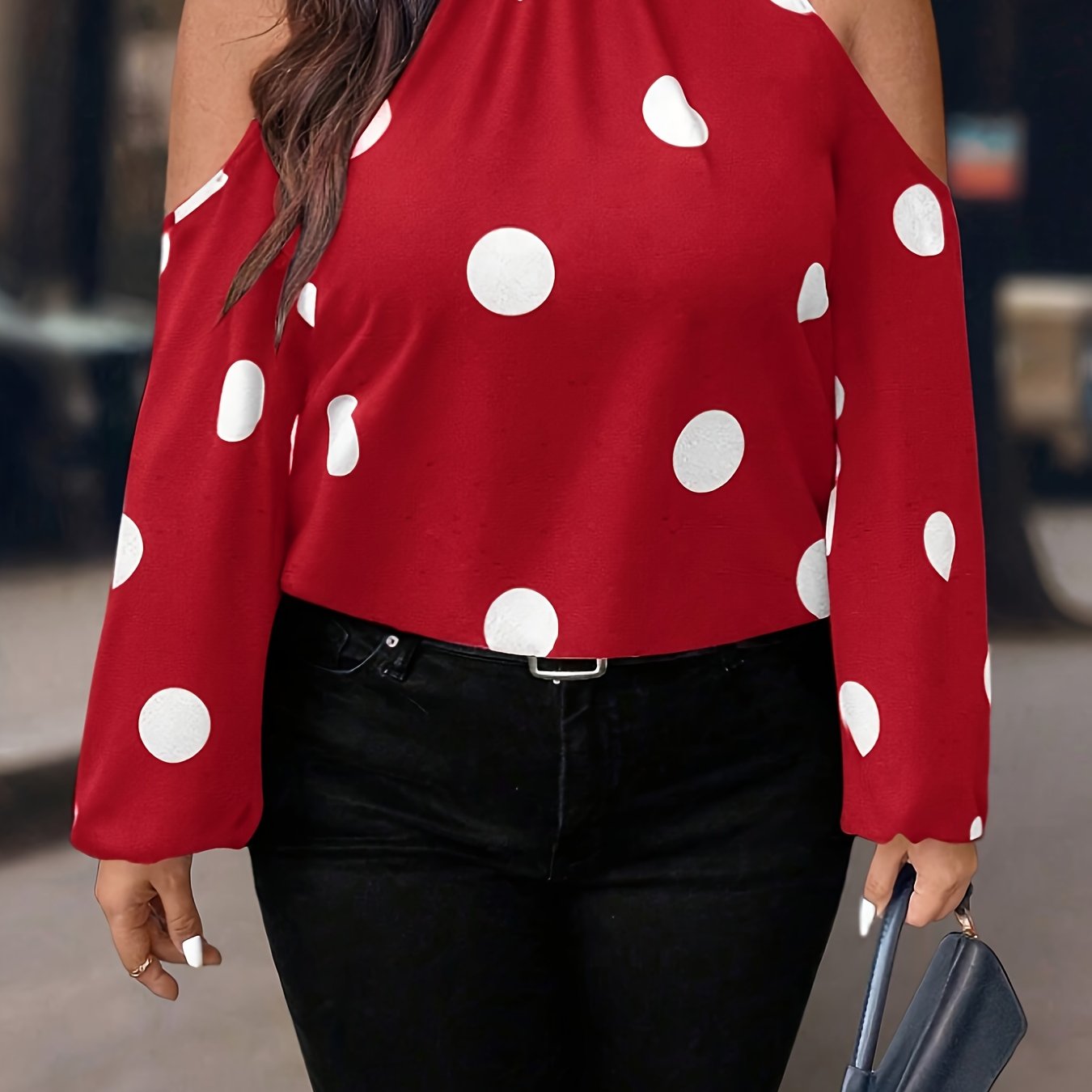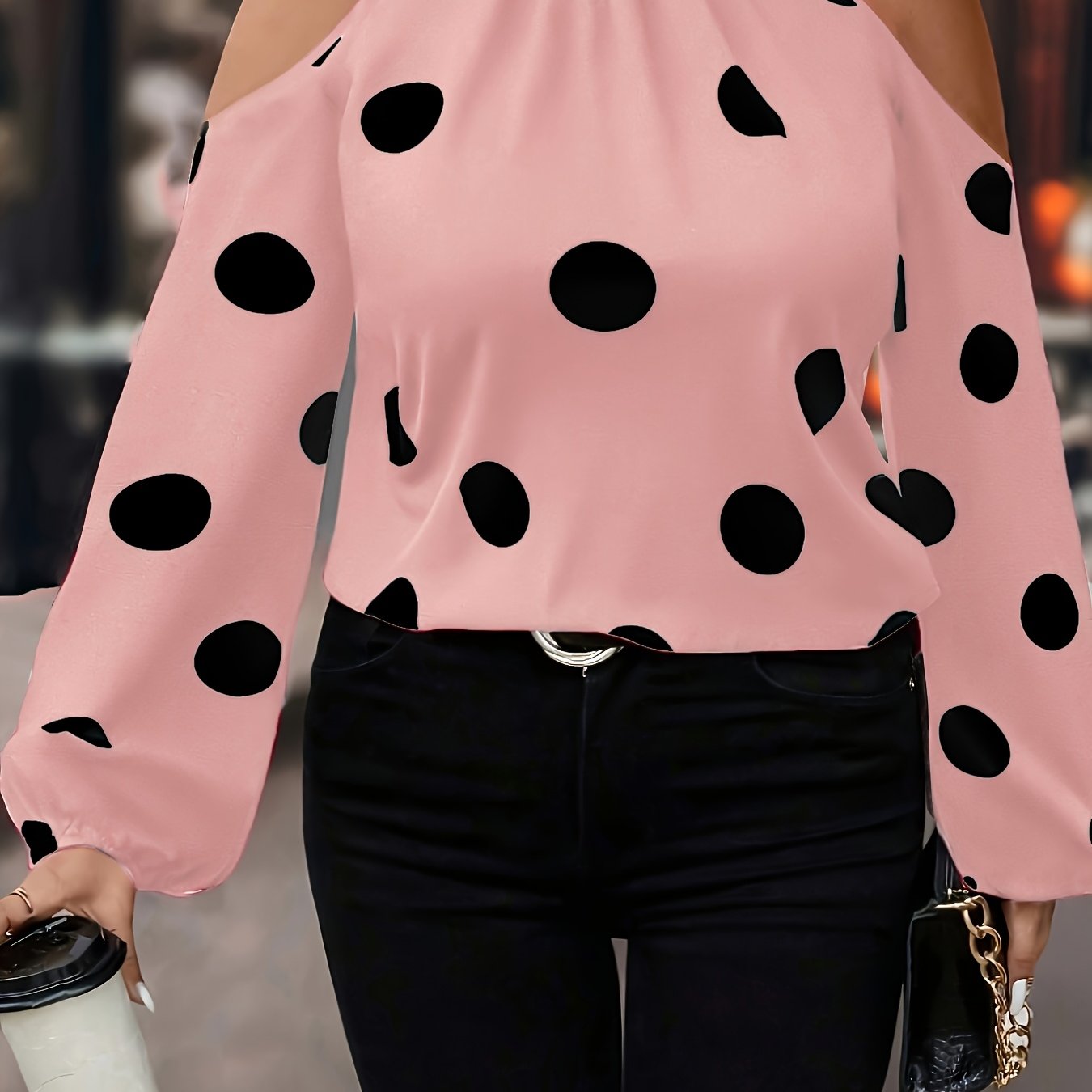 Женская блузка больших размеров с розовым горошком и открытыми плечами, универсальный повседневный топ