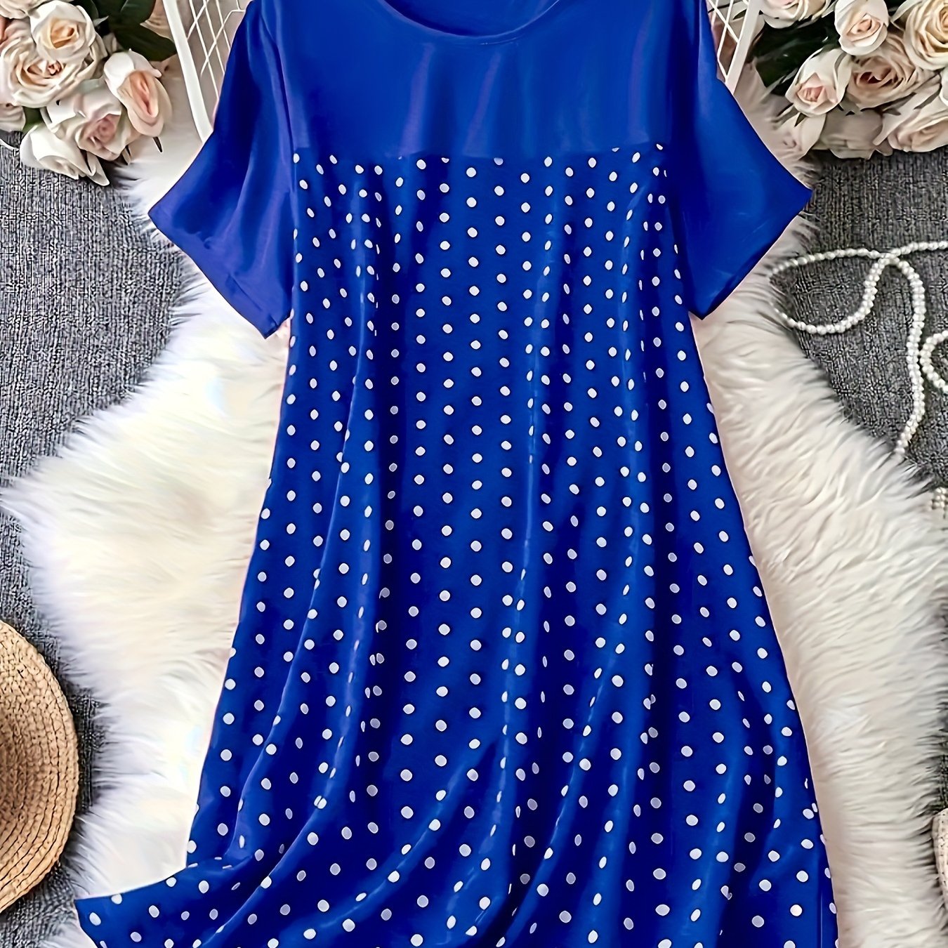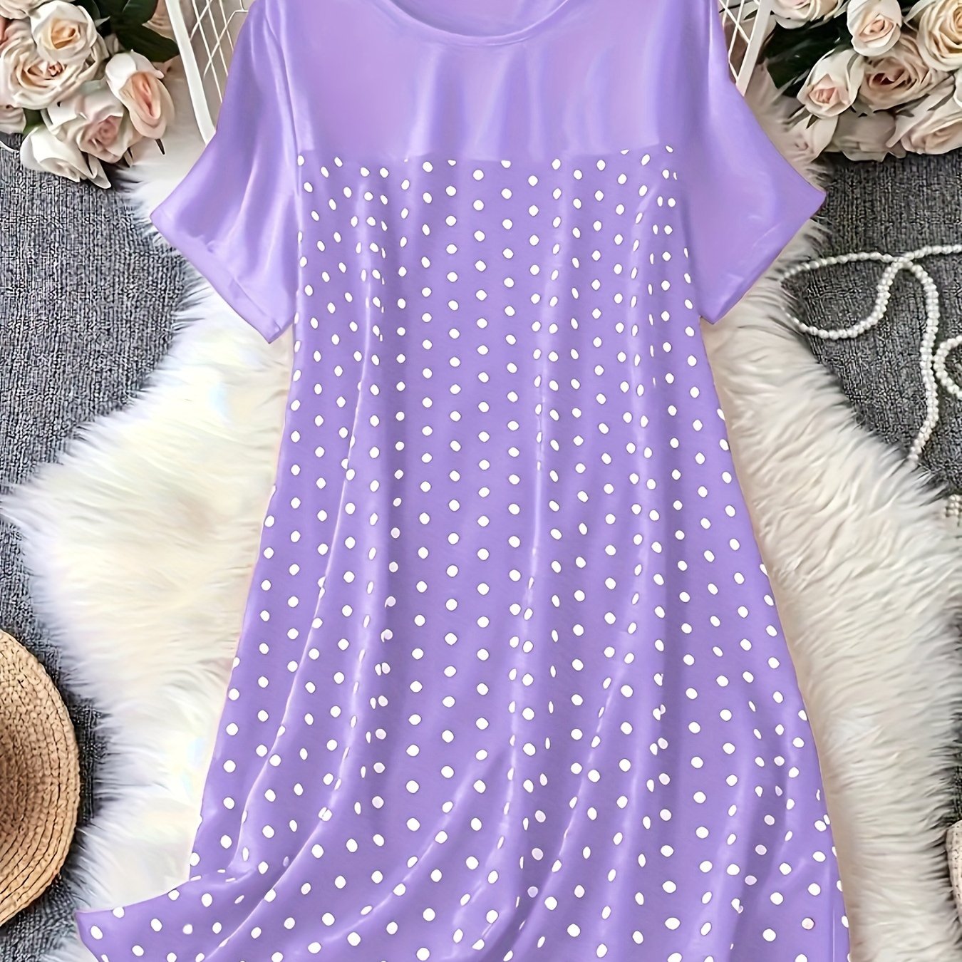 Женский ночной халат с коротким рукавом и крупным горошком, размер плюс