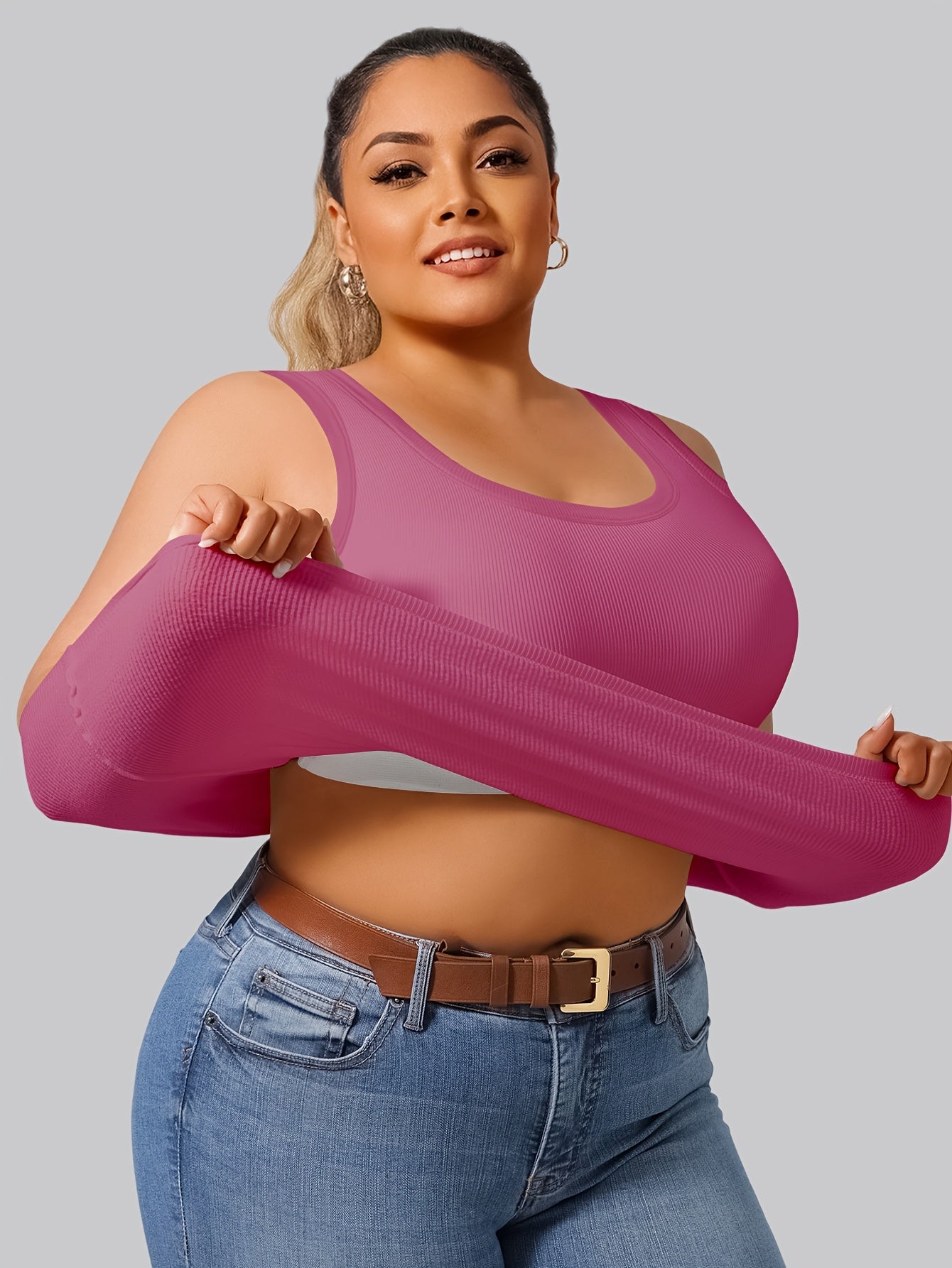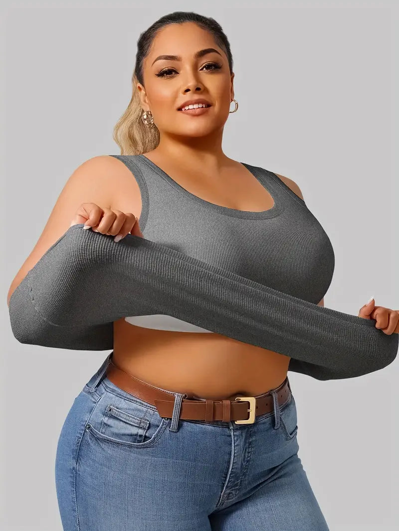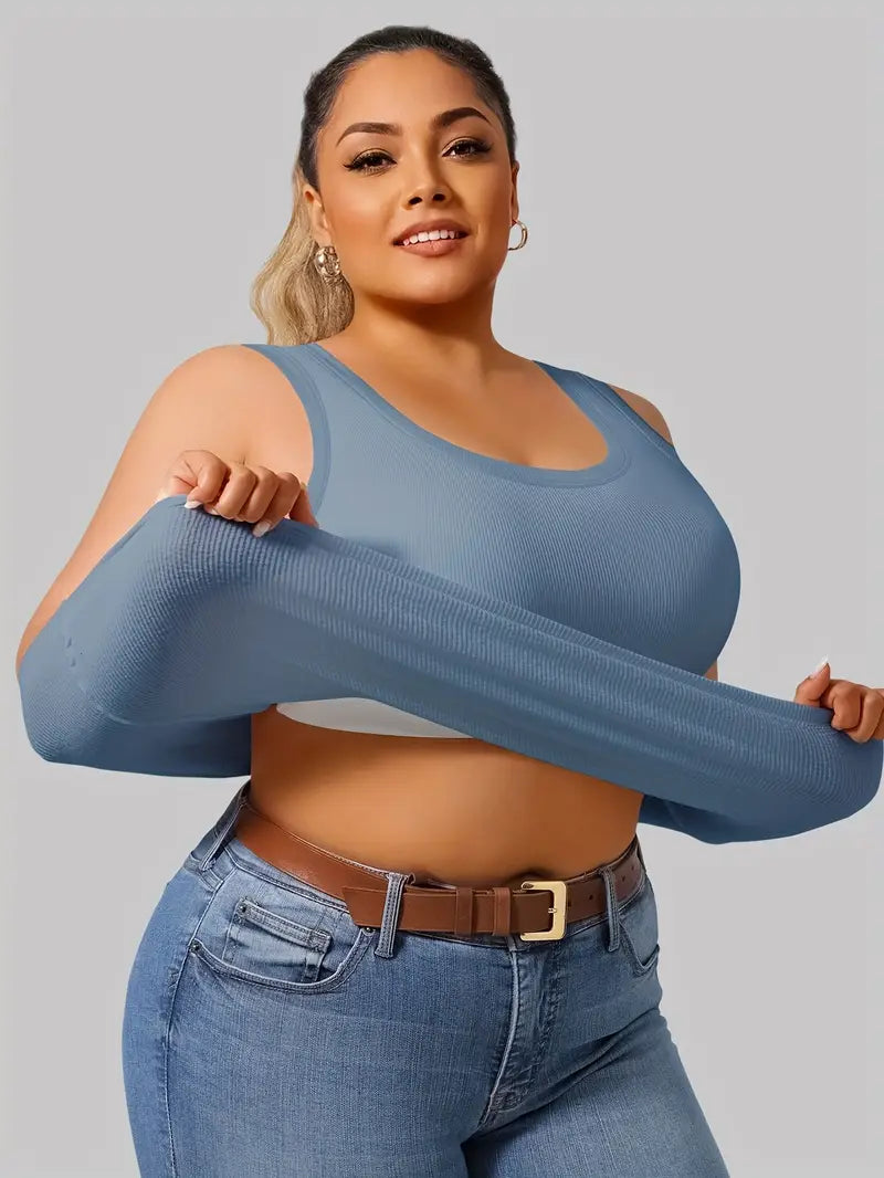 Женская майка с рифлёной тканью для полных женщин с встроенным бюстгальтером, без рукавов, с синими и белыми полосами