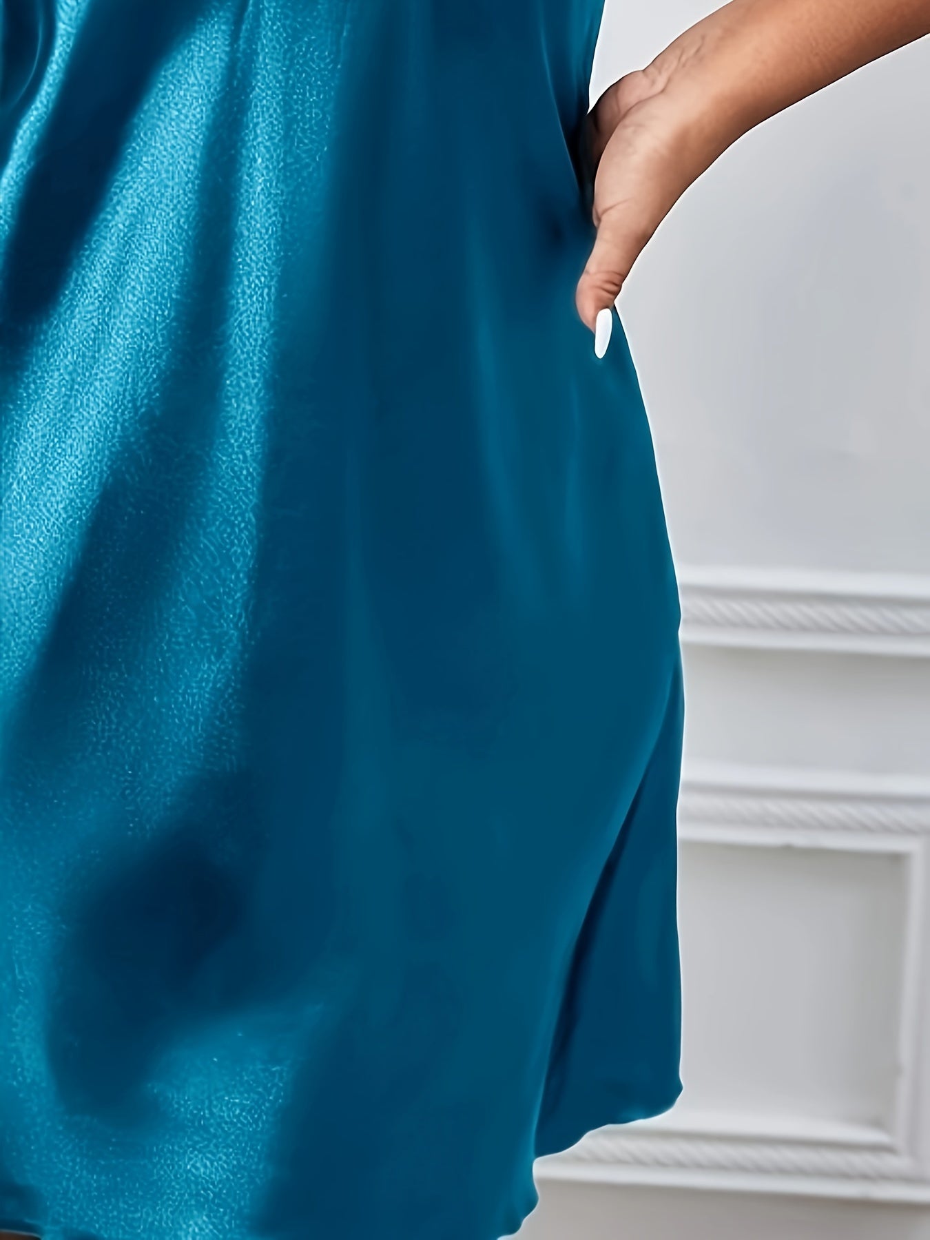 Женское платье-сон с сатиновым материалом для полных женщин, с V-образным вырезом и перекрещивающимися деталями