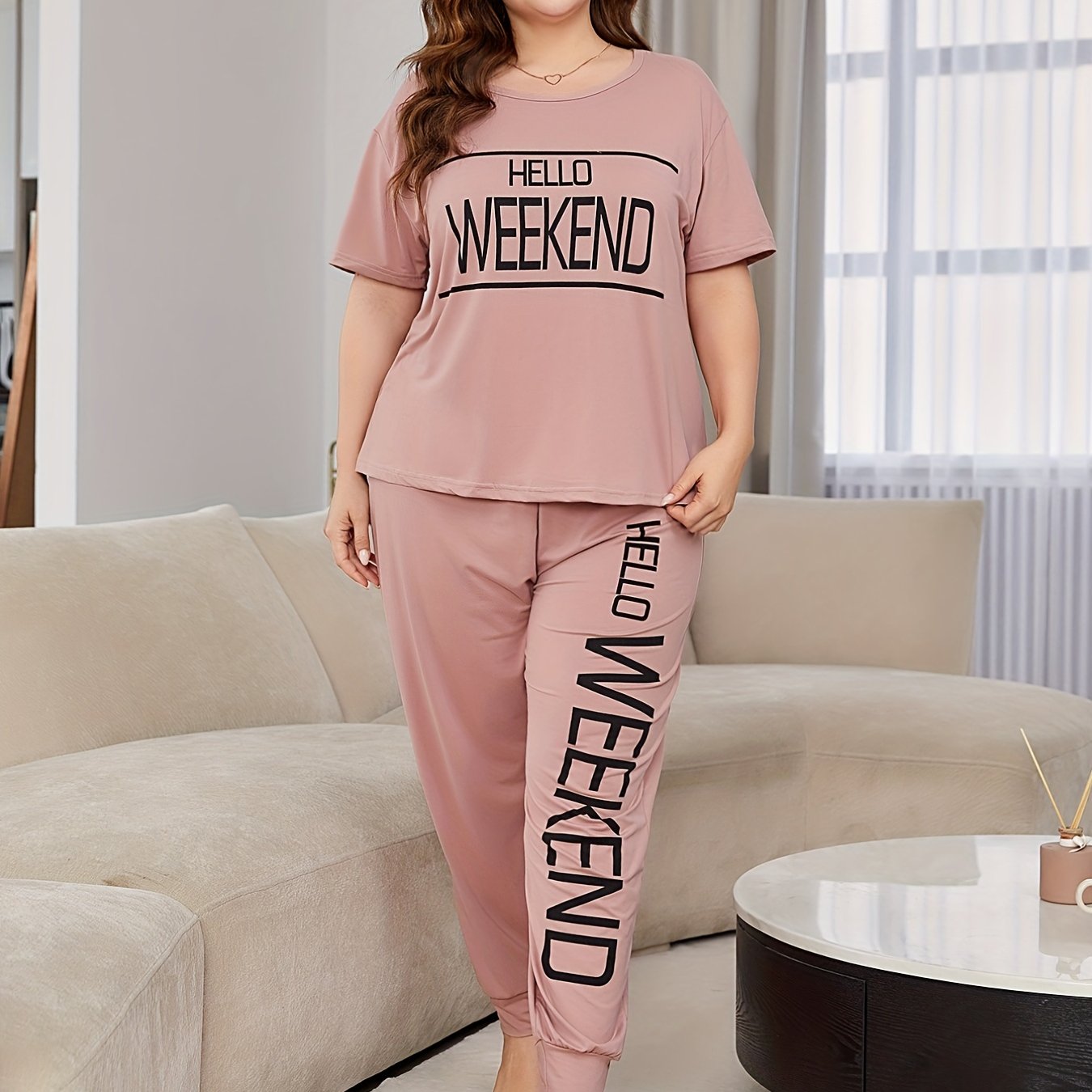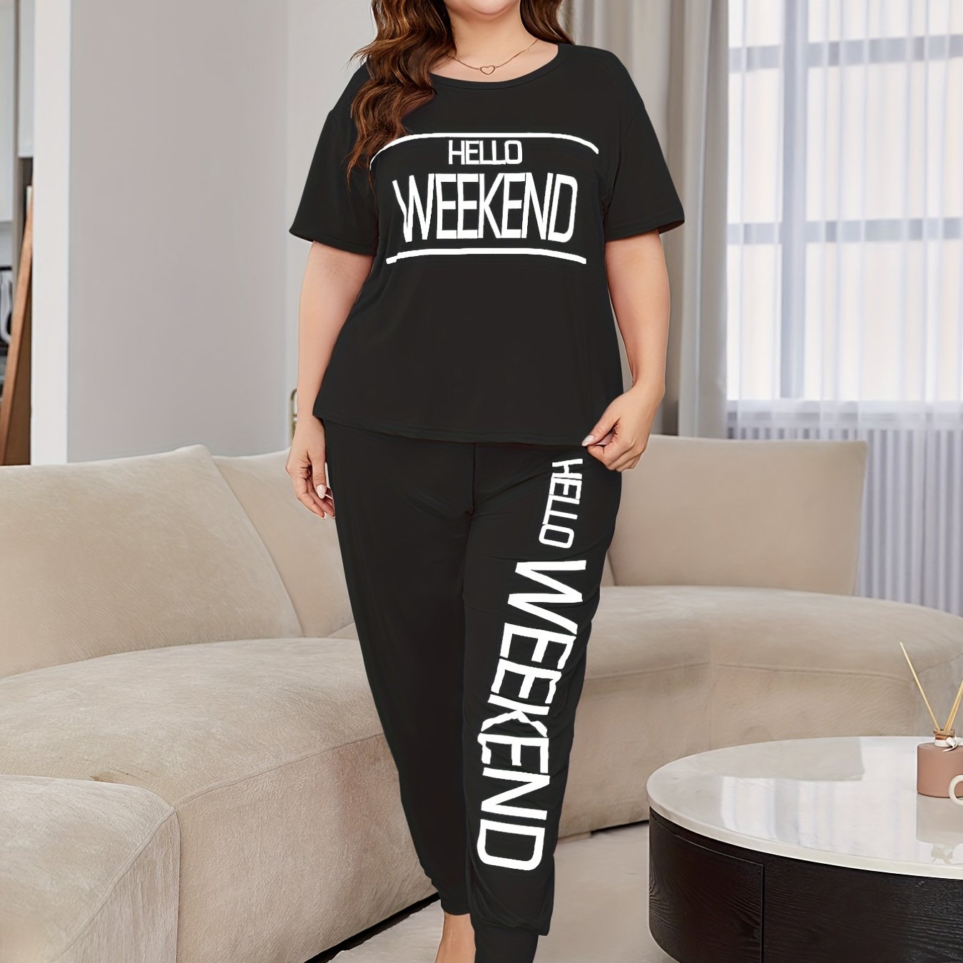 Women's Plus Size Short Sleeve Pajama Set Cotton Cute Cartoon Homewear