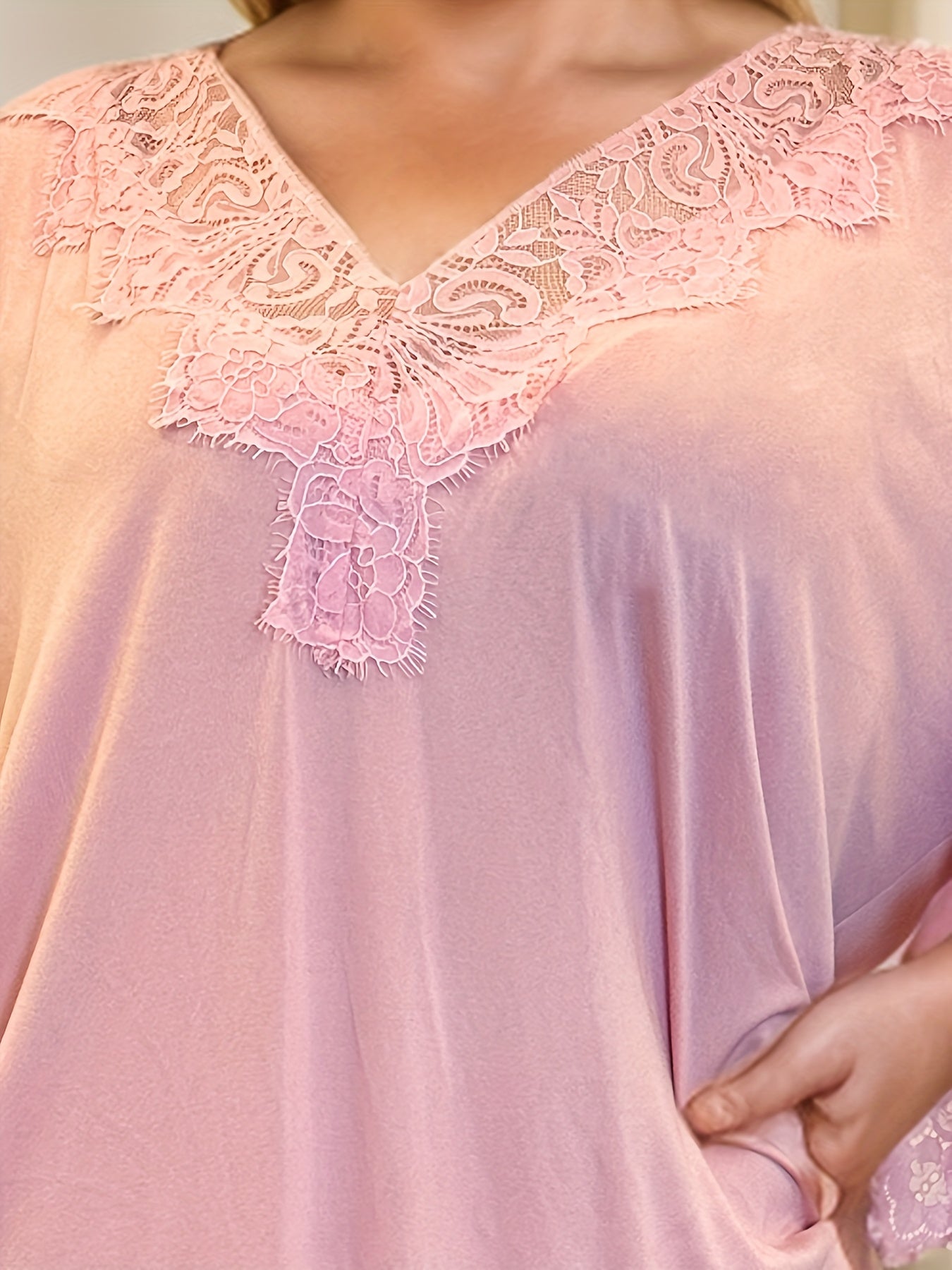 Женское ночное платье большого размера с кружевом, V-образный вырез, ночная одежда