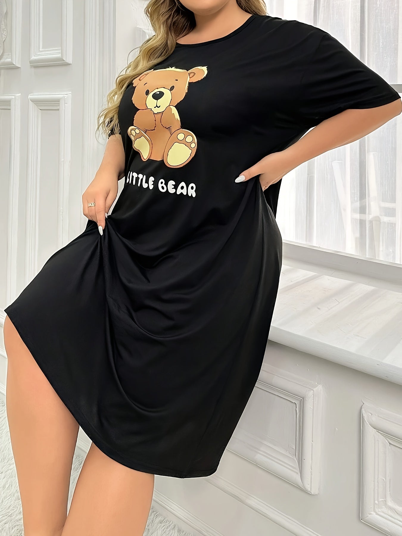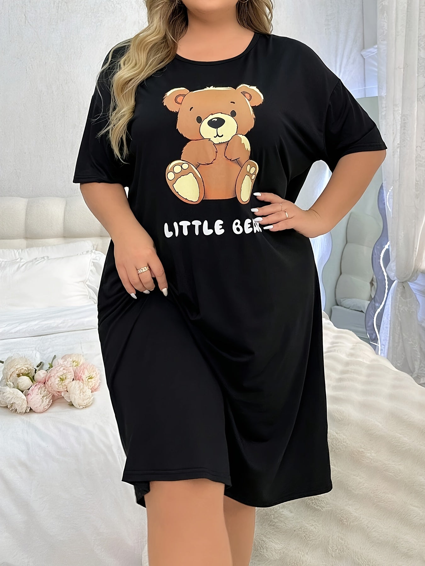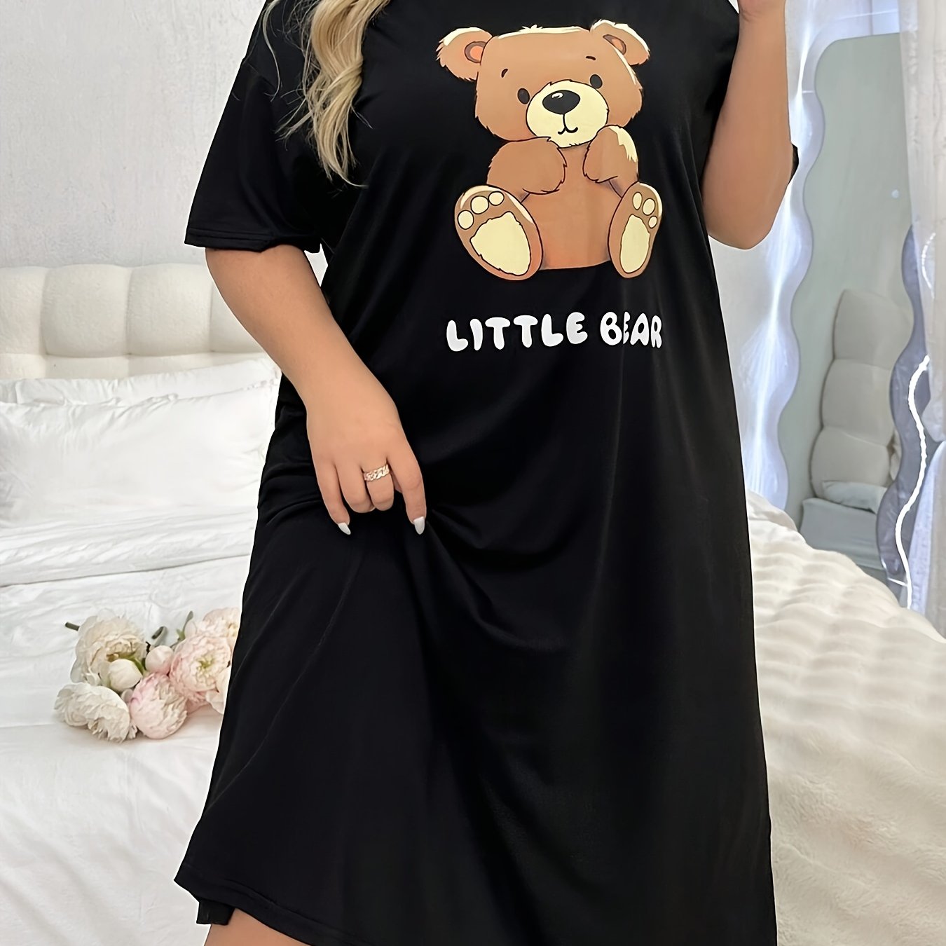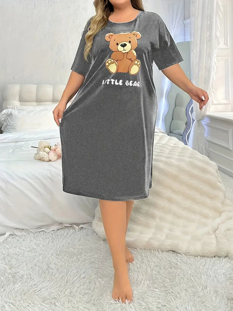 Женское ночное платье больших размеров с коротким рукавом, мультяшный медведь, ночная одежда
