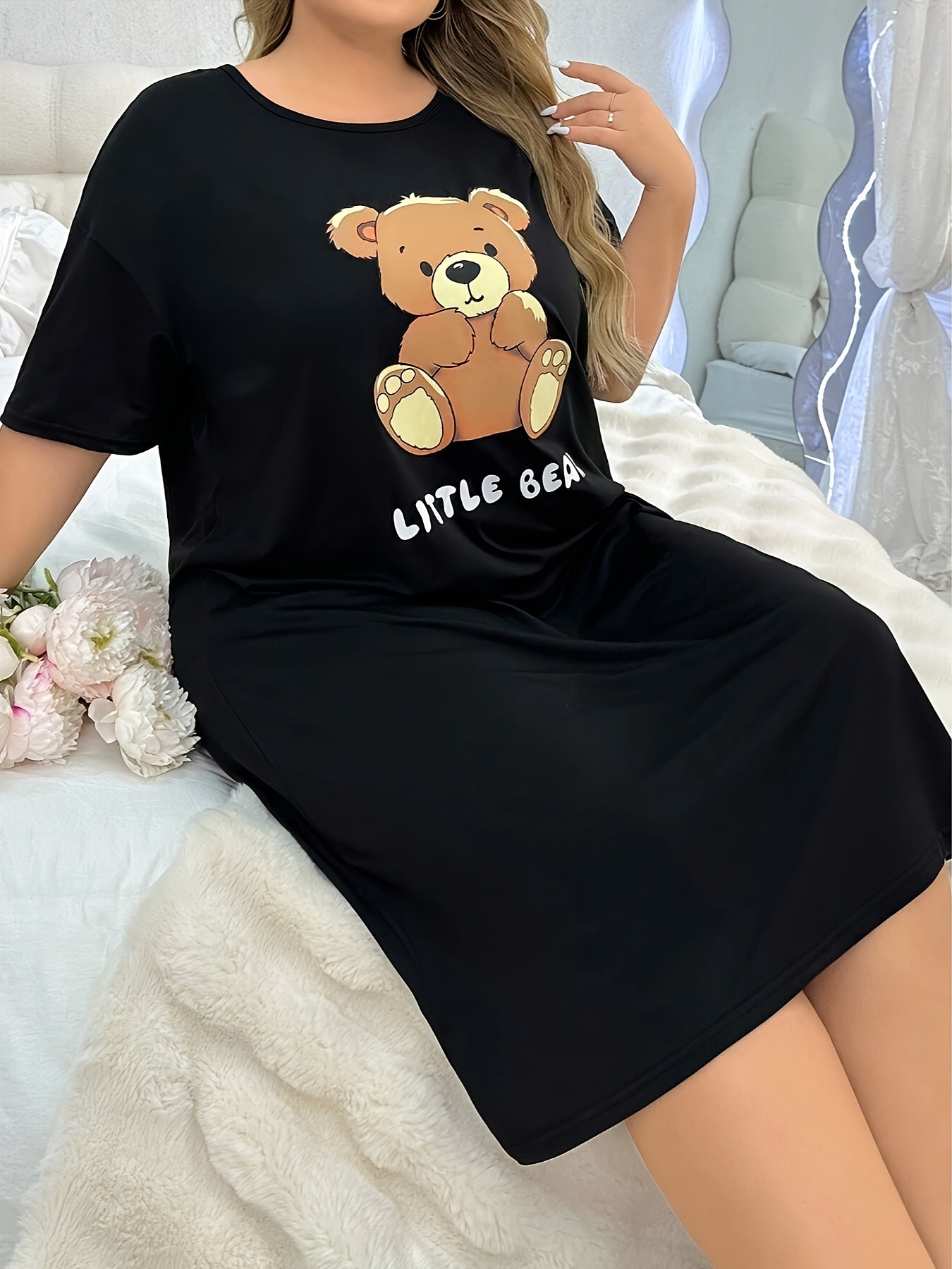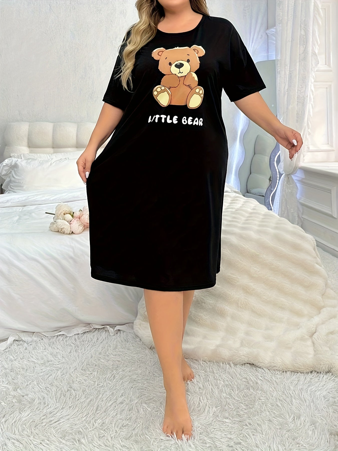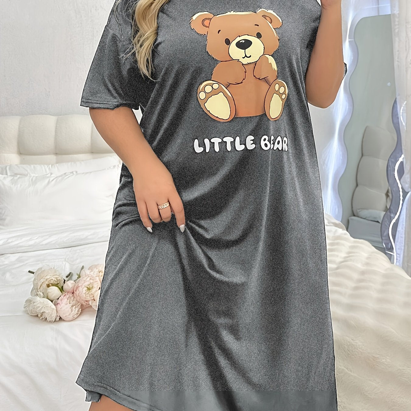 Женское ночное платье больших размеров с коротким рукавом, мультяшный медведь, ночная одежда