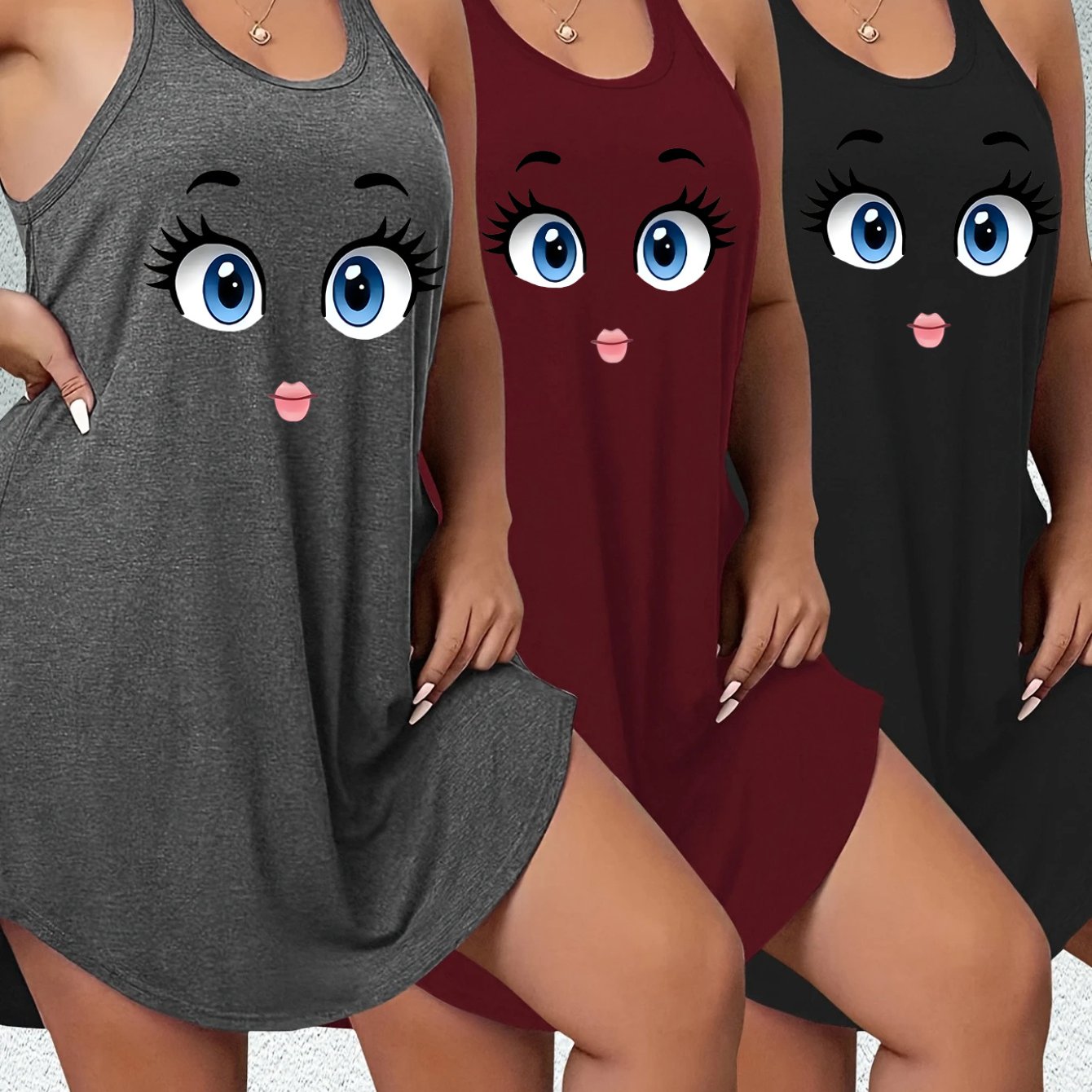 Женский комплект ночной одежды с топом и юбкой для отдыха, с принтом губ