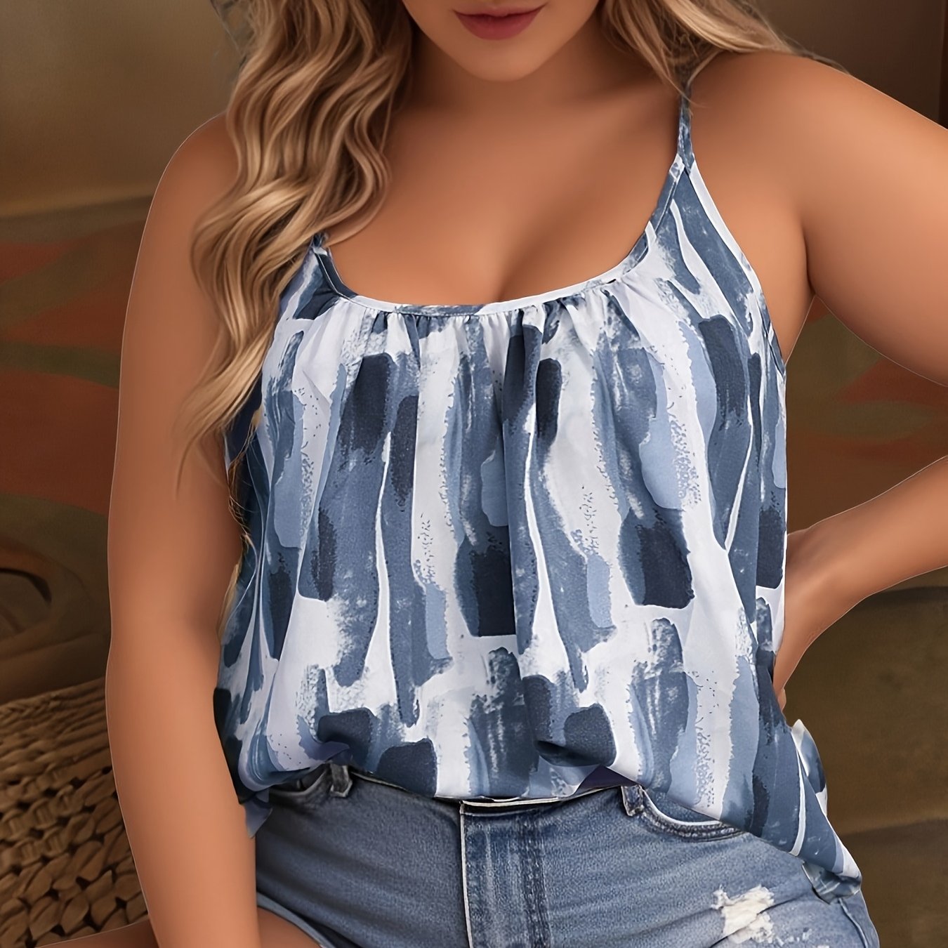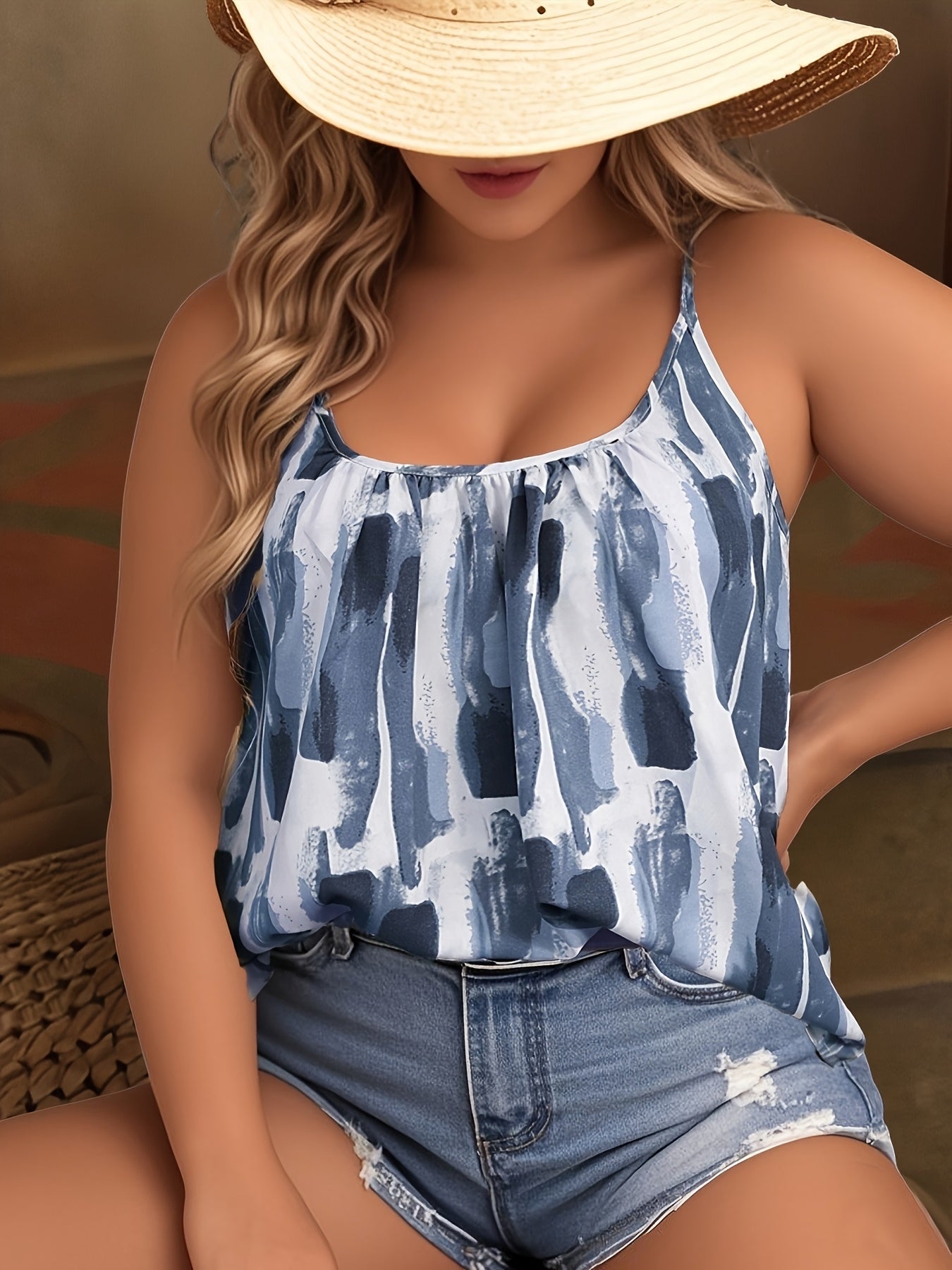 Женский топ без рукавов в полоску большого размера, легкий, из купро, синий и белый